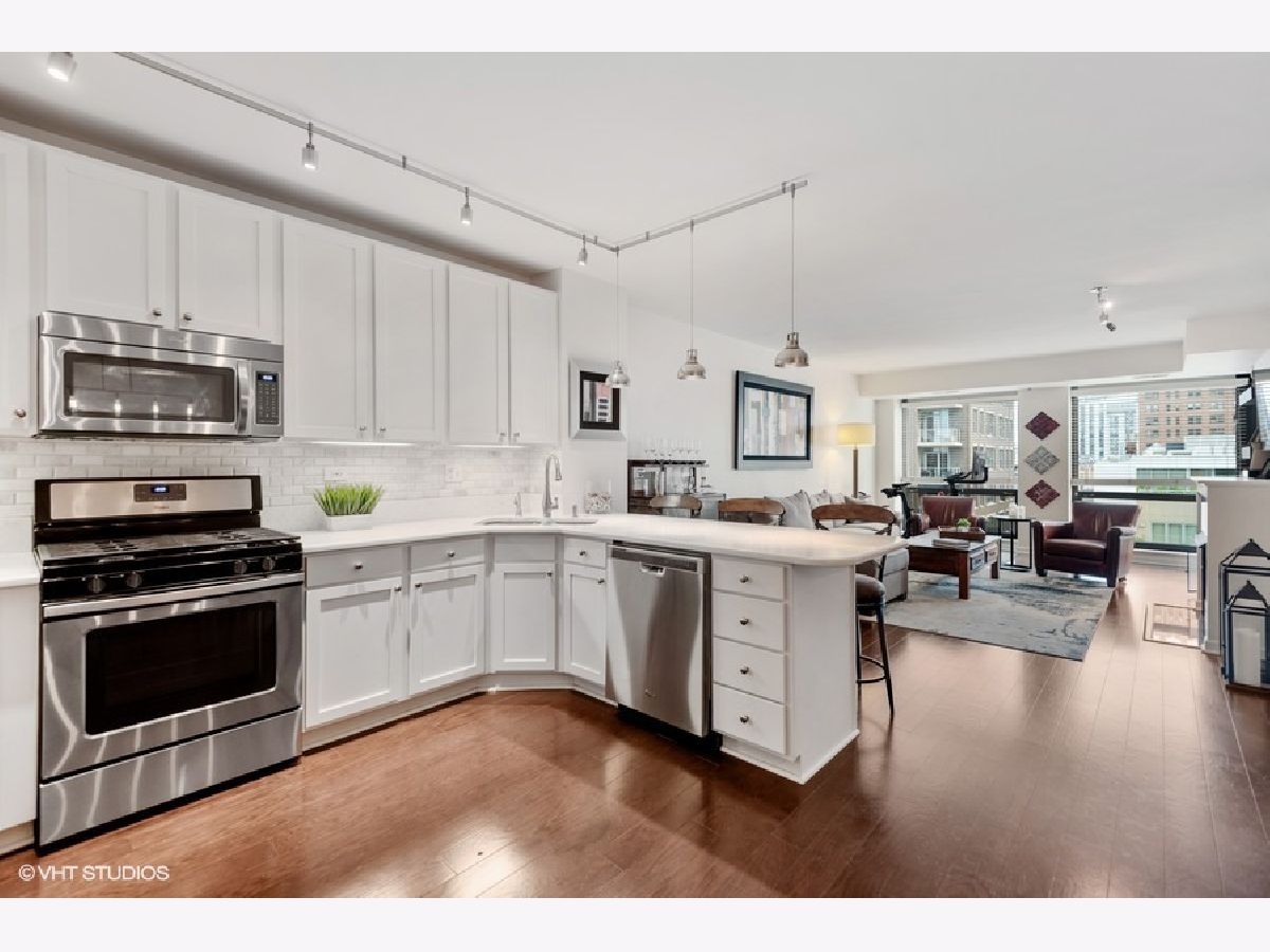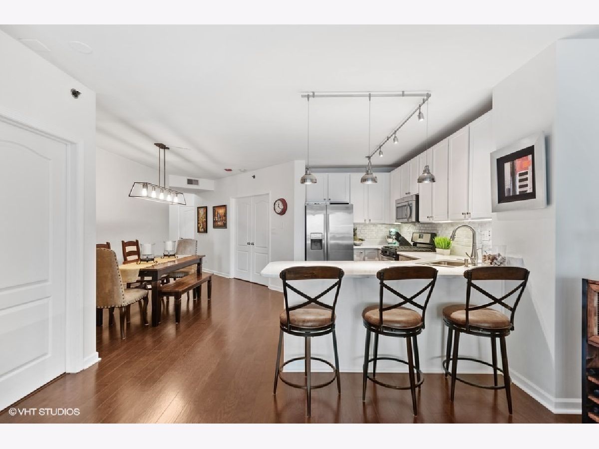 Easy living in this rarely available, turn-key 01 tier condo in Old Town's Neapolitan. Largest 2 bed 2 bath floor plan and you'll feel the difference as you step into this fabulous, functional split bedroom layout. Beautifully renovated kitchen features new lighting, white cabinets, white quartz countertops, classic marble subway tile backsplash & stainless appliances. Kitchen opens to separate dining area & spacious living room with access to the east facing balcony. Large primary suite also opens to balcony, has professionally organized walk-in closet, and neutral stone bath. Dark wide-plank hardwood floors throughout, gas fireplace, & in-unit washer/dryer. Deeded garage pkg INCL in price + storage. Full amenity bldg with wonderful 24hr door-staff, fitness room, sundeck, dedicated dog run, party room, tennis & basketball court! Recent improvements include new lobby & hallways, exterior paint, balcony floors, tuck-pointing + upgraded elevators. Best Location with everything outside your front door- Plum Market, Happy Camper, Starbucks, public transportation, shops, restaurants, park, zoo, lakefront and more!