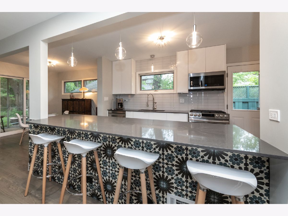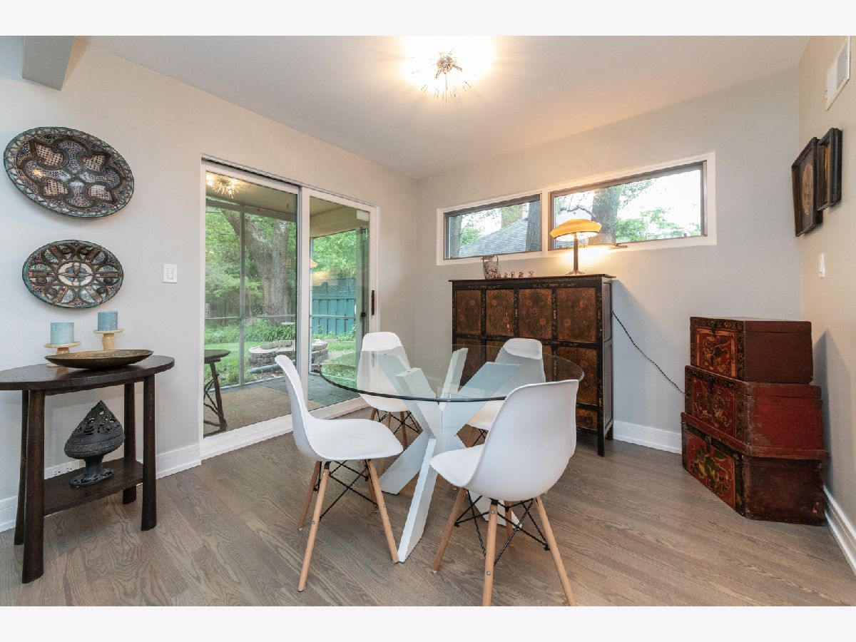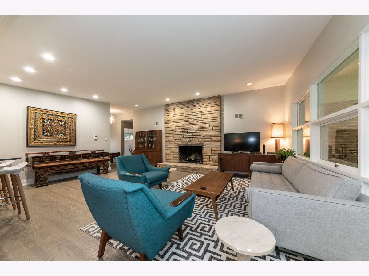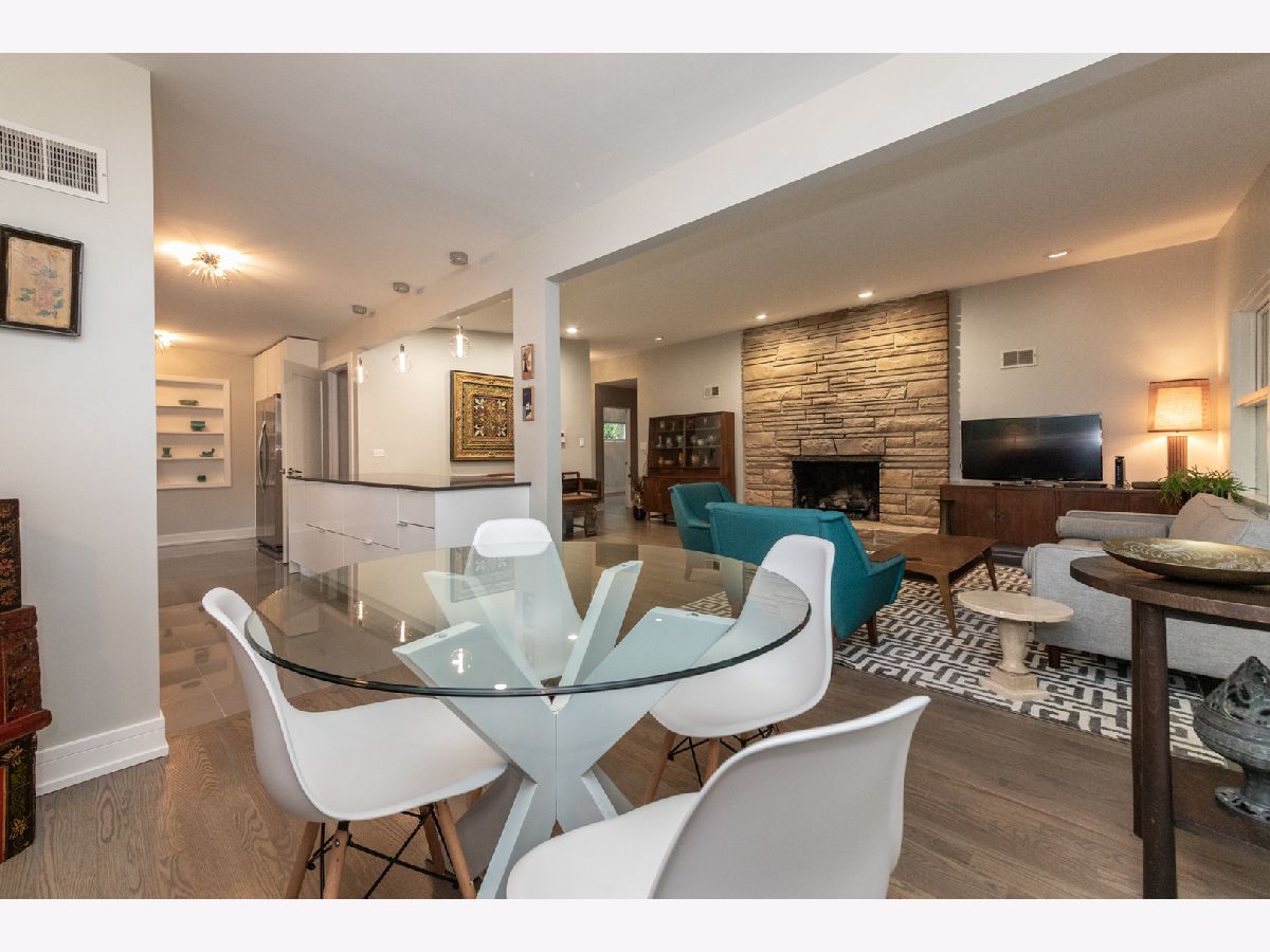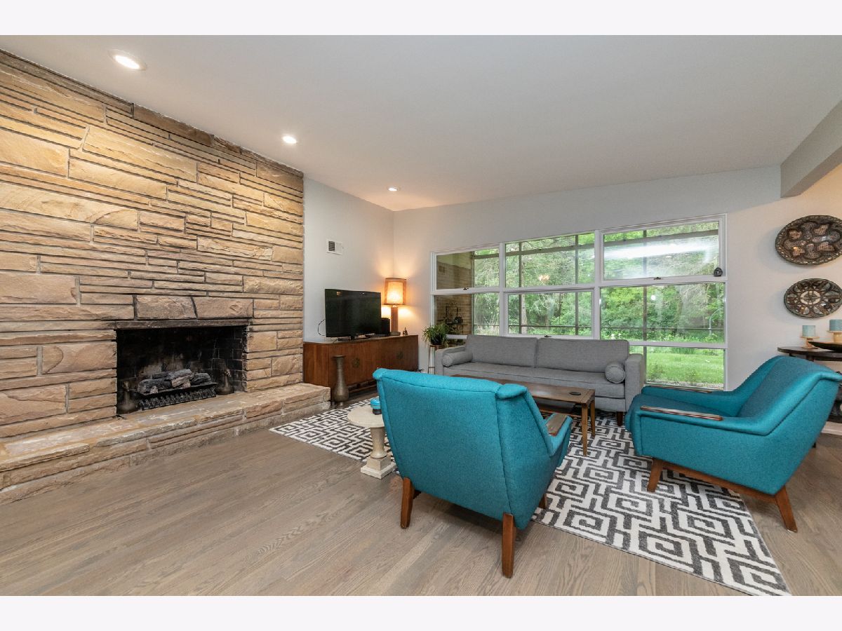 Perfect Mid-Century Modern Ranch home that offers spectacular, peaceful forest preserve views from your inviting screened porch that overlooks the woods. Vaulted ceilings in Living area & a beautiful fireplace with built in bookcases showcase the room. Bright eat-in kitchen, 3 bedrooms, washer/dryer on main level. Both main level baths beautifully updated. Finished basement offers a stone fireplace, 2 additional potential bedrooms and its own kitchen area. Includes a two car attached garage, oversized 63x123 lot, and top notch location near schools and parks. A gem of a home!