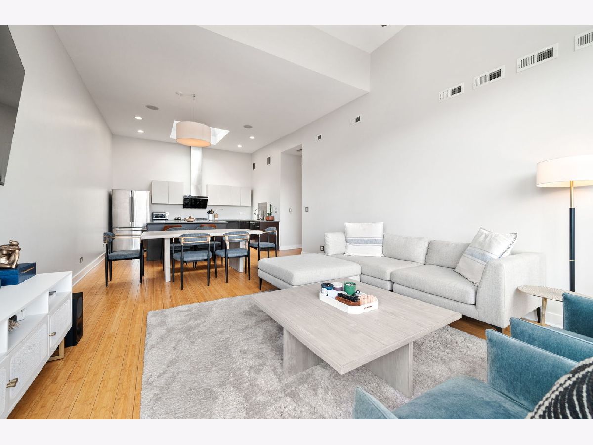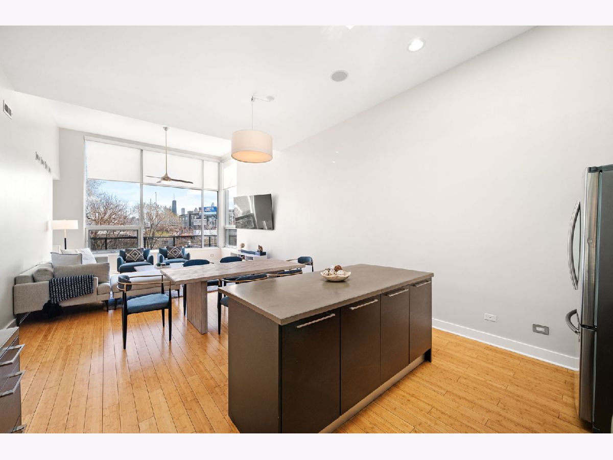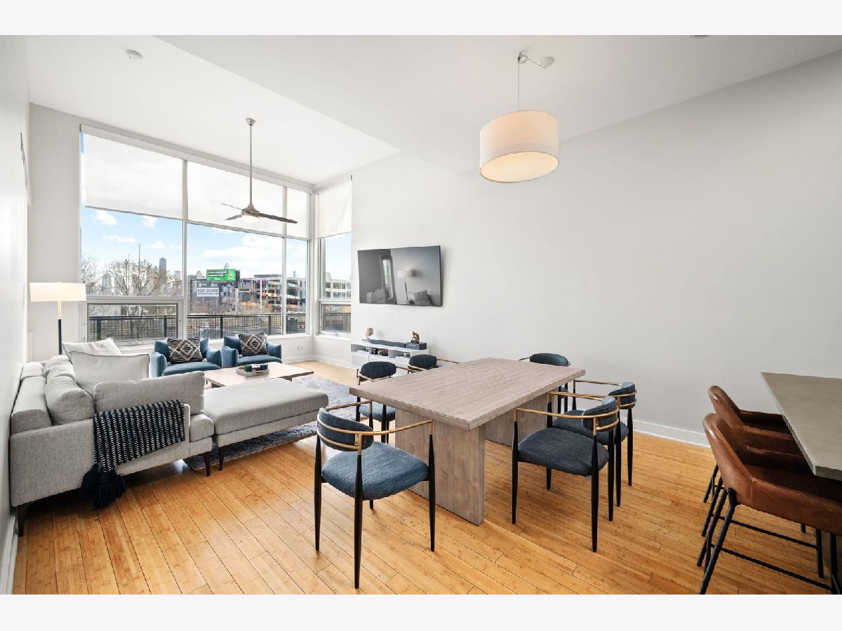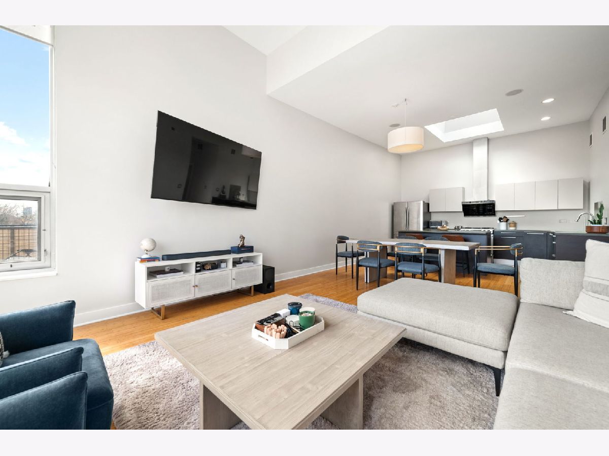 ***MULTIPLE OFFERS RECEIVED. HIGHEST AND BEST CALLED FOR BY MONDAY, APRIL 21ST @ 3PM. NO ESCALATION CLAUSES OR LOVE LETTERS.*** Nestled in the leafy streets of Noble Square sits this luminous 2BR/2BA top floor condo, unlike anything else on the market. With an open concept floor plan, high 14 foot ceilings, floor-to-ceiling windows, and incredible natural light, nothing else compares to the vibe of this modern home. Incredible skyline views from the living room and private deck space. The open kitchen is equipped with Italian contemporary Cucina Copat cabinetry, polished concrete countertops & breakfast bar, stainless steel appliances, and an overhead vent hood that vents to the outside! Bamboo hardwood floors throughout. Split bedroom floor plan adds to the privacy and smart layout. Wake up to the morning sun in the primary suite with east facing windows. The bedroom itself can easily fit a king bed set, and has a sleek en suite bathroom featuring a walk-in shower with built-in bench, double vanity, and access to a large walk-in closet with custom organizers. The second bedroom is nicely sized and could comfortably fit a desk and queen bed. This unit also has tons of closet space, an additional walk-in storage ROOM (yes, it's 10'x7'), in-unit laundry. Tandem 2 car heated garage parking space included in the price! Lots of restaurants and nightlife within a few blocks down Division or up Milwaukee Avenue. Getting around the city is easy--the Division Blue Line stop is two blocks away, as well as several CTA buses (Division, Ashland and Milwaukee), and be on the interstate in less than 2 minutes!