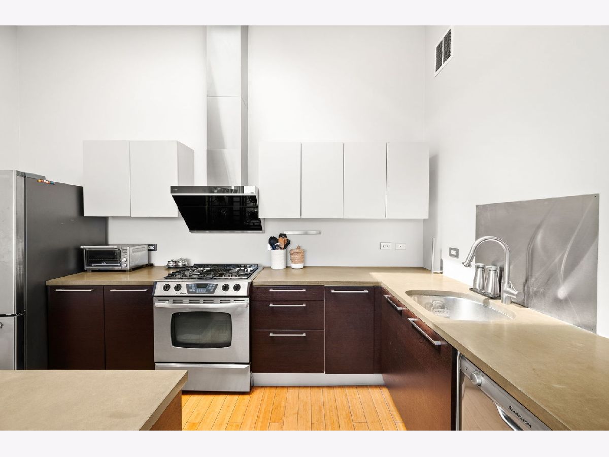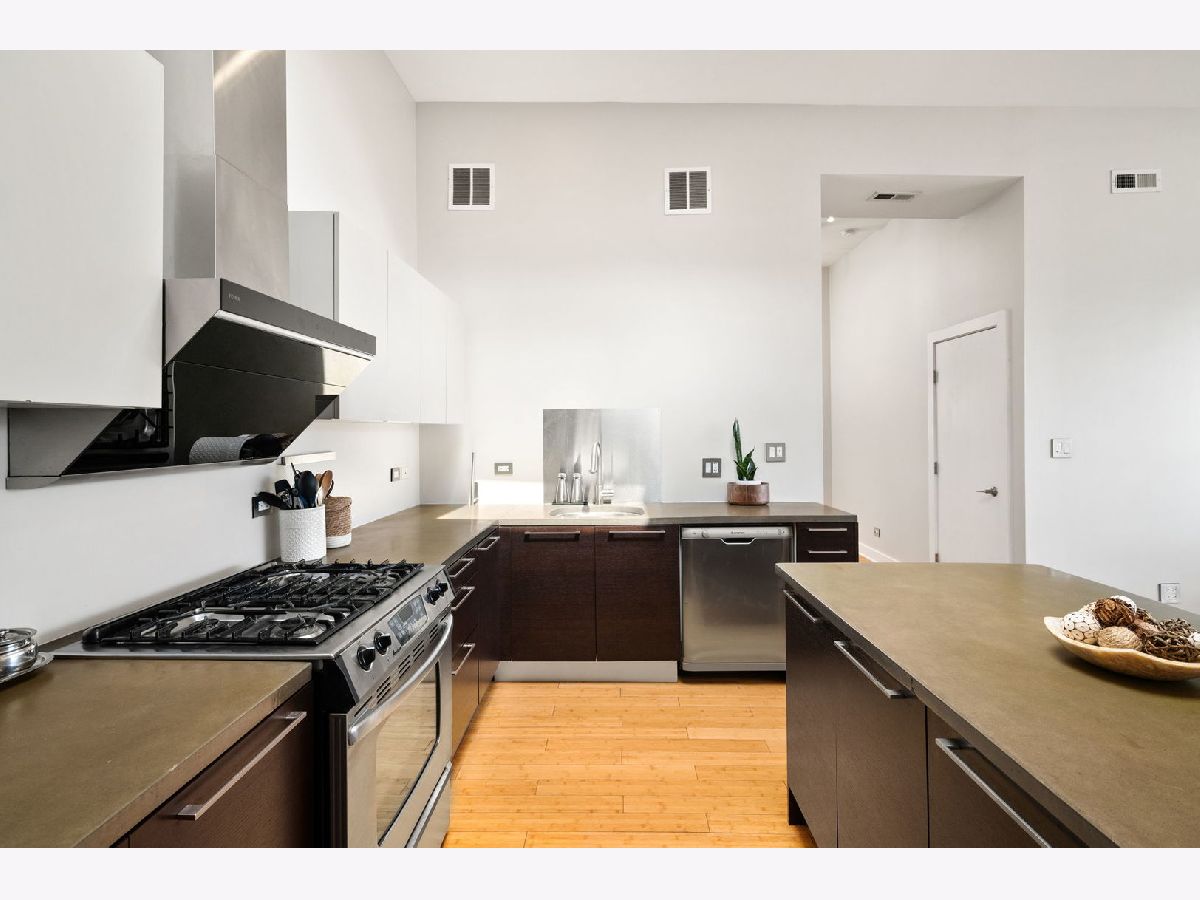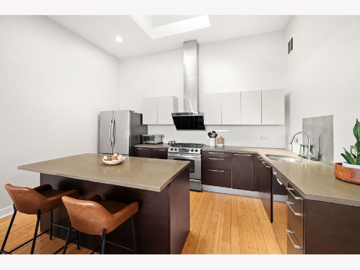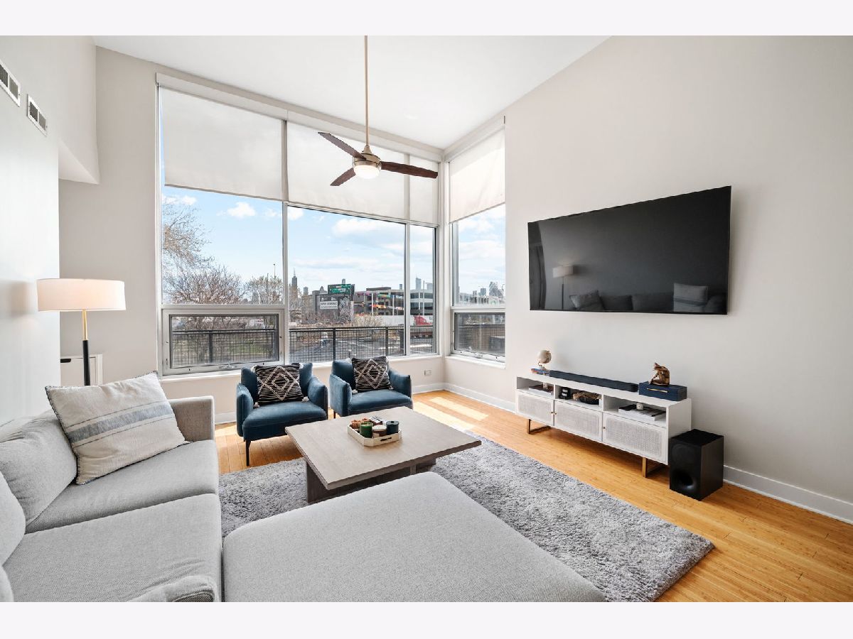 ***MULTIPLE OFFERS RECEIVED. HIGHEST AND BEST CALLED FOR BY MONDAY, APRIL 21ST @ 3PM. NO ESCALATION CLAUSES OR LOVE LETTERS.*** Nestled in the leafy streets of Noble Square sits this luminous 2BR/2BA top floor condo, unlike anything else on the market. With an open concept floor plan, high 14 foot ceilings, floor-to-ceiling windows, and incredible natural light, nothing else compares to the vibe of this modern home. Incredible skyline views from the living room and private deck space. The open kitchen is equipped with Italian contemporary Cucina Copat cabinetry, polished concrete countertops & breakfast bar, stainless steel appliances, and an overhead vent hood that vents to the outside! Bamboo hardwood floors throughout. Split bedroom floor plan adds to the privacy and smart layout. Wake up to the morning sun in the primary suite with east facing windows. The bedroom itself can easily fit a king bed set, and has a sleek en suite bathroom featuring a walk-in shower with built-in bench, double vanity, and access to a large walk-in closet with custom organizers. The second bedroom is nicely sized and could comfortably fit a desk and queen bed. This unit also has tons of closet space, an additional walk-in storage ROOM (yes, it's 10'x7'), in-unit laundry. Tandem 2 car heated garage parking space included in the price! Lots of restaurants and nightlife within a few blocks down Division or up Milwaukee Avenue. Getting around the city is easy--the Division Blue Line stop is two blocks away, as well as several CTA buses (Division, Ashland and Milwaukee), and be on the interstate in less than 2 minutes!