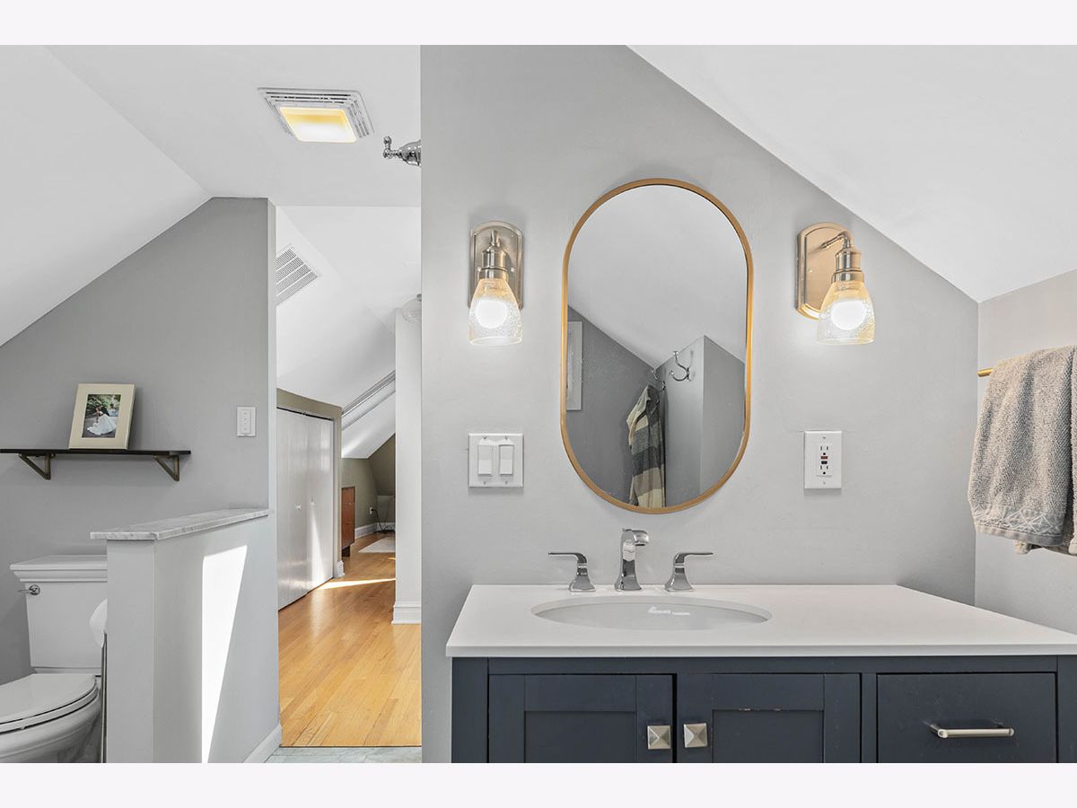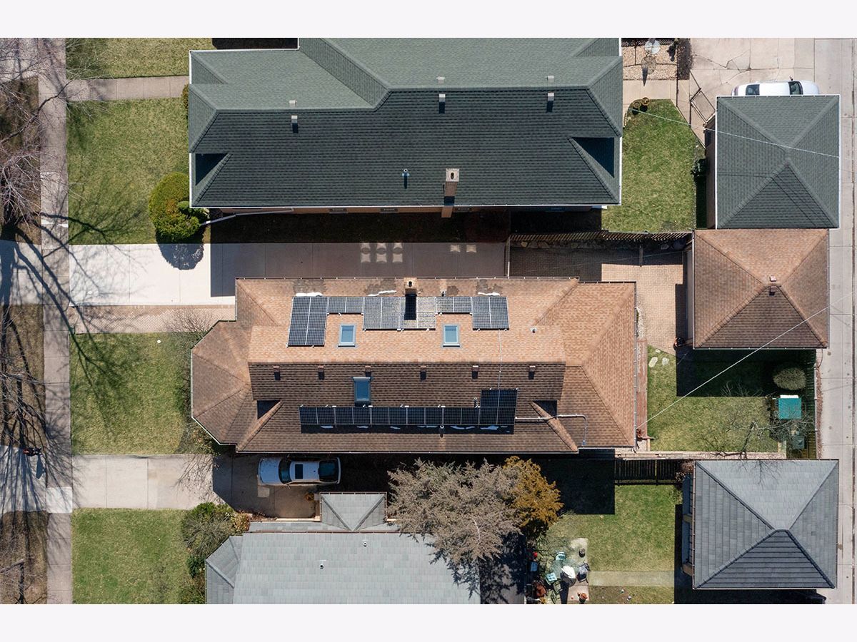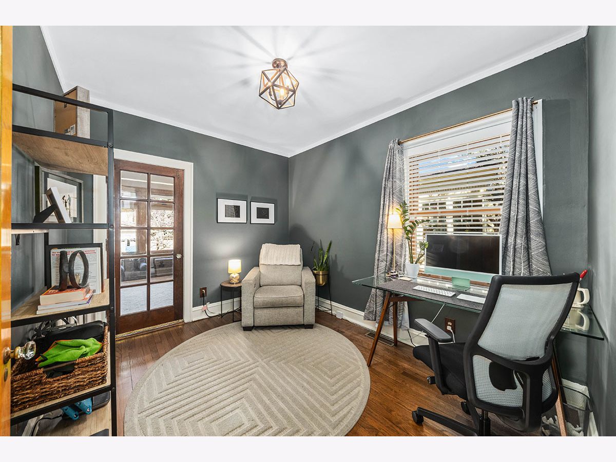 TRULY MOVE IN READY, UPDATED BUNGALOW IN OAK PARK. Brick & Hardie board exterior with professional landscaping of colorful perennial trees & flowers is ready to bloom for the next buyer. Seller has added immense value since purchasing, hates to leave, but their family has expanded & they need to upsize. Covered front entry welcomes you into the foyer with coat closet & gorgeous woodwork. Hardwood Floors throughout whole home were recently refinished. Archway leads to large living room in the front of the home featuring a curved wall of windows, brick decorative fireplace with wood mantel, hardwood floors & professionally wired tv access & wall mount. Separate dining room has new lighting, wood floors, a swing door to the kitchen & top down/bottom up shades. The updated kitchen features a walk in pantry, subway tile backsplash, all stainless appliances including newer refrigerator, new quartz countertops, farm sink, new disposal & 5 burner gas range with 2 ovens. The kitchen leads directly into the family room addition, which incorporates gorgeous views of the back yard & partially covered deck & access to the screened-in porch. Family room has great built in shelving & a French door to the 3rd bedroom currently used as an office. Full bath on first floor between both bedrooms. Upstairs you will find the primary suite which includes a generous sunny bedroom with 3 skylights with retractable screens & pull down shades and a recently updated, spa-like bathroom with soaking tub, separate shower with frameless glass door, & new vanity. Upper level also has a sitting area & two large closets with one being a walk in with new Elfa organizers as of 2022. Partially finished basement with several zones for entertaining or storage, laundry area with new washer & dryer, access door to heated crawl and door to the exterior. The property also boasts zoned heating & cooling, a 2 car, detached garage, & newer Marvin windows. EV charger added 2022. Leased solar panels added to roof in 2021 that transfer to the buyer to have a fixed utility payment every month & savings galore. Parking on street & plenty of overnight guest parking on the new concrete driveway. Since purchasing in 2017 the sellers enhanced with putting in a zoned air conditioning system, painted entire interior, changed all lighting, installed window coverings, updated kitchen, 2nd floor bath, new vanity in 1st floor bath, had main sewer cleaned out & repaired, removed & added new landscaping, added metal gate across driveway & more! This home is ready for you to call HOME!