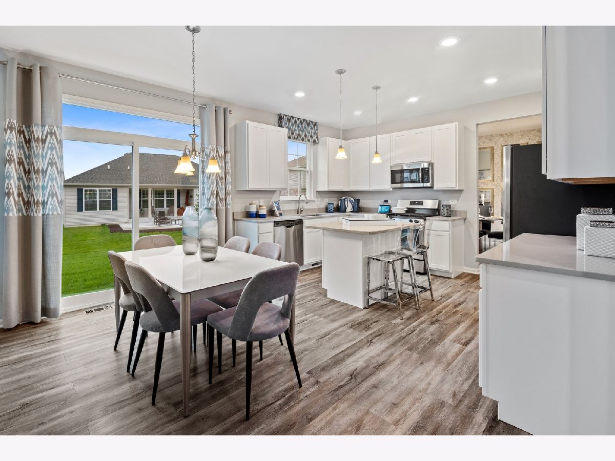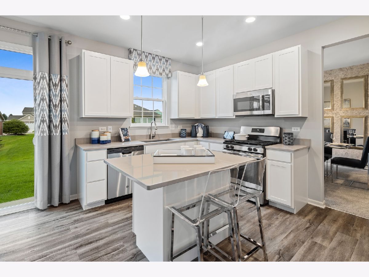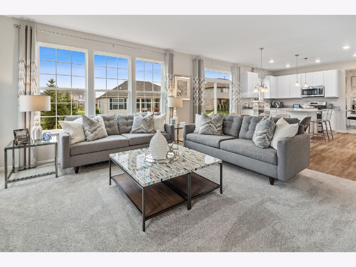 Your dream home awaits and is situated in Lakewood Prairie Clubhouse community with pool, tennis courts, walking trails and more! Two story open entry with luxury plank flooring extending through the kitchen, family & powder room, a gorgeous staircase with iron spindles and stained oak rails are just a few of the custom details that will catch your eye! This home features 9' first floor ceilings, 3 bedrooms plus loft, two-and-a-half bathrooms, a first floor study with french doors, two-car garage, and full basement. The dining room has convenient access to the modern kitchen, with island and plenty of White 42' cabinets, and iced white quartz counters. Beautiful GE Stainless steel appliances, LED recessed lighting, and breakfast area openly situated along the family room with extra windows, providing the perfect spot to come together. The second floor is home to 3 guest bedrooms. Your owner's suite, spaciously designed with a private ensuite complete with tiled designer shower, double bowl raised height vanity, and walk-in closet. 2nd floor laundry room. All of this at the established Lakewood Prairie Subdivision with all Minooka Schools. Pictures of similar completed model/elevation may vary. Homesite 351 will be ready in September!