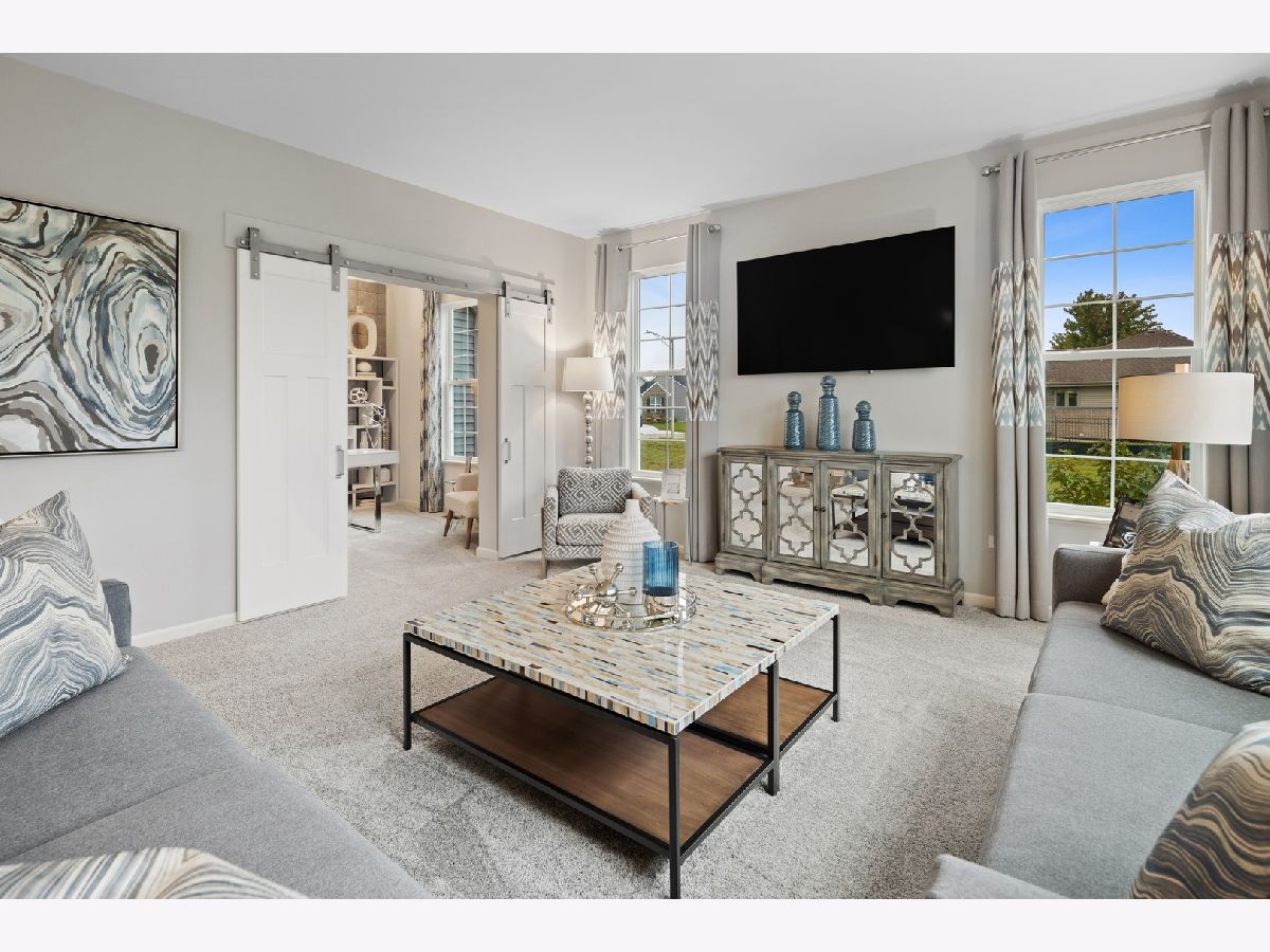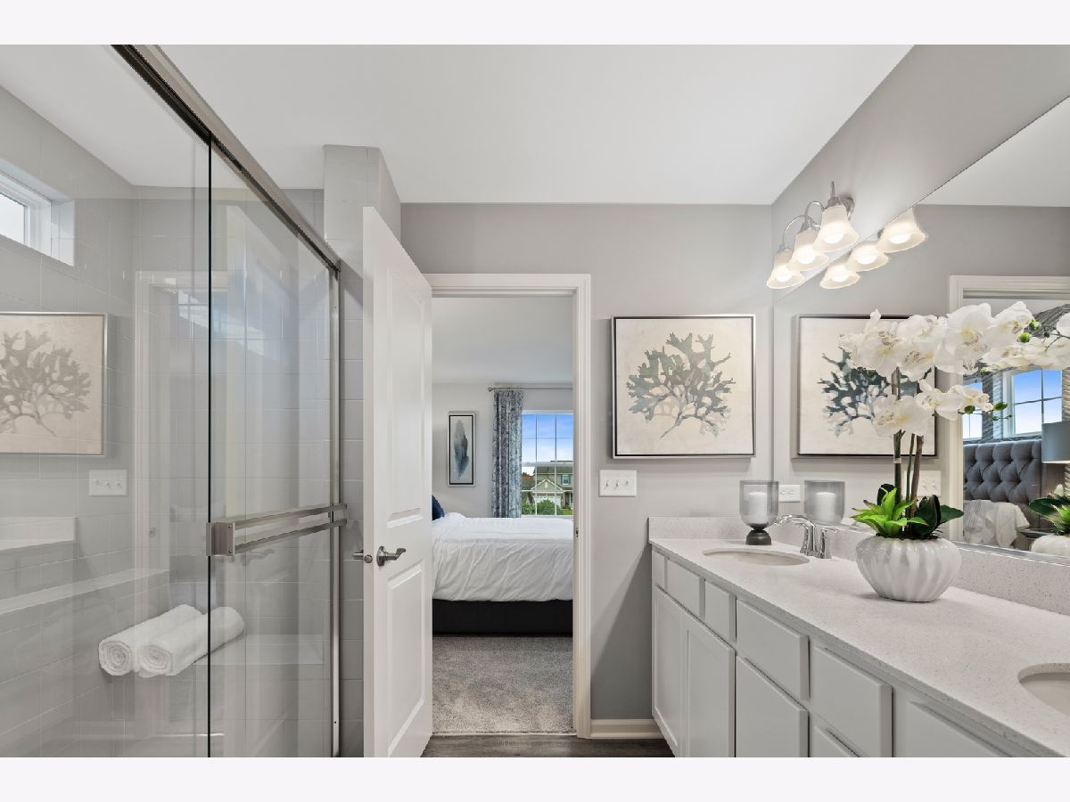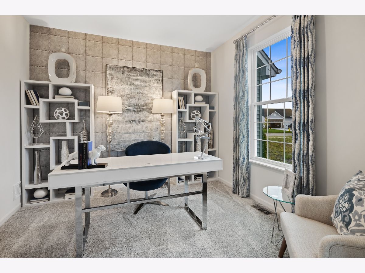 Your dream home awaits and is situated in Lakewood Prairie Clubhouse community with pool, tennis courts, walking trails and more! Two story open entry with luxury plank flooring extending through the kitchen, family & powder room, a gorgeous staircase with iron spindles and stained oak rails are just a few of the custom details that will catch your eye! This home features 9' first floor ceilings, 3 bedrooms plus loft, two-and-a-half bathrooms, a first floor study with french doors, two-car garage, and full basement. The dining room has convenient access to the modern kitchen, with island and plenty of White 42' cabinets, and iced white quartz counters. Beautiful GE Stainless steel appliances, LED recessed lighting, and breakfast area openly situated along the family room with extra windows, providing the perfect spot to come together. The second floor is home to 3 guest bedrooms. Your owner's suite, spaciously designed with a private ensuite complete with tiled designer shower, double bowl raised height vanity, and walk-in closet. 2nd floor laundry room. All of this at the established Lakewood Prairie Subdivision with all Minooka Schools. Pictures of similar completed model/elevation may vary. Homesite 351 will be ready in September!