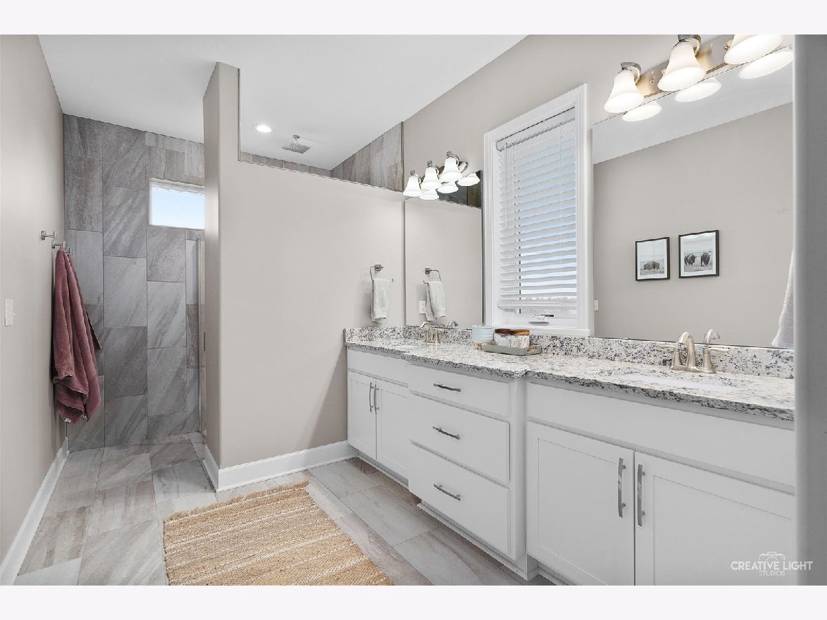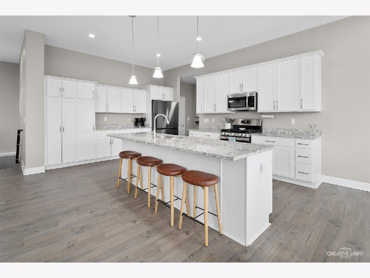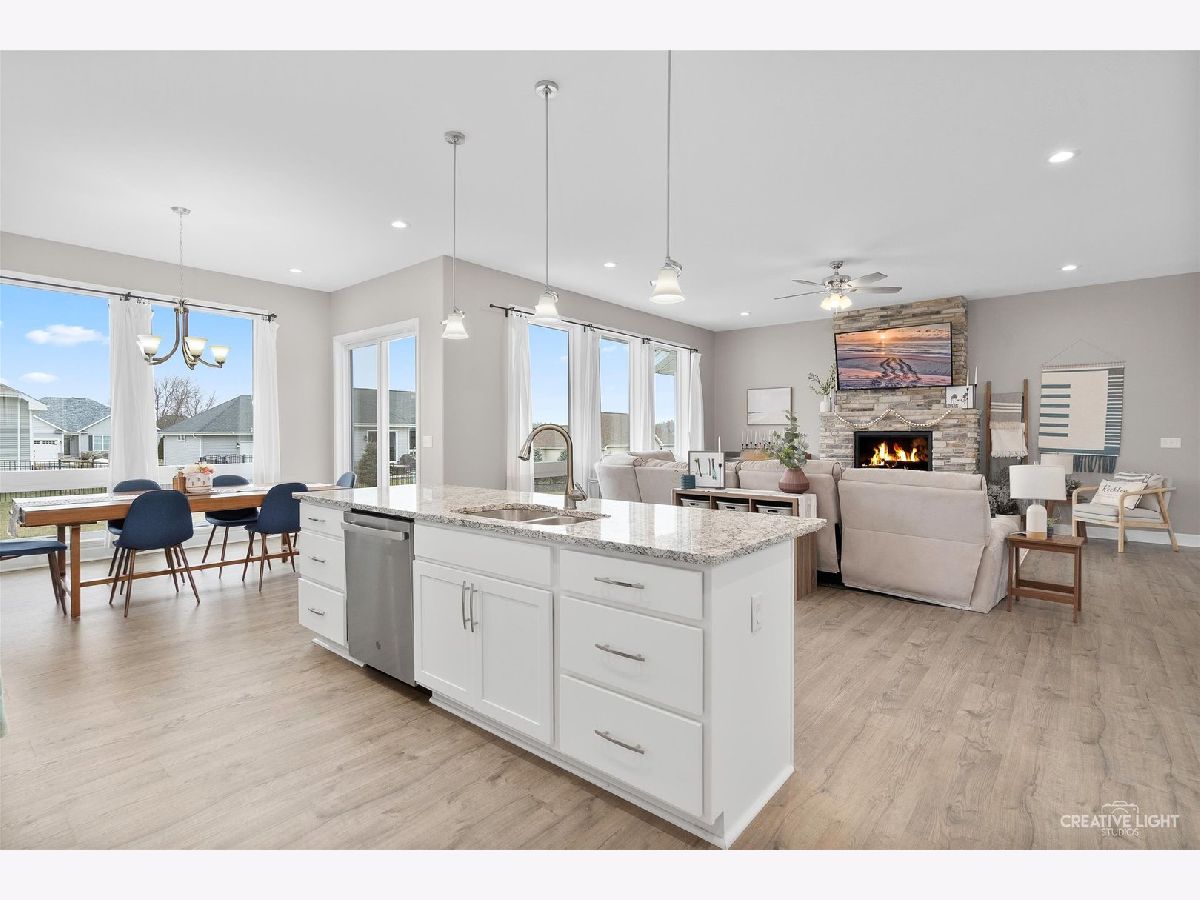 This stunning like new Ranch in the highly sought after Stone Ridge Subdivision rests on just over a quarter of an acre. Built in 2022 by Three Hammer Construction. The exterior boasts board and batten siding and stone facia. The large 3 car garage with 9 foot ceilings provides ample space for vehicles, toys, or storage. The interior is filled with quality finishes in a convenient layout. Through the front door you're welcomed into a open great room and eat in kitchen area with 10 foot ceilings. The silverline windows fill every space with natural light. The custom cabinetry pairs perfectly with granite counters and stainless steel appliances. The Primary suite is a private oasis with features such as trey ceiling, and spa like bath with custom tile shower with dual shower head and his and her vanity. Two secondary bedrooms and baths as well as main floor laundry round out the main level. Downstairs is waiting for the next owner to add there personal touch with nearly 2250 additional unfinished square feet. Out back is a 16x12 concrete patio perfect for relaxing after a long day. You do not want to miss this rare opportunity!