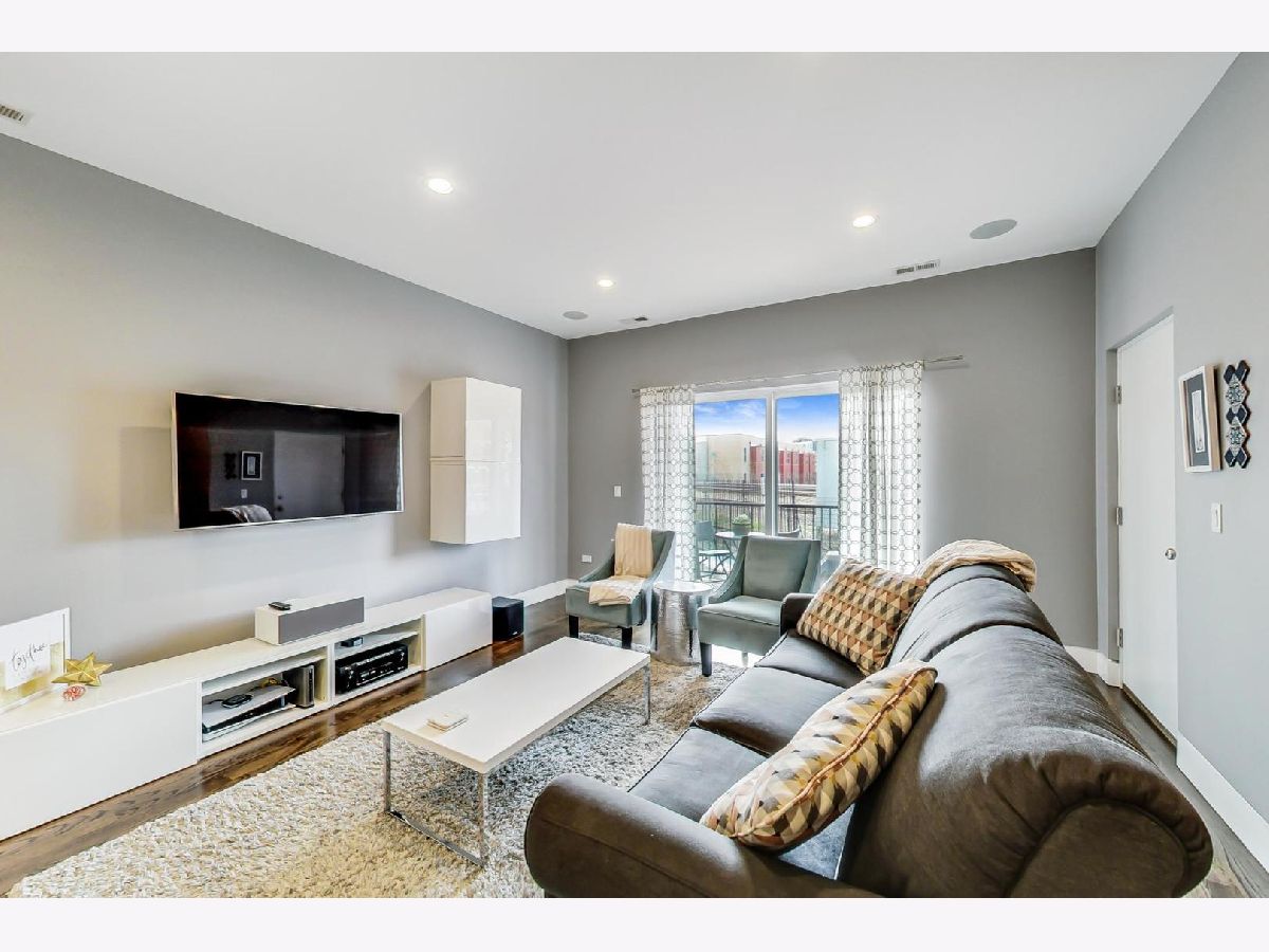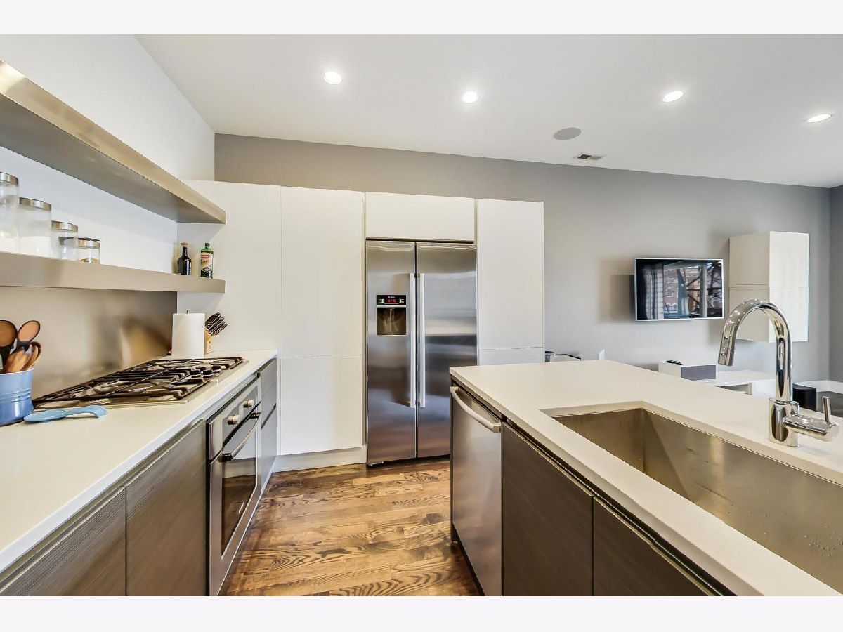 Private, tranquil, and uber-urban! 2011 built, this super contemporary building features high ceilings, clean aesthetic, and awesome skyline views. River West and blocks from bustling Chicago Ave., this 3 bedroom/2 bath modified duplex offers city living with a tranquil twist. Walk into an open living space with room for formal dining and kitchen. Awesome gourmet kitchen features HUGE island, modern cabinets, quartz counters, and open shelving. All three bedrooms great sized with ample closets and two walk in closets to meet any storage needs. Both bathrooms continue to feature the contemporary spa aesthetic found throughout this awesome unit with stacked tile and modern vanities and fixtures. Floor plan even includes a workspace for that remote learning/work situation. Feature further include neutral gray colors and hardwood floors throughout, large windows, and surround sound. Balcony has city skyline views! Garage space included in price. Steps from everything on Chicago Ave., close to downtown, and easy access to highways and public transportation.