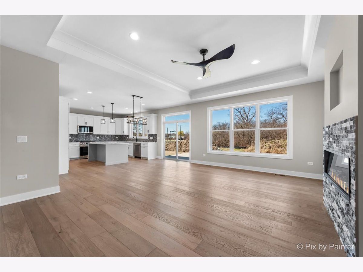 This stunning 3-bedroom ranch home perfectly combines modern comfort and sleek style, showcasing the best of new construction! Step inside and be greeted by an expansive open-concept floor plan, where natural light pours in, creating a bright and airy atmosphere that flows effortlessly from room to room. The spacious kitchen is a dream, featuring modern appliances, abundant cabinetry, and a large center island-ideal for casual dining, entertaining, or preparing your favorite meals. The living room is the heart of the home, offering a cozy fireplace that invites you to relax and unwind while enjoying time with family and friends. Need extra space? The versatile den is perfect for an office, library, or a quiet retreat where you can curl up with a good book. The primary suite is a true oasis, complete with a generously sized walk-in closet with ample organization storage, and a luxurious bathroom featuring dual sinks and an exquisite walk-in shower. Two additional bedrooms ensure comfort for family members or guests. The impressive 3-car garage boasts tall ceilings, providing plenty of room for vertical storage, potential overhead shelving, or even a lift for car enthusiasts. Venture downstairs to the full basement, where endless possibilities await-whether you're dreaming of a home theater, gym, or extra living space, this area is ready for your creative touch. Outside, the backyard is perfect for outdoor living, ensuring peace and privacy. Residents of Port Barrington enjoy the serene ambiance of a small-town community while still being just a short drive from all the amenities and excitement nearby cities have to offer.