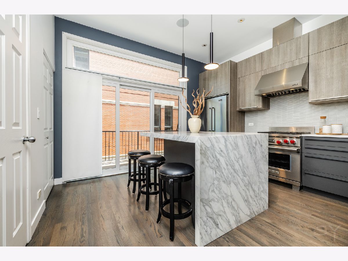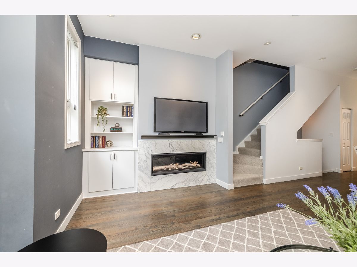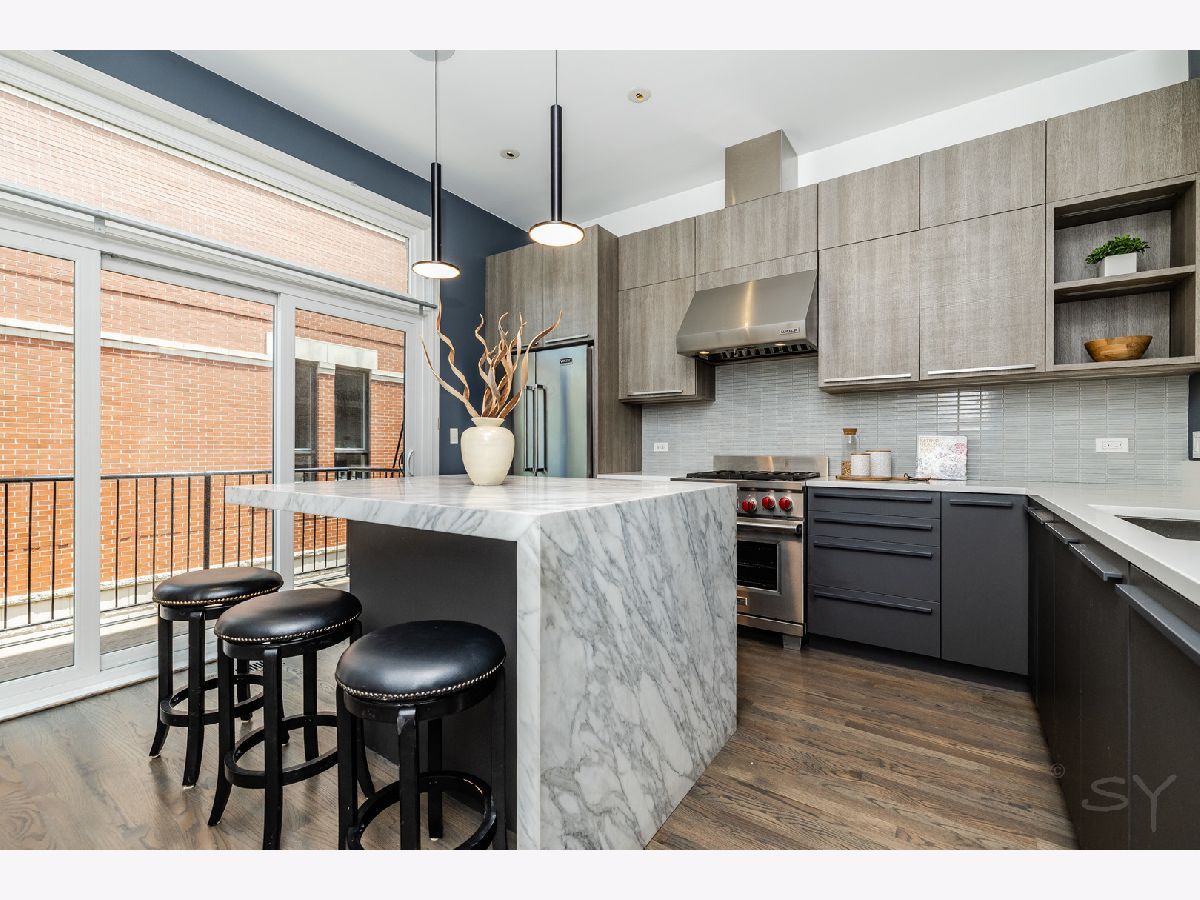 Spacious, sun-filled all brick townhome in an unbeatable Old Town location! This thoughtfully designed home features expansive living spaces, high ceilings, and elevated finishes throughout. The functional floor plan offers four levels of living space with incredible natural light and two private outdoor spaces. The main level includes an inviting foyer, a family room, perfect for a home office, gym or den and an attached two car garage. On the second level, the open living space boasts 10' ceilings, a Napoleon linear gas fireplace with Calcutta marble slab surround, custom built-in shelving, and a large bay window. The living room flows into the spacious dining area with a modern chandelier and room for a large table. The stunning 2018 kitchen renovation with one of a kind custom elements includes contemporary Leicht cabinets with LED undermount lighting, 2" honed Calcutta marble waterfall island, white Quartz perimeter counters, Julien Smartsink, Wolf stove and range hood, Viking refrigerator, Miele dishwasher, Ann Sacks ceramic tile backsplash and convenient microwave drawer. Updated half bath boasting a Porcelanosa floating vanity, Dornbracht faucet and Carrera marble wall, as well as a contemporary mirror and lighting. The balcony off the kitchen makes for perfect entertaining. Head upstairs to the primary suite boasting a large bay window, walk-in closet and primary bath with Madeli double vanity, oversized shower with floor to ceiling marble and Hahnsgrohe rain showerhead, Kohler Catalan built in mirror cabinets, and honed marble flooring. One additional bedroom and full bath complete the second floor. The fourth floor features a third bedroom that could also be used as a home office, playroom, media room or home gym, as well as a large 17' wide deck. The community features a private drive for residents and guests, as well as a private, common courtyard. Abundant guest parking onsite. Steps to parks, shopping, restaurants, public transit and all that Old Town has to offer!
