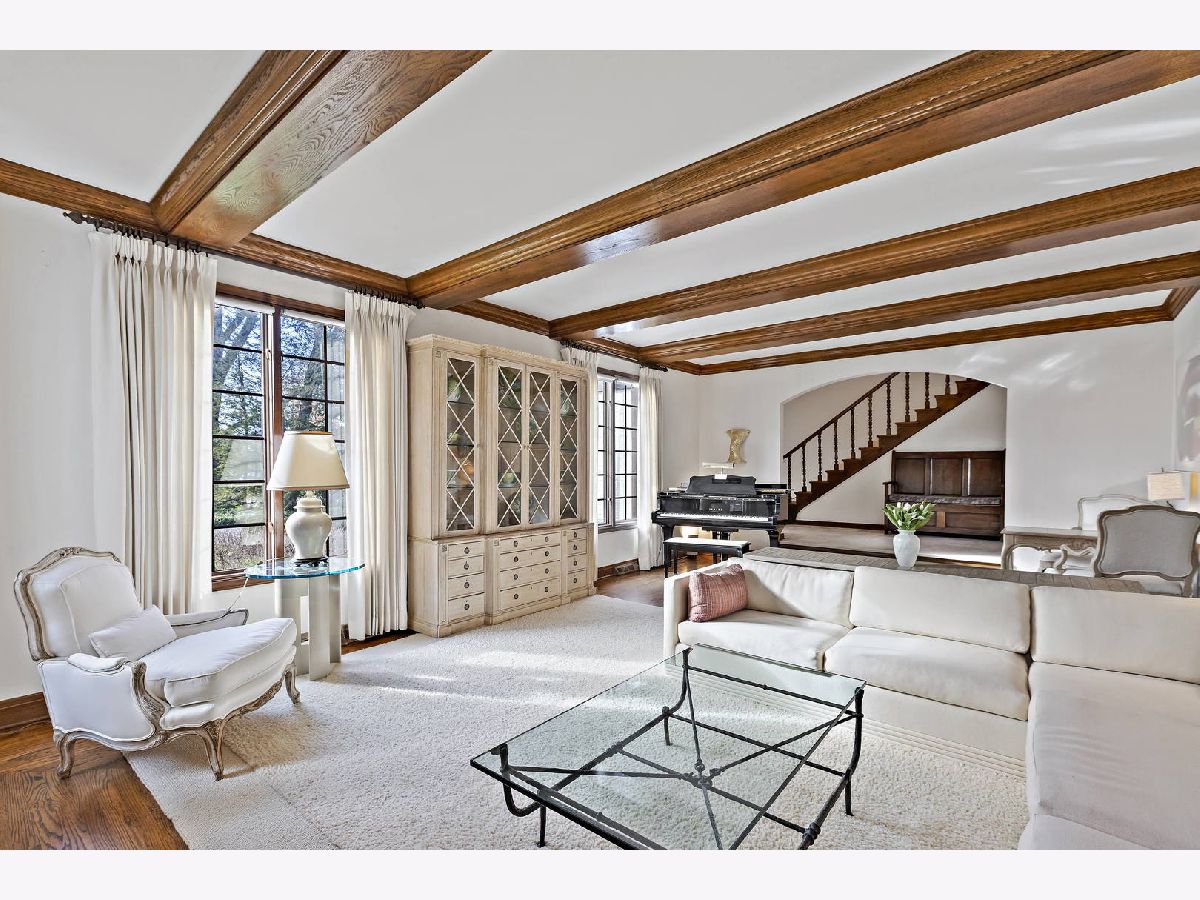 Your search ends with this classic North Shore Tutor close to everything. Great entertaining flow on oversized .45 lot with circular driveway, spacious rooms, custom white DiGiulio eat-in Kitchen with center island and glass doors to back yard opening to Family Room offering wet bar, fireplace, sliding doors to back yard and HW under carpet. Enter stunning formal Living Room through arched doorway with beamed ceilings and Fireplace. Dining Room with arched doorway, hardwood floors and China closet. Media Room with glass doors to back yard. Paneled Office with fireplace. Enter gracious front Foyer with marble floors and 2 coat closets. The second level includes Primary Bedroom Suite with fireplace. Primary Bathroom offers vaulted ceilings, sky lights, large Dressing Room, 2 walk-in closets, luxurious soaking tub, walk-in shower, dual vanities and private water closets. Upstairs you will also find 3 additional en-suite Bedrooms each with an abundant closet space. Basement level is finished with a recreation area with wonderful soda fountain, 4 more rooms and a full Bathroom. Service quarters off Kitchen offers abundant pantry storage, Laundry Room and en-suite Bedroom. Many newer windows, security system, sprinkler system, whole house Generator. Finally, you will love the beautiful and very private fenced yard with mature landscaping and patio. The large parking area includes a 3 car garage plus parking for many. This home offers good bones and is easy to show and a pleasure to see! Just a few blocks to Crow Island Elementary School, Cook County Forest Preserve, the Village of Winnetka, shopping, restaurants, playground, beaches and Metra. Award winning school New Trier Schools.