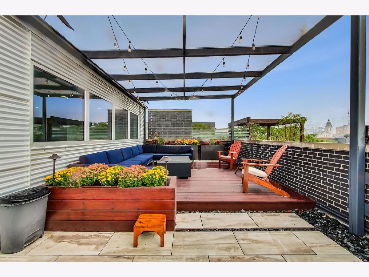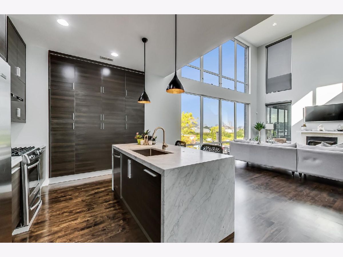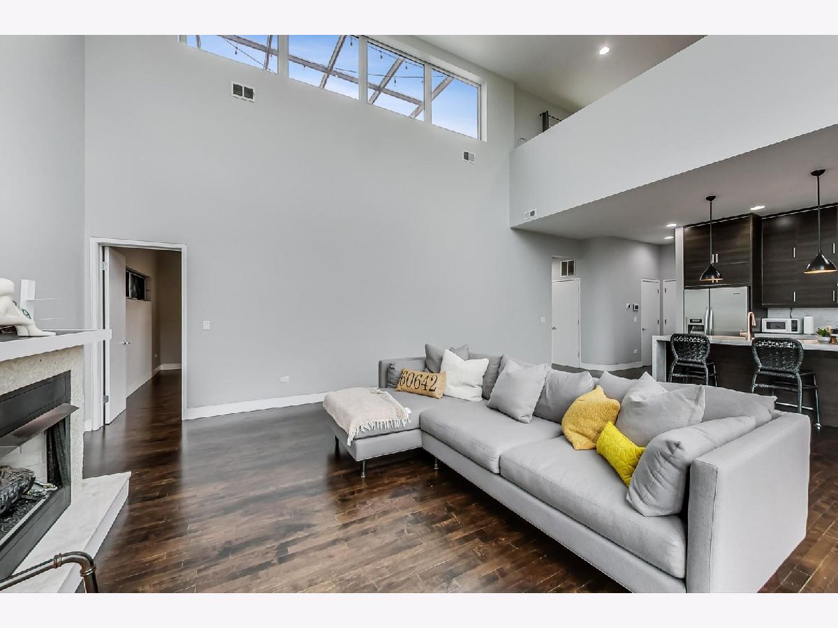 Reduced under $610k! What a value! Beautiful contemporary style 2300 square foot 3 bed 2.1 bath duplex-up sun-drenched penthouse condo in HOT River West priced to sell! This unit is located on a tree-lined street and features an open floor plan and showcases 20 ft. ceilings, fresh painting, hardwood floors, new floor-to-ceiling windows in the living room, full-sized in-unit washer and dryer, ultra-modern chef's eat-in kitchen with large cabinets, island with waterfall edge, stainless steel appliances, and marble countertops! The kitchen flows into a living/dining room combo with a GAS fireplace. THIS HOME is ideal for entertaining. The primary bedroom suite includes a walk-in closet with professionally installed organizers, its own PRIVATE balcony, a full spa-like bath with a soaking tub, double modern sinks, and a separate shower! The second-level 3rd bedroom/loft area is currently open and is perfect for your PRIVATE at-home office needs or as a family room area as it includes a wet bar. It can also be closed off and used as a 3rd bedroom with a closet and half bathroom that is designed by famed Chicago artist "Tubs". There is also an expansive recently remodeled ('18), 548 square foot PRIVATE rooftop deck with incredible city skyline views, pergola, and a built-in outdoor grill and fireplace! There is a 1-car garage parking space included in the price! Located two blocks to the CTA blue line, less than 10 minutes to downtown, and within close proximity to the expressway, the West Loop, Fulton Market, and lots of premier dining and entertainment options! Act now and you can move in by the end of the year!