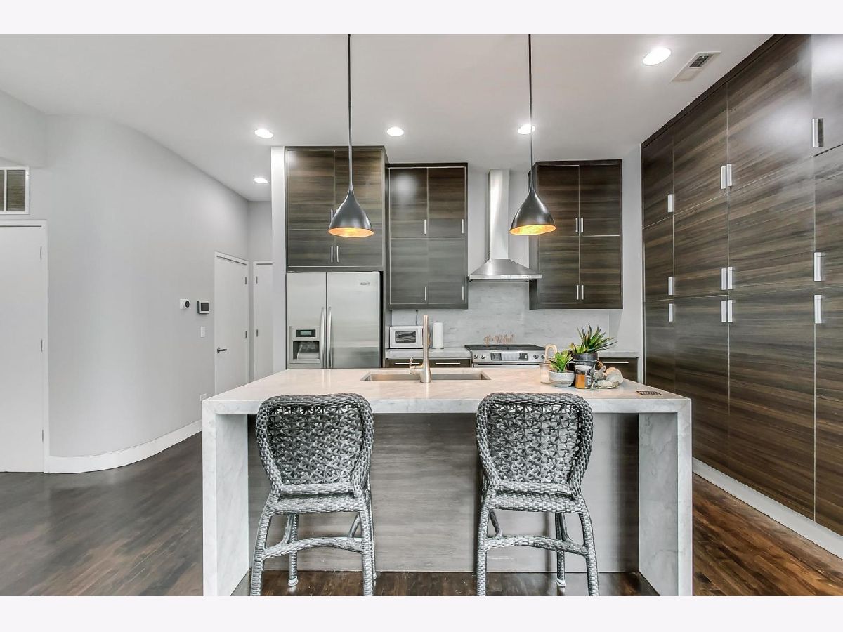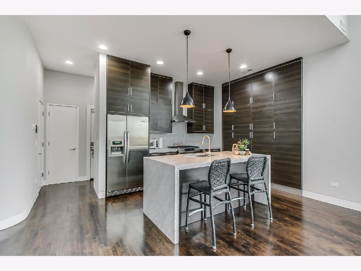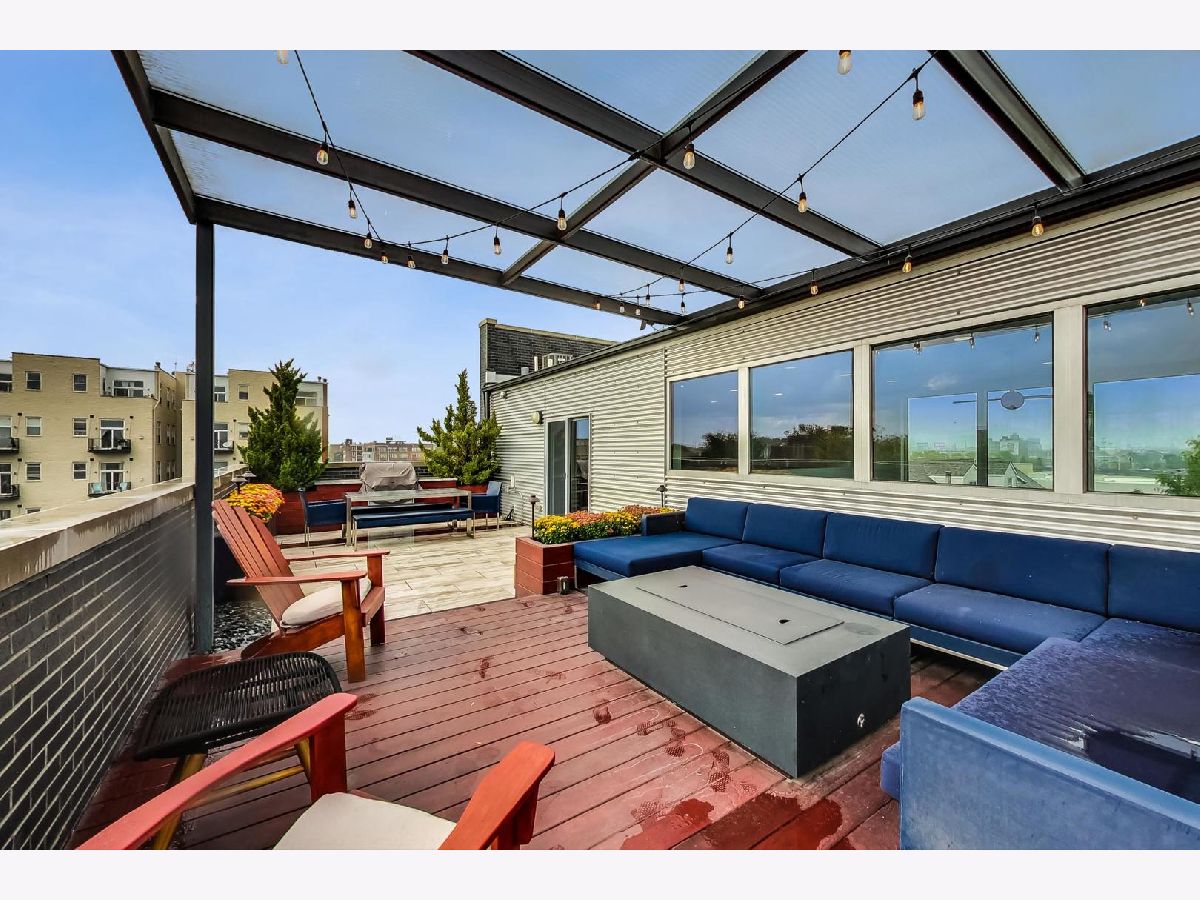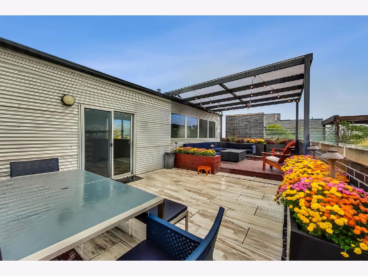 Reduced under $610k! What a value! Beautiful contemporary style 2300 square foot 3 bed 2.1 bath duplex-up sun-drenched penthouse condo in HOT River West priced to sell! This unit is located on a tree-lined street and features an open floor plan and showcases 20 ft. ceilings, fresh painting, hardwood floors, new floor-to-ceiling windows in the living room, full-sized in-unit washer and dryer, ultra-modern chef's eat-in kitchen with large cabinets, island with waterfall edge, stainless steel appliances, and marble countertops! The kitchen flows into a living/dining room combo with a GAS fireplace. THIS HOME is ideal for entertaining. The primary bedroom suite includes a walk-in closet with professionally installed organizers, its own PRIVATE balcony, a full spa-like bath with a soaking tub, double modern sinks, and a separate shower! The second-level 3rd bedroom/loft area is currently open and is perfect for your PRIVATE at-home office needs or as a family room area as it includes a wet bar. It can also be closed off and used as a 3rd bedroom with a closet and half bathroom that is designed by famed Chicago artist "Tubs". There is also an expansive recently remodeled ('18), 548 square foot PRIVATE rooftop deck with incredible city skyline views, pergola, and a built-in outdoor grill and fireplace! There is a 1-car garage parking space included in the price! Located two blocks to the CTA blue line, less than 10 minutes to downtown, and within close proximity to the expressway, the West Loop, Fulton Market, and lots of premier dining and entertainment options! Act now and you can move in by the end of the year!