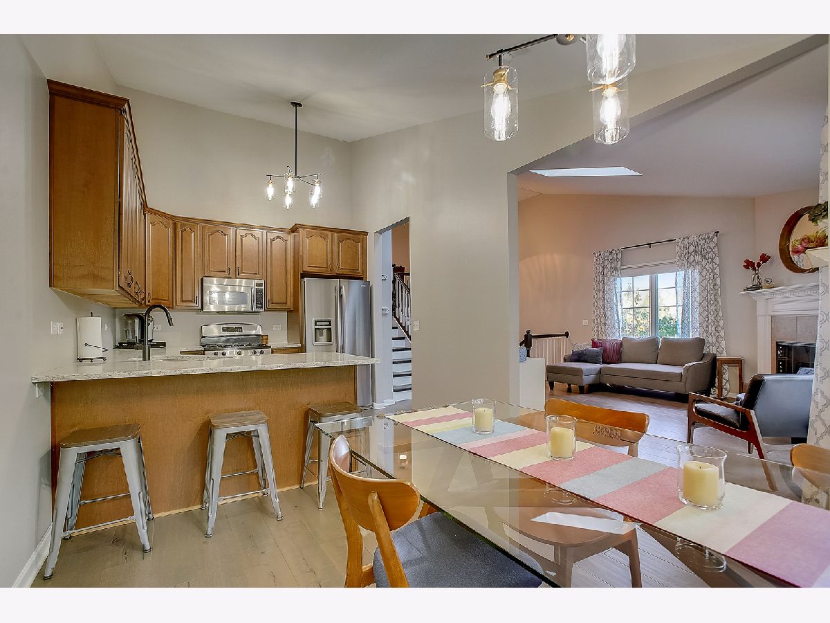 This bright and open end unit townhome in the popular West Lake subdivision backs to nature and open space, is close to shopping and restaurants and is just minutes from RT 14 and RT 31 and METRA. The main level family room features new flooring, soaring vaulted ceilings, cozy fireplace, skylight and tall windows that overlook nature. You'll love the large eat-in kitchen with maple cabinets, stainless appliances and new quartz counters. Upstairs you'll find a spacious loft and the large owners suite with walk-in closet and updated bath with dual sinks, soaking tub and shower. The English Basement features new flooring, large 2nd bedroom, 2nd bath and laundry room. The backyard is a peaceful, private oasis with a raised deck overlooking mature trees and cement patio.