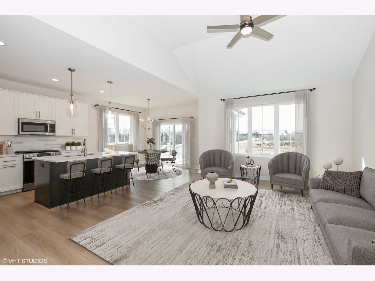 This beautifully crafted ranch villa offers timeless curb appeal with a brick and LP SmartSide exterior, highlighted by elegant Pella 250 Series windows and a welcoming covered deck-perfect for relaxing or entertaining. Step inside through the striking 8-foot entry door with a secure 3-point locking system and discover an open-concept layout designed with comfort and style in mind. The gourmet kitchen is a true showstopper, featuring 42" cabinetry, gleaming quartz countertops, a stylish tiled backsplash, under-cabinet lighting, and an oversized walk-in pantry-ideal for any home chef. Just off the kitchen, the spacious family room is enhanced by a vaulted ceiling, creating a light-filled, inviting space for everyday living. Unwind in the luxurious primary suite, complete with a tray ceiling, comfort-height double vanity, a spa-inspired 6' tiled shower, and an expansive walk-in closet. Hallmark luxury vinyl plank flooring flows throughout the main living areas, offering durability and warmth. Located close to shopping, dining, and major expressways, this townhome blends modern convenience with sophisticated design. Other floorplans and locations are available-don't miss your opportunity to personalize your dream home in this exceptional community!