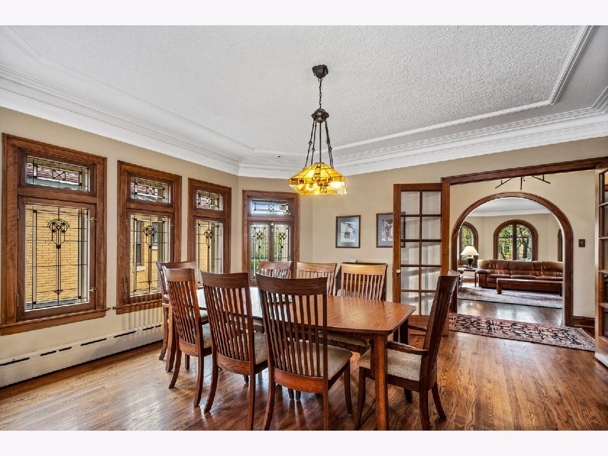 SPECTACULAR, ELEGANT AND PRISTINE ARE A FEW WAYS TO DESCRIBE ONE OF THE LARGEST BRICK BUNGALOWS IN OAK PARK. LOCATED IN ONE OF THE BEST AREAS IN OAK PARK; WALKING DISTANCE TO MANN SCHOOL AND LINDBERG PARK. THE HOME STILL HAS ALL OF THE HANDCRAFTED PLASTER CEILING MOLDINGS, EXTENSIVE ORIGINAL WOODWORK, AND MANY ORIGINAL CLASSIC STAINED GLASS WINDOWS AND DOORS. THE HOME BO0ASTS AN ABUNDANCE OF LIGHT, WARMTH AND CHARM. YOU FEEL AT HOME ONCE YOU WALK THRU THE FRONT DOOR AND INTO THE FOYER. THERE IS A HUGE LIVING ROOM WITH SPECIAL STAINED GLASS WINDOWS AND DOORS TO BRING THE VIEW OF THE PROFESSIONALLY LANDSCAPED YARD INSIDE. PLUS, A WOOD BURNING FIREPLACE TO TAKE THE CHILL OUT OF THE AIR ON THOSE COOL EVENINGS. ADJACENT TO THE RENOVATED CHEF'S KITCHEN IS A FORMAL DINING ROOM LARGE ENOUGH TO HOST THE BEST FAMILY HOLIDAY GATHERINGS. THE KITCHEN HAS A PLETHORA OF CABINETS AND STORAGE INCLUDING A GENEROUS AREA FOR THE KITCHEN TABLE. IT HAS STAINLESS STEEL APPLIANCES, STONE COUNTER TOPS, UNDER CABINET LIGHTING, TILED BACKSPLASH AND WHITE 42'' CABINETS. THERE IS A HEATED SUN ROOM WITH THE ORIGINAL TILE FLOOR OFF THE KITCHEN; THE PERFECT PLACE TO TAKE IN THE OUTSIDE ELEMENTS WITHOUT GETTING COLD OR WET. JUST OUTSIDE THE SUNROOM IS A FENCED YARD AND DECK. THERE ARE 5 BEDROOMS THROUGHOUT THE HOME; ALL SPACIOUS AND BRIGHT EACH WITH LOTS OF CLOSET SPACE. THE LOWER LEVEL HAS A GORGEOUS FAMILY ROOM, A HUGE REC ROOM AND TONS OF STORAGE TO HOLD ALL OF YOUR EXTRA COSTCO TRIPS OR LET THE KIDS PLAY NO MATTER WHAT THEIR AGE. THERE IS A 2 CAR GARAGE WITH THE ORIGINAL FINISHED CEILING, LOTS OF LIGHT AND IT'S OWN 200 AMP ELECTRIC SERVICE. THE HOME HAS CENTRAL AIR CONDITIONING AND RADIATORS. THUS THE BEST OF BOTH WORLDS FOR HEATING AND COOLING. THERE IS A LONG BRICK PAVER DRIVEWAY TO HOLD ALL OF YOUR VEHICLES AND ADD CHARM TO THE OUTSIDE OF THE HOME. TRULY ONE OF THE GEMS OF OAK PARK.