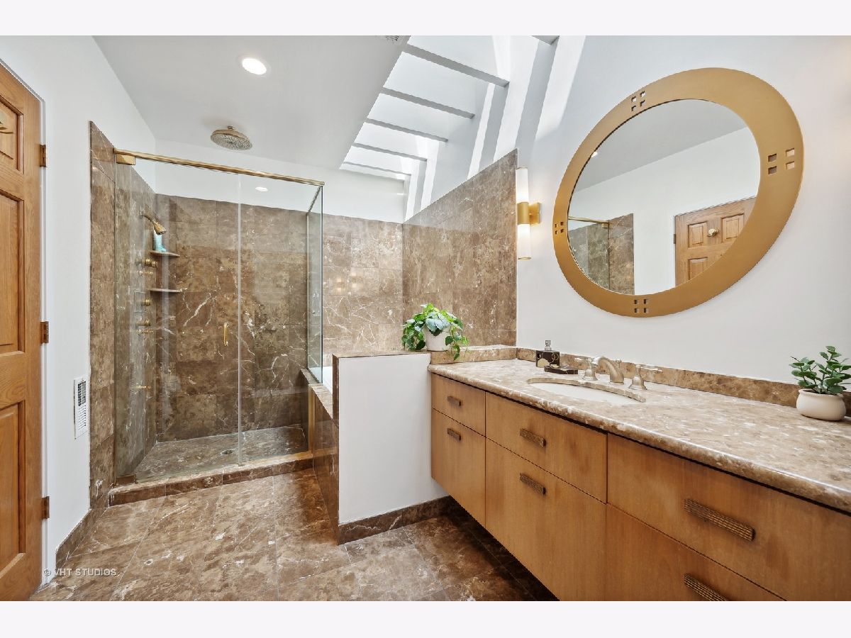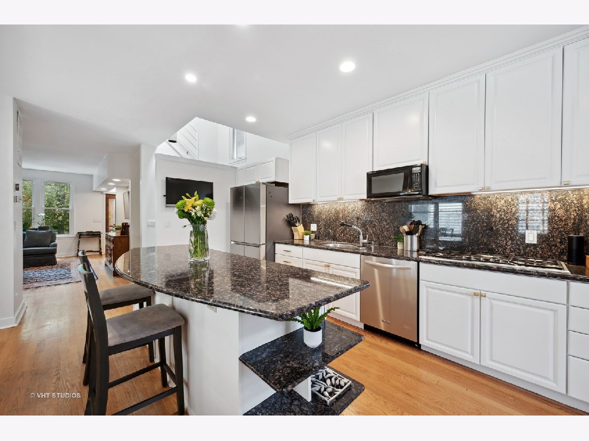 Come home to this 4 bedroom, 3 bath single family located on quiet, tree-lined Oakdale Ave. in the heart of Lakeview! This charming, well-maintained home is adorned with numerous windows and skylights that invite natural light at every corner. Wonderful, unique floorplan offers generous room sizes and 4 bedrooms on the upper two levels. Many newer updates include custom paint and lighting throughout. Walk-in to the lovely entry foyer with large front coat closet. The spacious living room offers a wonderful entertaining space highlighted by a double-sided wood-burning/gas starter fireplace with a stunning marble slab mantel and surround. The gourmet kitchen features beautiful, newly refinished white maple cabinetry with brass hardware, stone counters, double-oven, undermount lighting & more. Large island with breakfast bar seating adjacent to large, separate dining area with custom chandelier. Glass french doors open to the inviting rear deck with pergola, and beautifully landscaped yard with brick pavers, grassy area and lush perennial garden. Separate rear entry with mudroom off of kitchen. The second level features a lovely primary suite with full wall of closets, and an attached bath featuring a jacuzzi tub and separate shower with rainshower head. Generous second bedroom or use the entire second level as a primary suite and create an office/den. The third level of this home offers a light and bright hallway featuring skylights plus 2 gracious bedrooms with a shared hall bath. The lower-level recreation room features great natural light, brand new carpet and built-in closet. The lower level also has a full bathroom with steam shower and generous laundry room with tons of overflow pantry and storage space. Potential to add a secondary lower-level mudroom. A garage like none other complete's this package with an attached 3-season bonus room offering endless possibilities ... home gym, work from home, play space or just additional storage for all of your gear. Large 2-car garage. Many recent improvements in this turnkey home on this A+ block in south Lakeview. Just a quick walk to many wonderful dining options, transportation, Southport Corridor, grocery & more. Must see this exceptional home!