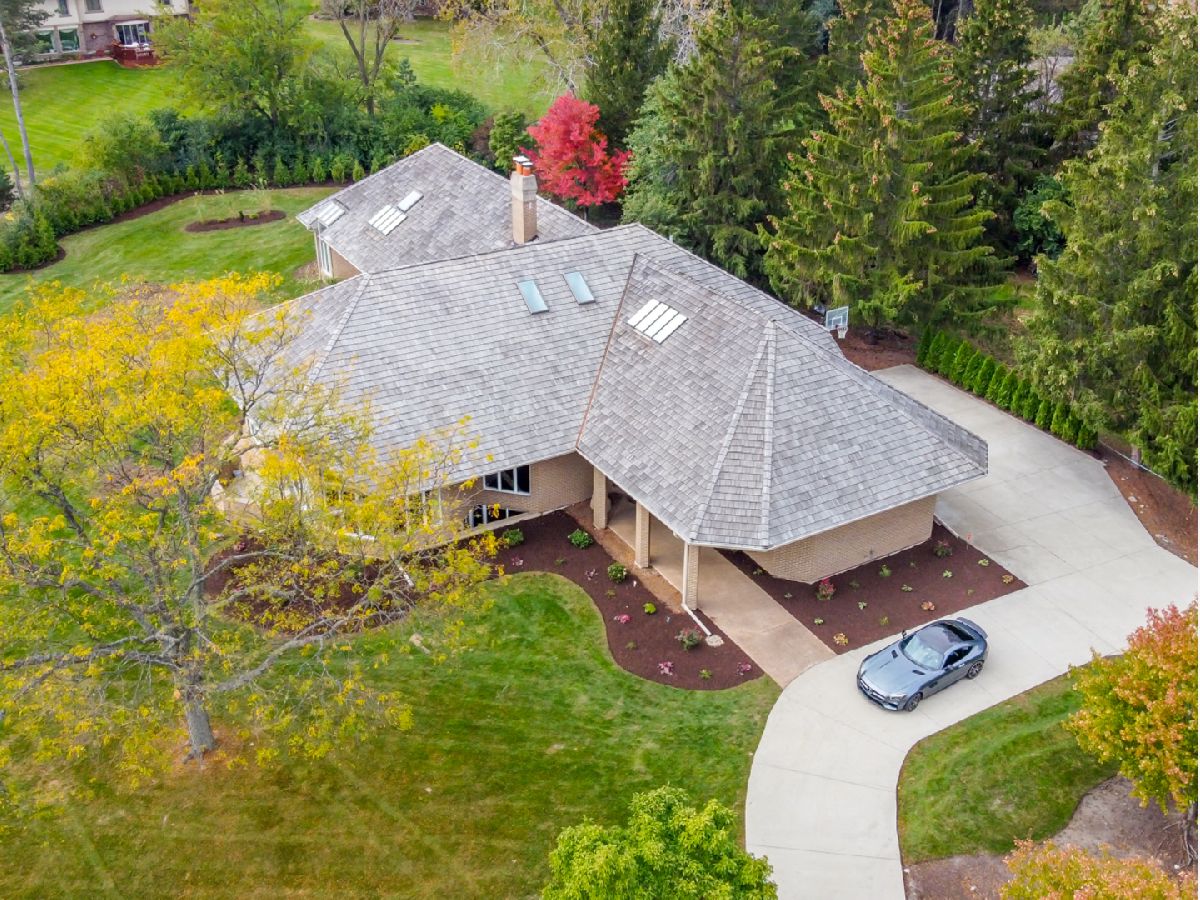Exceptional Custom Home built with a Modern Contemporary Vibe! Wonderful continuity of design and volume from its open floor plan, cathedral ceilings, walls of windows and unique angles. Approximately 4,700 sq ft above ground space + finished basement. This home was just updated from 2017-2021 with lovely modern finishes and functionality. The home features 5 bedrooms, 3.2 bathrooms and Multiple Outdoor Terraces Providing Different Views and Exposures. Walk into a large foyer with vaulted ceilings that leads you to the main living area overlooking the yard. Home has an open concept layout containing the kitchen, family room, dining room, great room, and 2nd floor loft. Kitchen features all custom cabinets, quartz countertops, high end appliances, and a very large island! The primary bedroom is enormous, 41' long! It also has 2 walk-in closet, and en suite bathroom with a soaking tub and separate shower. The huge mud room/laundry room leads to the re-finished 3 car attached garage. The basement is fully finished and potential movie theatre room/game room. This is a Marvel of Engineering and Design and Truly a One-of-a-Kind Must-See Home close to shopping, restaurants and highway. Adlai Stevenson H.S. district.