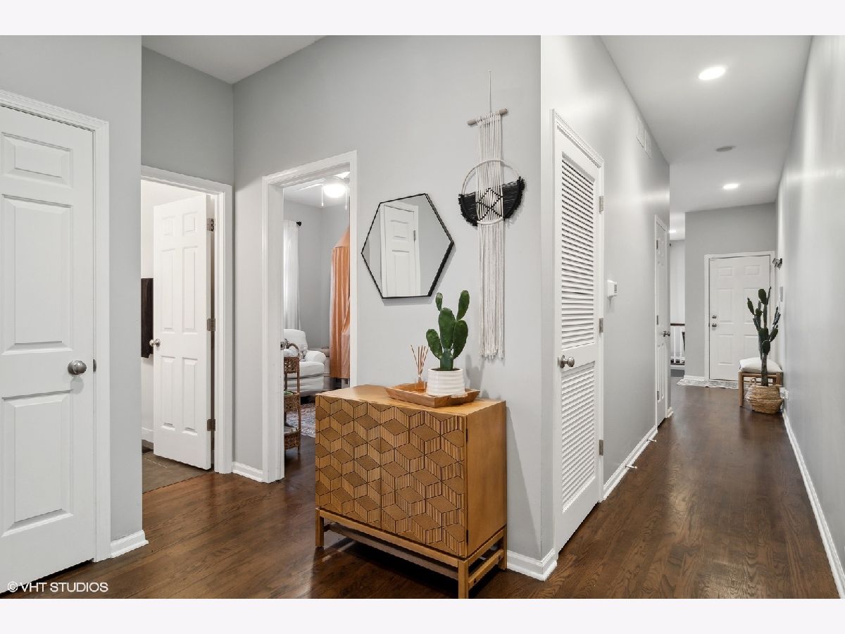 Stunning duplex down on tree-lined Noble just steps from all Wicker Park has to offer. Main living space on upper level is beaming with natural light and features a wood burning fireplace with gas start, recently refinished hardwood floors, and Juliet balcony overlooking front yard space. Kitchen boasts stainless steel appliances, custom white shaker style cabinets, quartz counters with a waterfall edge, and designer backsplash. Functional floor plan with 2 beds and 2 renovated baths on the upper level, featuring spacious and bright primary suite leading out to your private back balcony. Lower level offers a generous additional living space equipped with a wet bar, beverage fridge, and large in-law suite with ensuite bath. Tons of storage and 1 exterior gated parking space included. Water heater, AC and furnace all replaced in 2019. HOA put a new roof on the building in 2019 and sealed block in 2021. Walking distance to amazing restaurants and shops such as Mott St, Parlor Pizza, Smoke Daddy, Intelligentsia, Caffe Streets, Target, as well as Pulaski Park, Division Blue Line, and conveniently located near the highway.