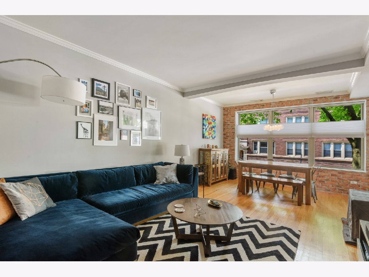 High first floor condo located on quiet block! Spacious living room with lots of natural light and exposed brick wall. Hardwood flooring throughout! 2 bedrooms with large closets for storage. Updated bathroom. Eat in kitchen with granite and stainless steel appliances. In unit washer and dryer. Easy street parking and steps to Whole Foods, Starbuck's and the lake! Great Building with healthy reserves! Located in bustling Edgewater Glen neighborhood! Blocks from the train!