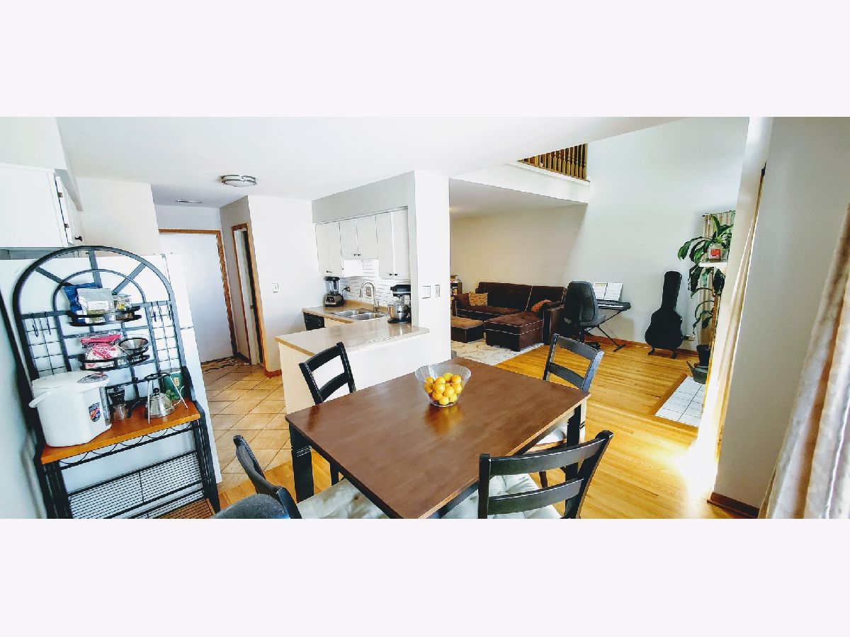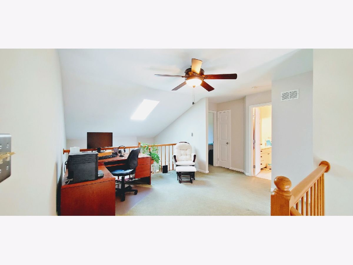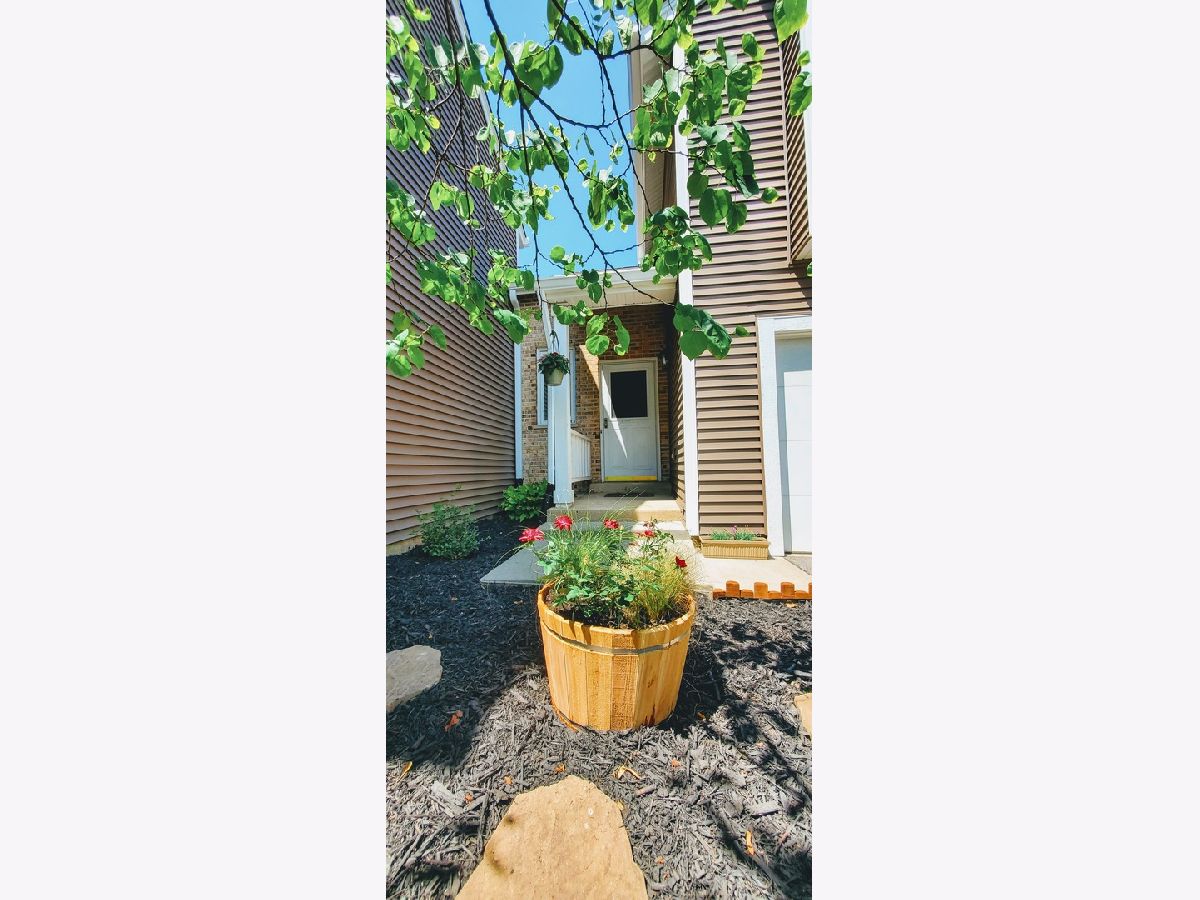 Picture yourself in this adorable townhome. Enter into a tiled foyer leading to a two story living room with gleaming hardwood flooring adorned by a wood burning fireplace, and leading to dining area, which overlooks your own private quaint patio just perfect for relaxing. The kitchen has been refreshed giving it a bright modern farmhouse look. Upstairs you will find a generous size loft overlooking the living area... The primary bedroom features vaulted ceiling and private dressing area and walk in closet. Relax because most of the big stuff has been done... Newer roof, siding, hot water heater, skylite and insulation in 2019.....newer vinyl windows too! Just freshly painted through out along with many recent updates and decorator finishing touches. Enjoy maintenance free living. Quiet cul-de-sac location! Walk to shopping, restaurants and recreation.. minutes to I355 and the Metra...Hurry to schedule your personal viewing!