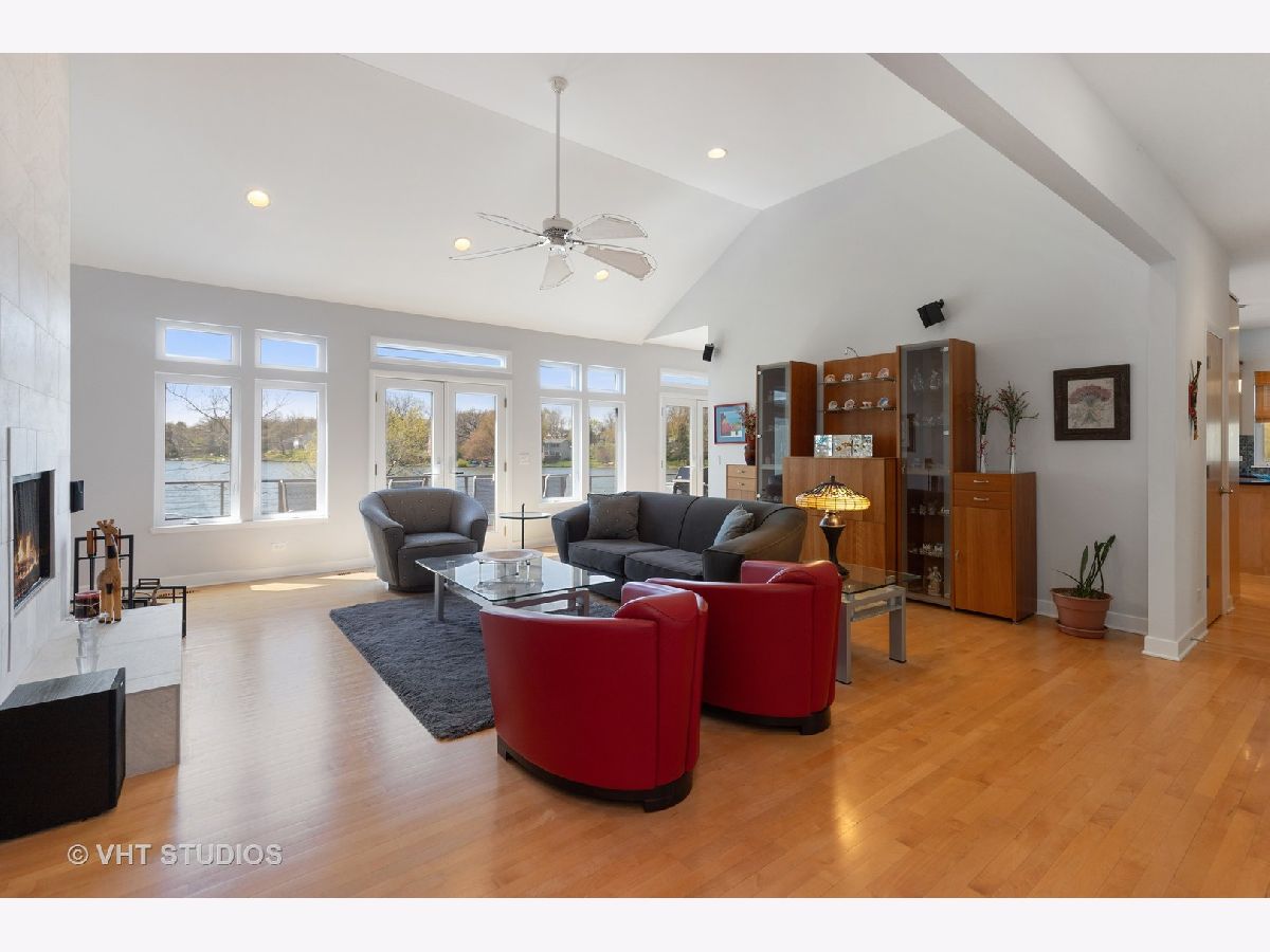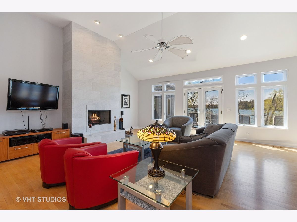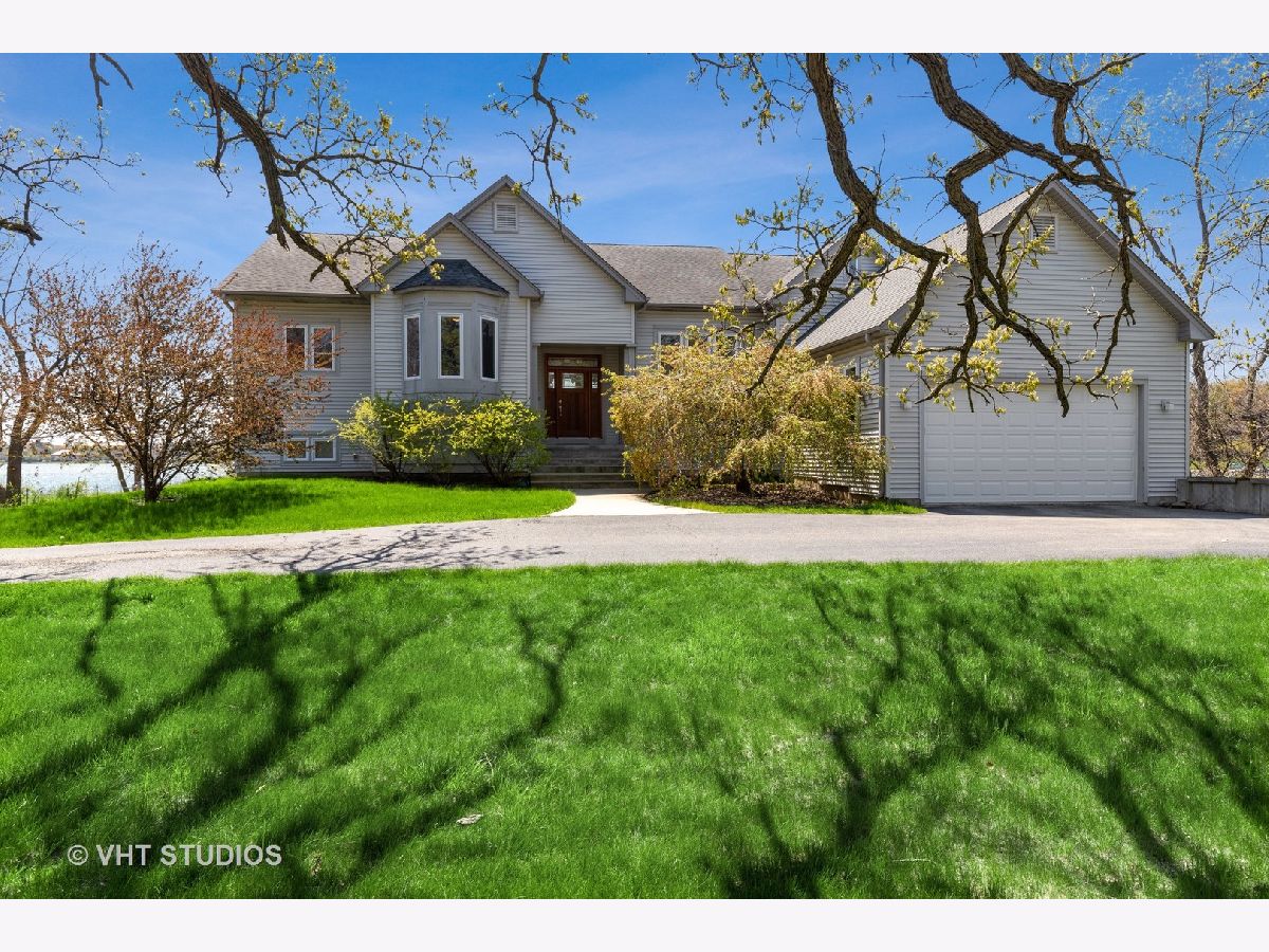 Unbelievable opportunity to own this dream lakefront home built in 2006 with unparalleled views of Grayslake! This custom contemporary home features an open floor plan and boasts over 4800 square feet of living space. Main floor has hardwood flooring, a gourmet kitchen with maple cabinetry, quartz countertops on the island and backsplash, stainless steel appliances. Living room has walls of windows, vaulted ceilings and a gorgeous wood burning fireplace with a quartzite raised hearth. The spacious master suite has volume ceilings, a two sided fireplace and a sitting area with access to a deck. Master bathroom is complete with a bain-ultra bubble jet bath, walk in shower along with two walk in closets. The main level also has two additional bedrooms, a dining room and laundry room. The walkout lower level is PERFECT for entertaining and has a family/media room, recreation room with wet bar, library, 4th bedroom with walk in closet and a full bathroom. A workshop with incredible storage are also on the lower lever. Steps away from Jones Island Park and walking distance to downtown Grayslake and Centennial Park.