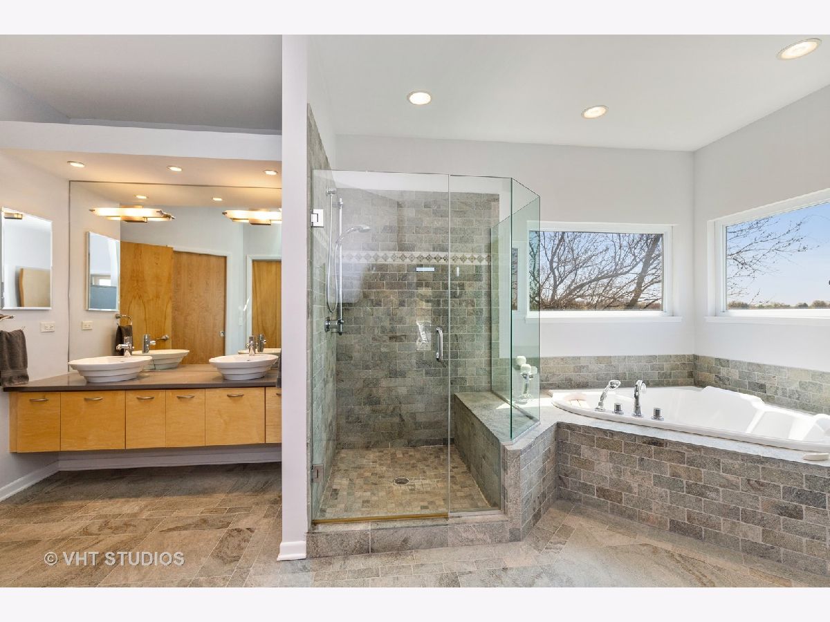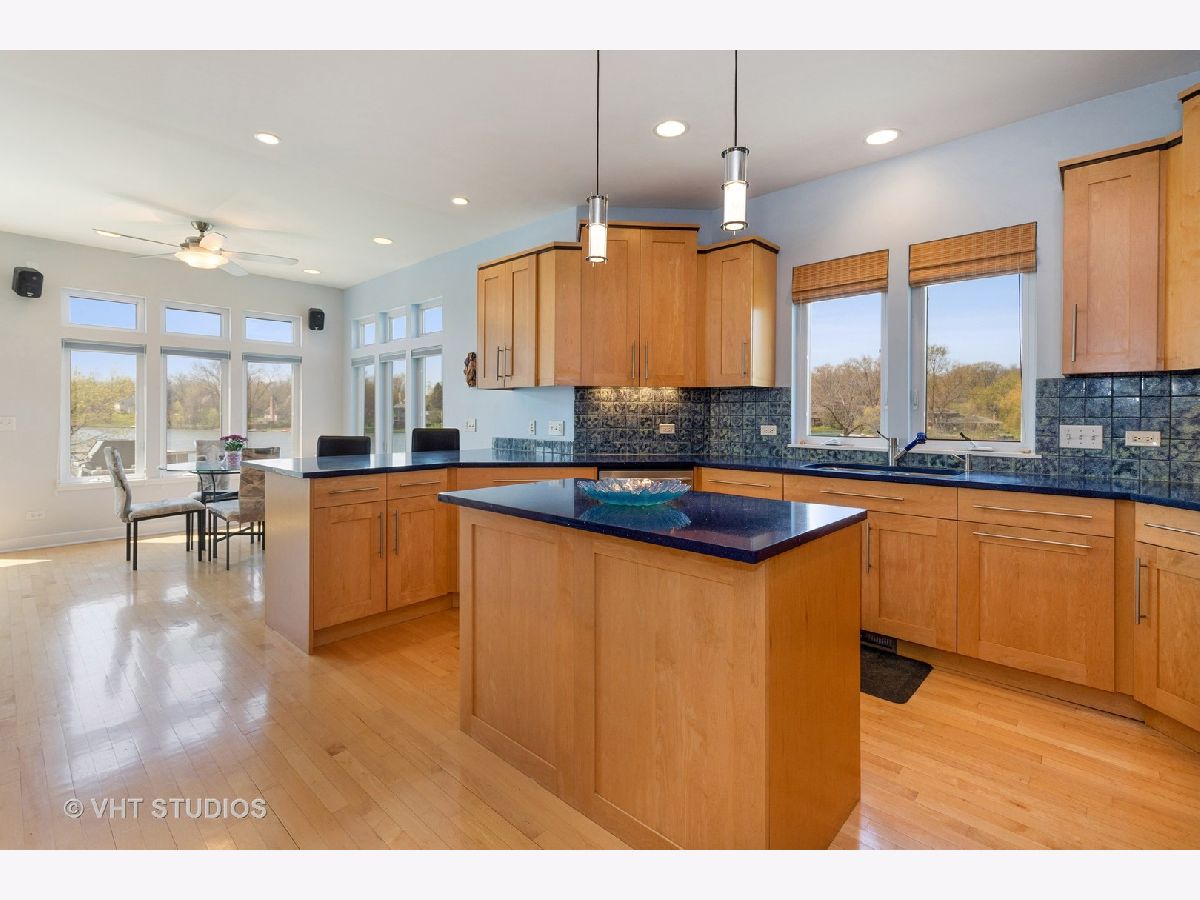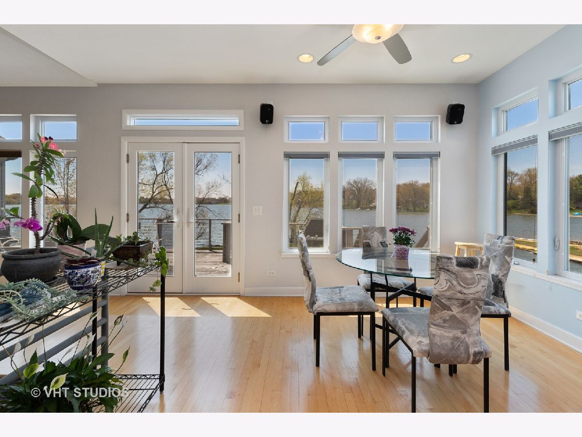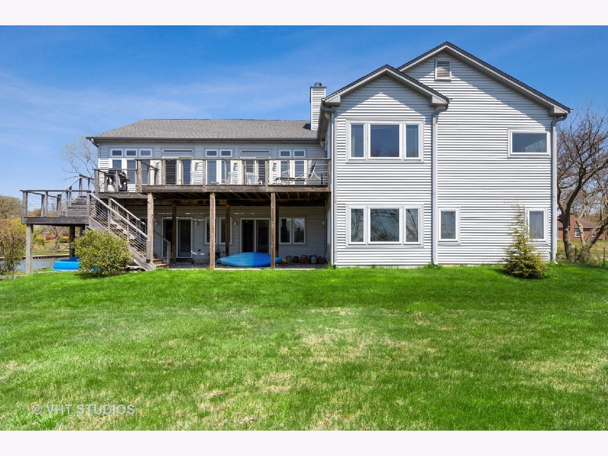 Unbelievable opportunity to own this dream lakefront home built in 2006 with unparalleled views of Grayslake! This custom contemporary home features an open floor plan and boasts over 4800 square feet of living space. Main floor has hardwood flooring, a gourmet kitchen with maple cabinetry, quartz countertops on the island and backsplash, stainless steel appliances. Living room has walls of windows, vaulted ceilings and a gorgeous wood burning fireplace with a quartzite raised hearth. The spacious master suite has volume ceilings, a two sided fireplace and a sitting area with access to a deck. Master bathroom is complete with a bain-ultra bubble jet bath, walk in shower along with two walk in closets. The main level also has two additional bedrooms, a dining room and laundry room. The walkout lower level is PERFECT for entertaining and has a family/media room, recreation room with wet bar, library, 4th bedroom with walk in closet and a full bathroom. A workshop with incredible storage are also on the lower lever. Steps away from Jones Island Park and walking distance to downtown Grayslake and Centennial Park.