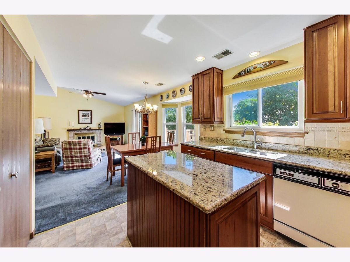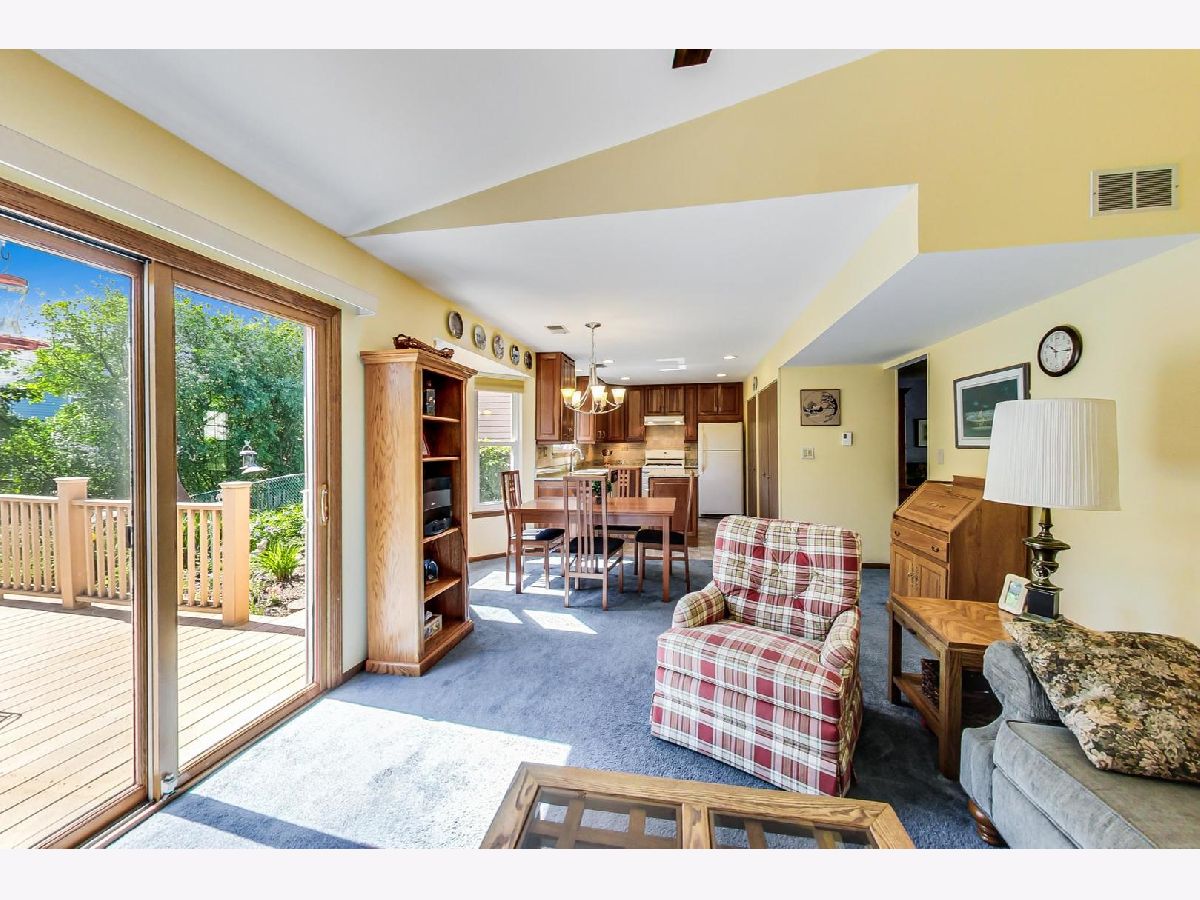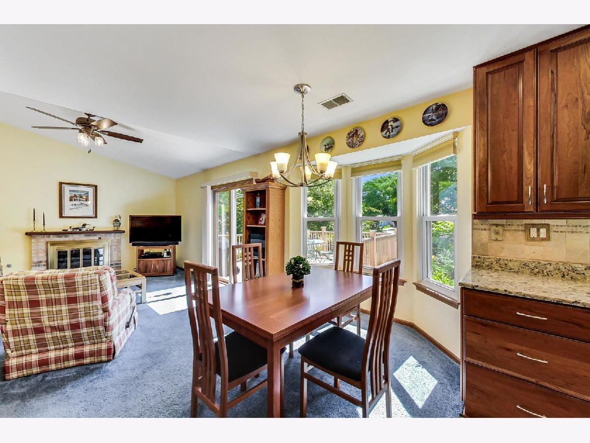 Highly Desirable Cambridge Chase: End Unit on a spacious Corner Lot! Vernon Hills School District. No Association Fees! Enjoy the sizable yard and gardens! 2 Bedrooms + a Loft ( currently used as an Home Office ), updated 1.1 Bathrooms, updated Kitchen with Cherry Cabinets and moveable custom center Island all with granite countertops. Adjacent Family Room features a vaulted ceiling and wood burning / gas Fireplace and Dining Area. Sliding glass doors lead to a huge composite Deck - no staining necessary! Living Room and Powder Room round out the 1st Level. Master Bedroom features Vaulted Ceiling, HUGE L-Shaped Walk-In Closet, adjoining updated 2nd floor Bath, 2nd Bedroom plus Loft / Home Office comprise the 2nd Level. Super brand Home Warranty. No Association Fees!