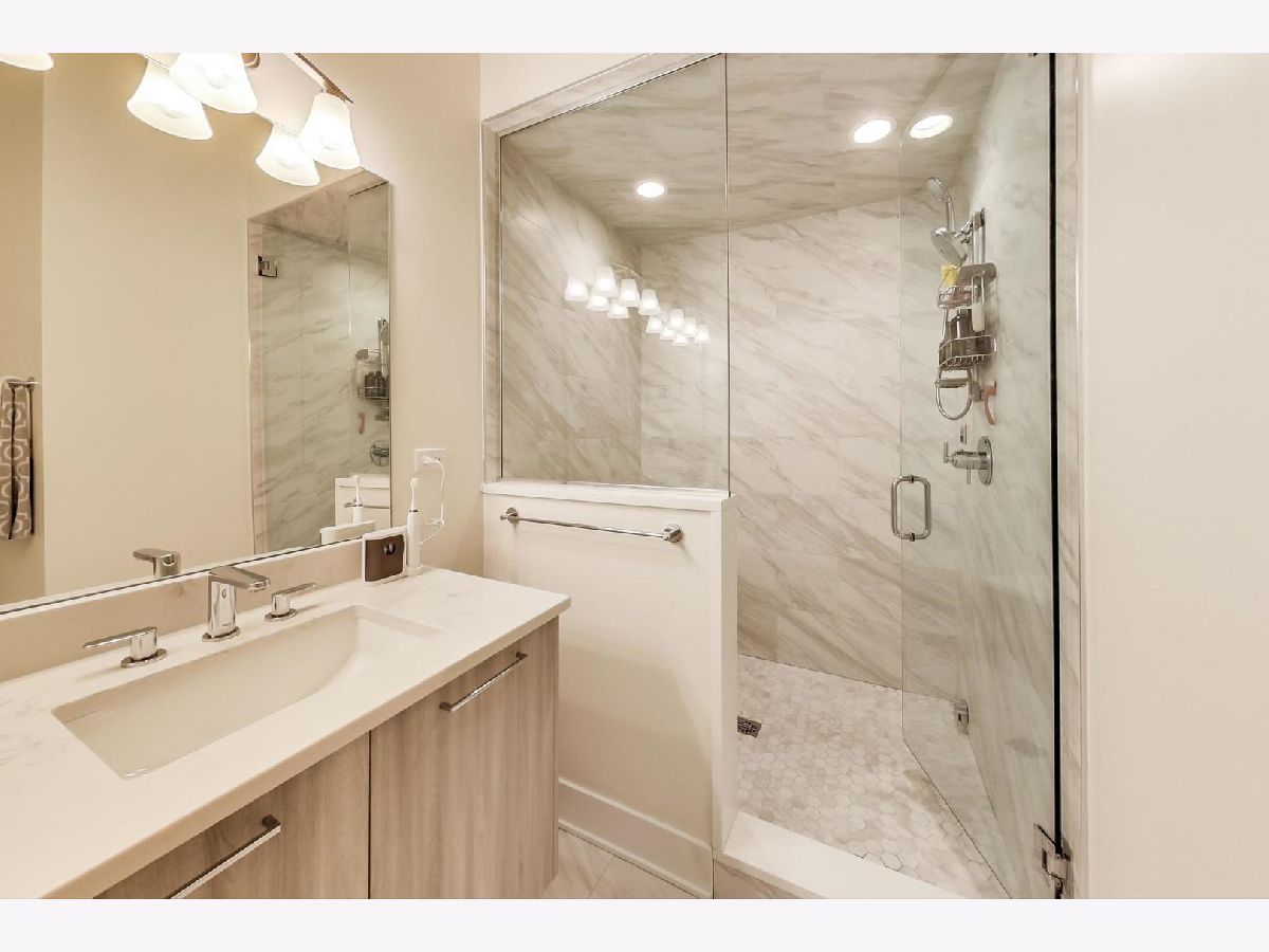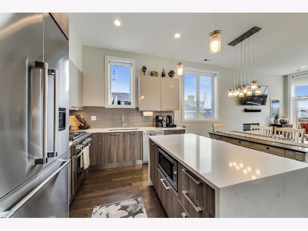 PENTHOUSE unit with huge private rooftop deck with amazing city views! 2018 brick & limestone building with Zecchinon Italian cabinetry in kitchen & baths, waterfall quartz counter tops, Thermador appliance package, white oak hardwood floors, fireplace, extensive soundproofing, main bath with heated floor & steam shower, PLUS front & rear outdoor spaces. Recent upgrades include custom closets and motorized blinds. Building just put in security system fully accessible from phone. Garage and storage unit included.