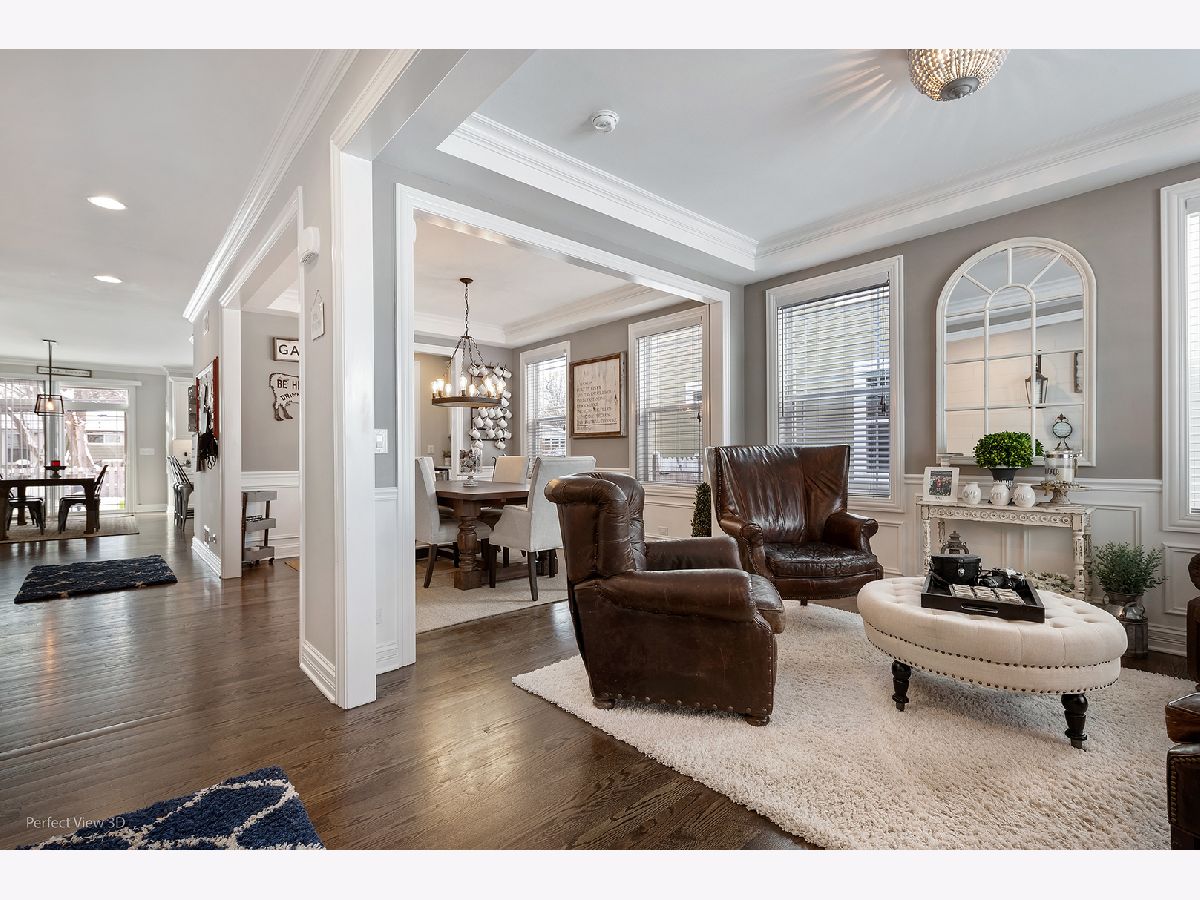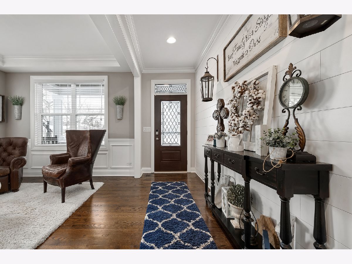 Like Brand New but with all the benefits of a staged home like window treatments, mature landscaping and oversized fenced backyard. Almost new custom home in one of Arlington Height's most desirable areas featuring open floorplan boasting 4 bedrooms with walk-in closets, 3 1/2 baths, 3-car garage, spacious gourmet island kitchen overlooking family room with fireplace, formal dining room with butler's pantry, private den, transitional finishes, detailed millwork throughout, can lighting, crown molding, and upgraded trim, hardware, cabinets and counters! 9' ceilings and hardwood floors on 1st floor! Gourmet kitchen, luxury baths, and other elegant touches like Shiplap in FR help beautify this special home! Deluxe master suite, princess suite, Jack + Jill bedrooms upstairs. Stone and Cement fiber siding for a virtually maintenance-free home! Full deep-pour basement with 3-piece bath rough-in allows for future expansion. Minutes to town, train, schools, restaurants, shopping, and parks. Energy efficient design features!
