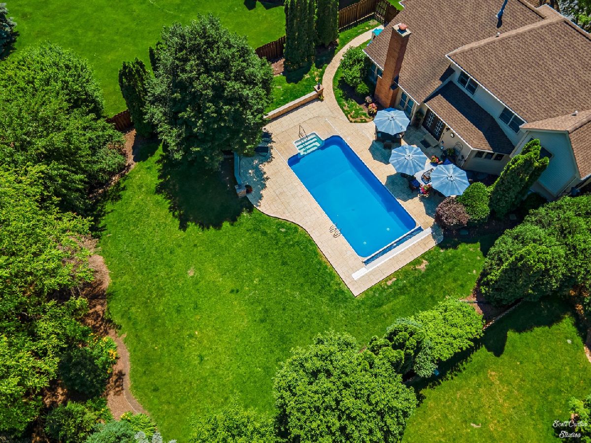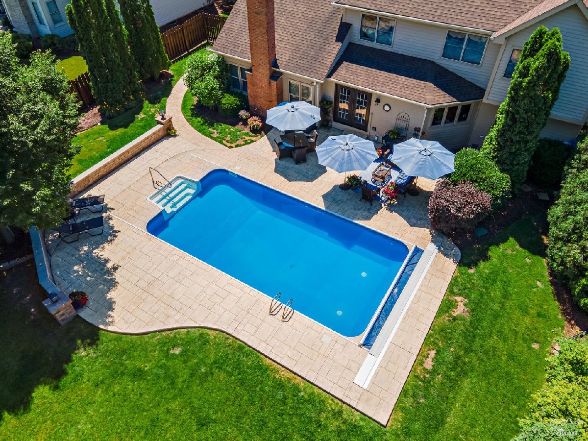 Fantastic Brick Front 4 Bedroom + Loft Home with backyard paradise in sought after Hunters Ridge. Relax and enjoy your Fenced Yard offering an In-ground Saltwater Heated Pool with year round retractable Auto cover and newer liner and Stamped Concrete Patio. Brick paver walkway and Professional Landscaping make for the perfect curb appeal. An Extra Deep 3 Car Attached Garage, Sprinkler System, leaf guards, and security system are just some of the great features you'll find here! The Dream Kitchen is highlighted by a Subzero freezer and fridge, Viking range hood, Massive Center Island with Butcher Block Counters, Custom Italian Tile, and hidden dishwasher. You'll love the Sound System throughout this home. Sunken family room with Bamboo Flooring, Fireplace with gas logs, and balcony from loft above. Wrought iron spindles, crown molding, and chair rail add decorative details to impress. First floor also offers a spacious Home Office. Escape to the Master Suite featuring Tray Ceiling, Hardwood Flooring, a Bay Window, Walk-in Closet, and Speakers. Master bath offers a double vanity, large shower, and built-in linen closet. Partially Finished Basement offers tons of extra space to expand! Easy access to Randall Rd and tons of shopping and dining options. Close to schools and parks.