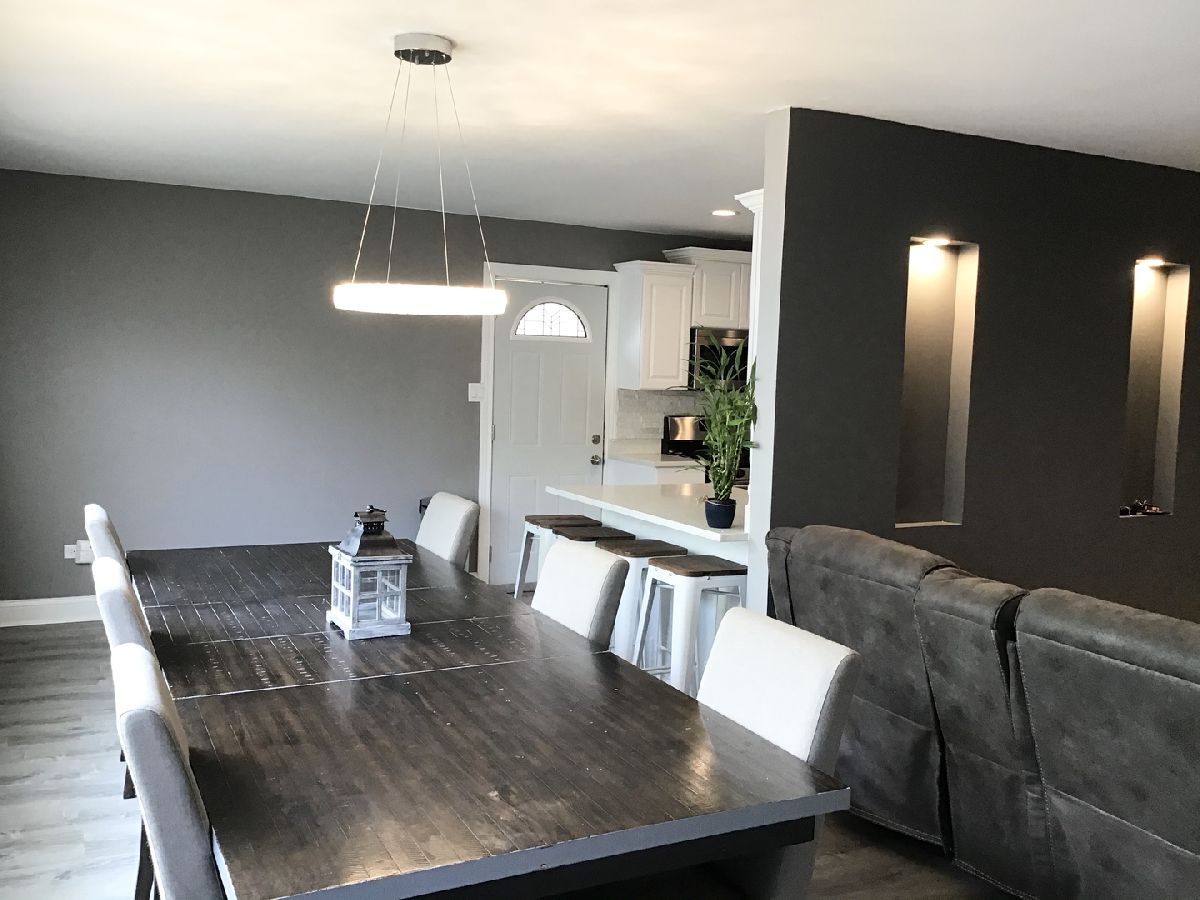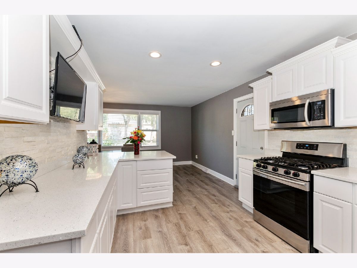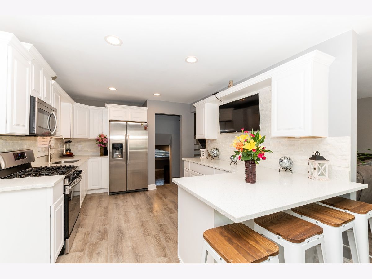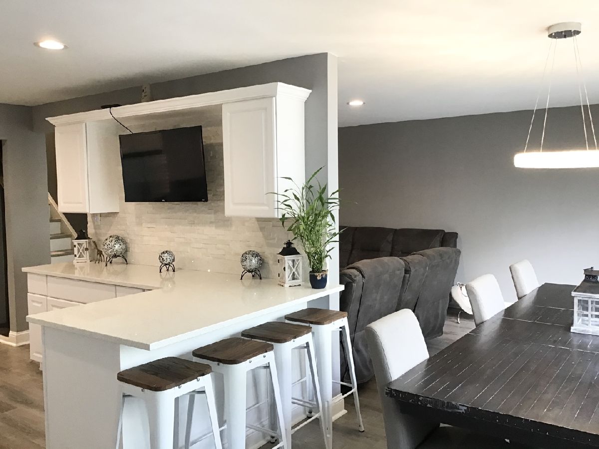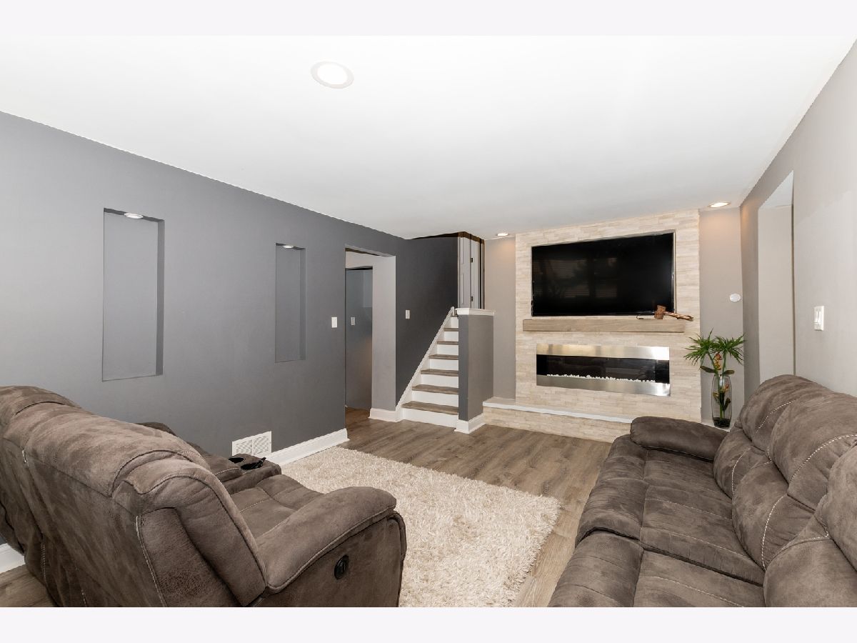 Tastefully decorated bi-level home awaits you!!! Meticulously kept. Attention to detail is what this proud owner has to offer the lucky, new buyer. Walk into the living room and feast your eyes on the gorgeous, built-in fireplace, nicely surrounded with a white brick-like wall. Modern flooring, and nice crystal-like lighting fixtures and recessed lighting. Stroll through the open floor plan, from the living to the dining room then the kitchen with a side door, white newer cabinets, granite countertops, breakfast bar, and stainless steel appliances. Walk a few steps up and you will find the nicely decorated bedrooms and updated full bathroom. The lower level features a lovely family room for entertaining family and/or friends. A closed in laundry room, and a second full bathroom. The exterior will continue to amaze you with the side landscape and back yard setting. There is absolutely nothing to do, but pack your bags, move in and enjoy this awesome home!