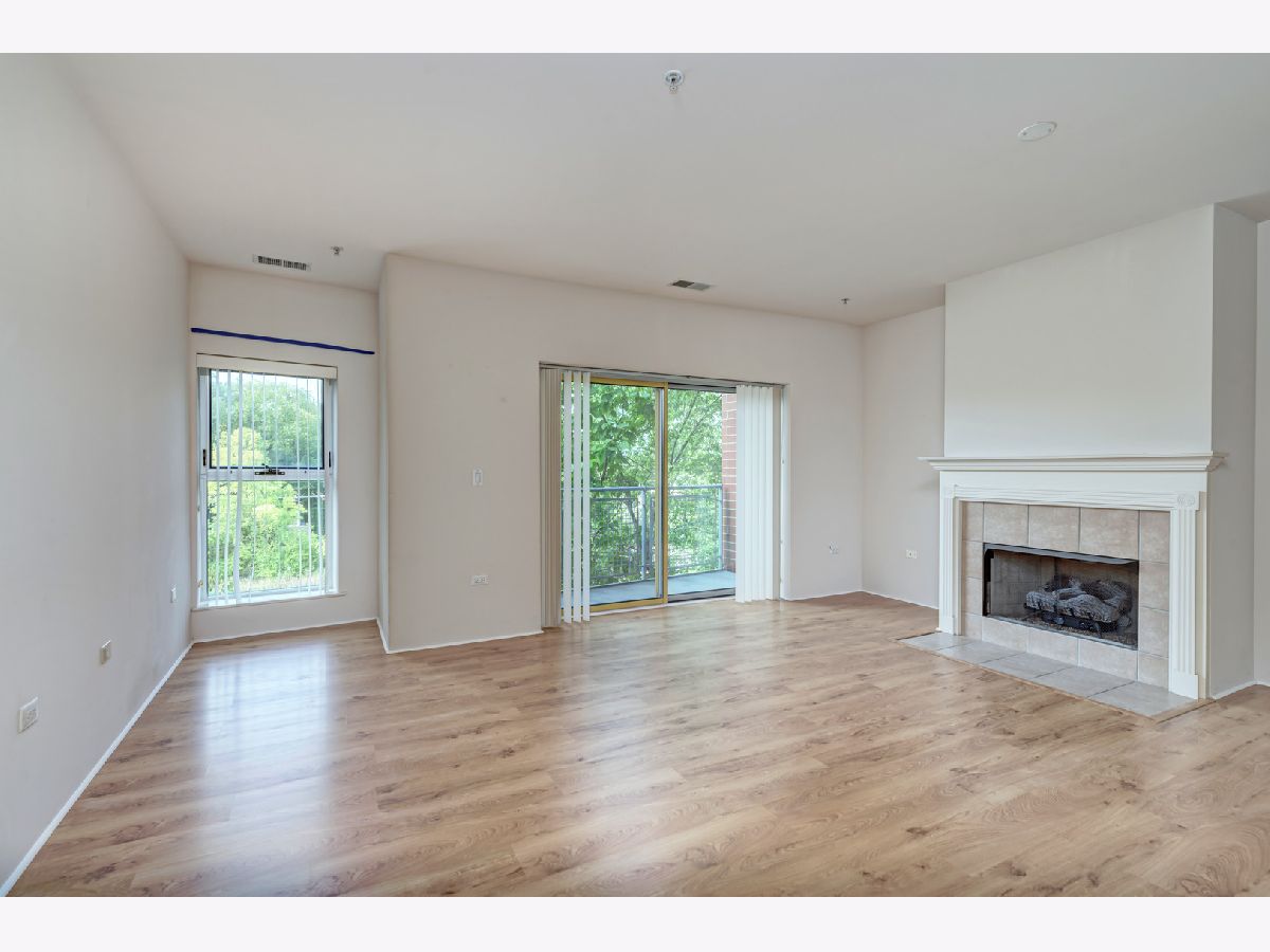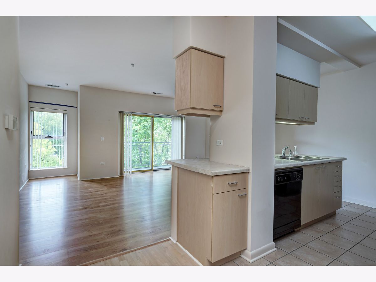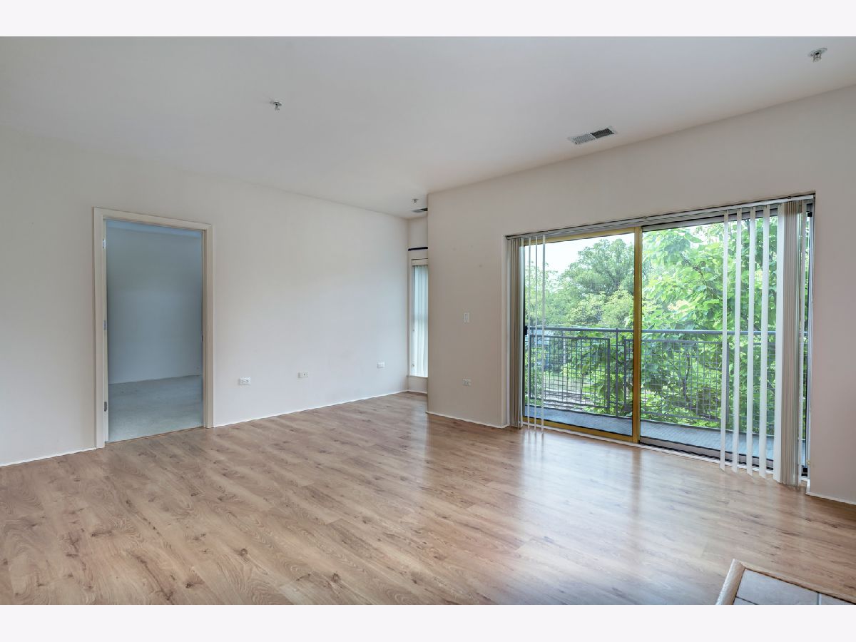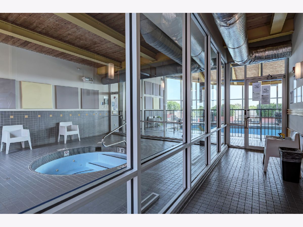 Great location with access to the Metra/CTA train and shopping. Trader Joe's right across the street. Pet friendly building, cats and dogs allowed. The building has elevators, exercise room, storage, party room, sun deck, inside pool, security door locks and a bike room with bike trails in the area. This unit comes with a deeded parking space. The building was built in the early 2000's. Vacant and move-in ready! Public parking also located right next door to the building. Owner has just installed hardwood laminate flooring. MUST SEE!