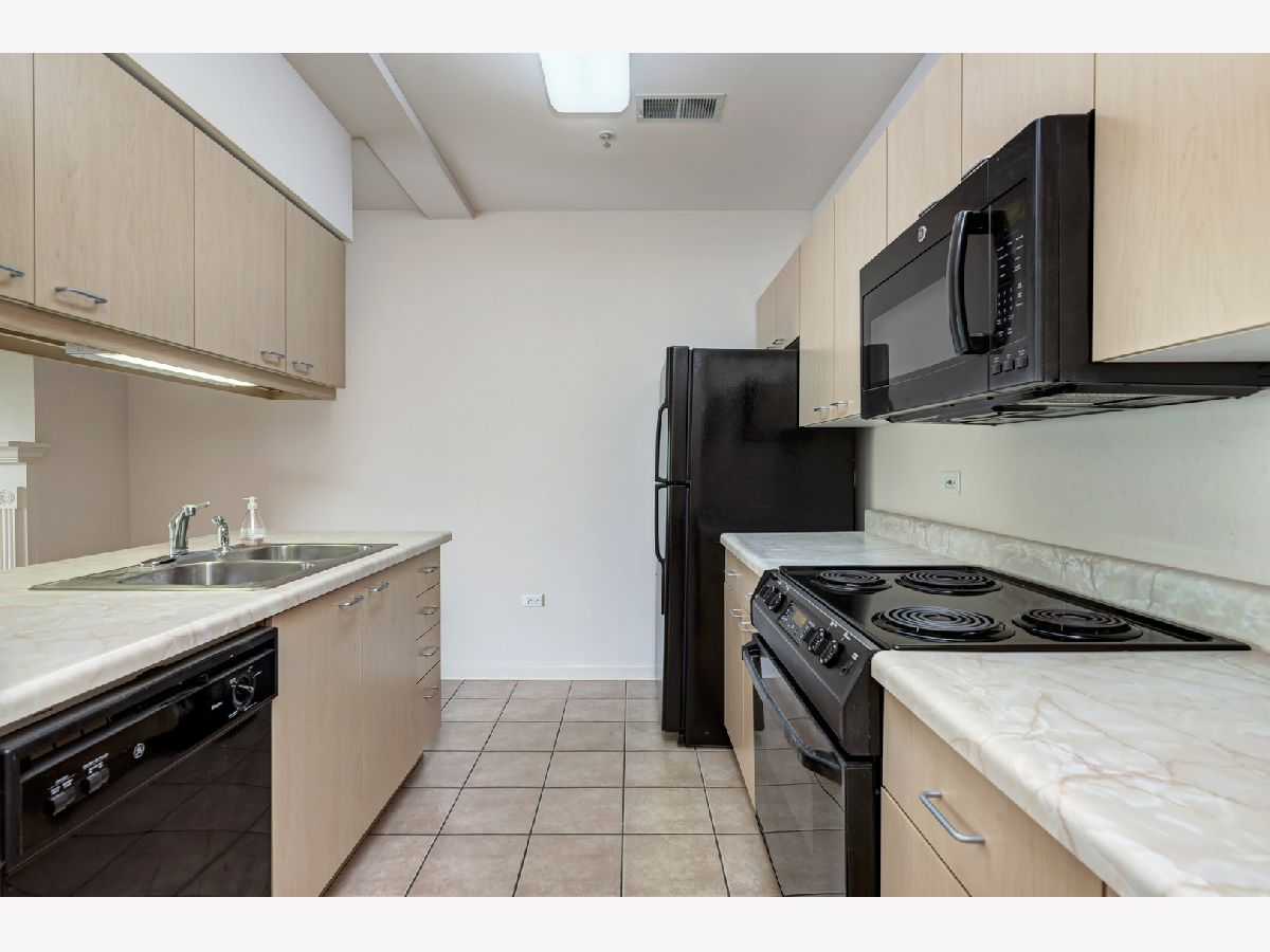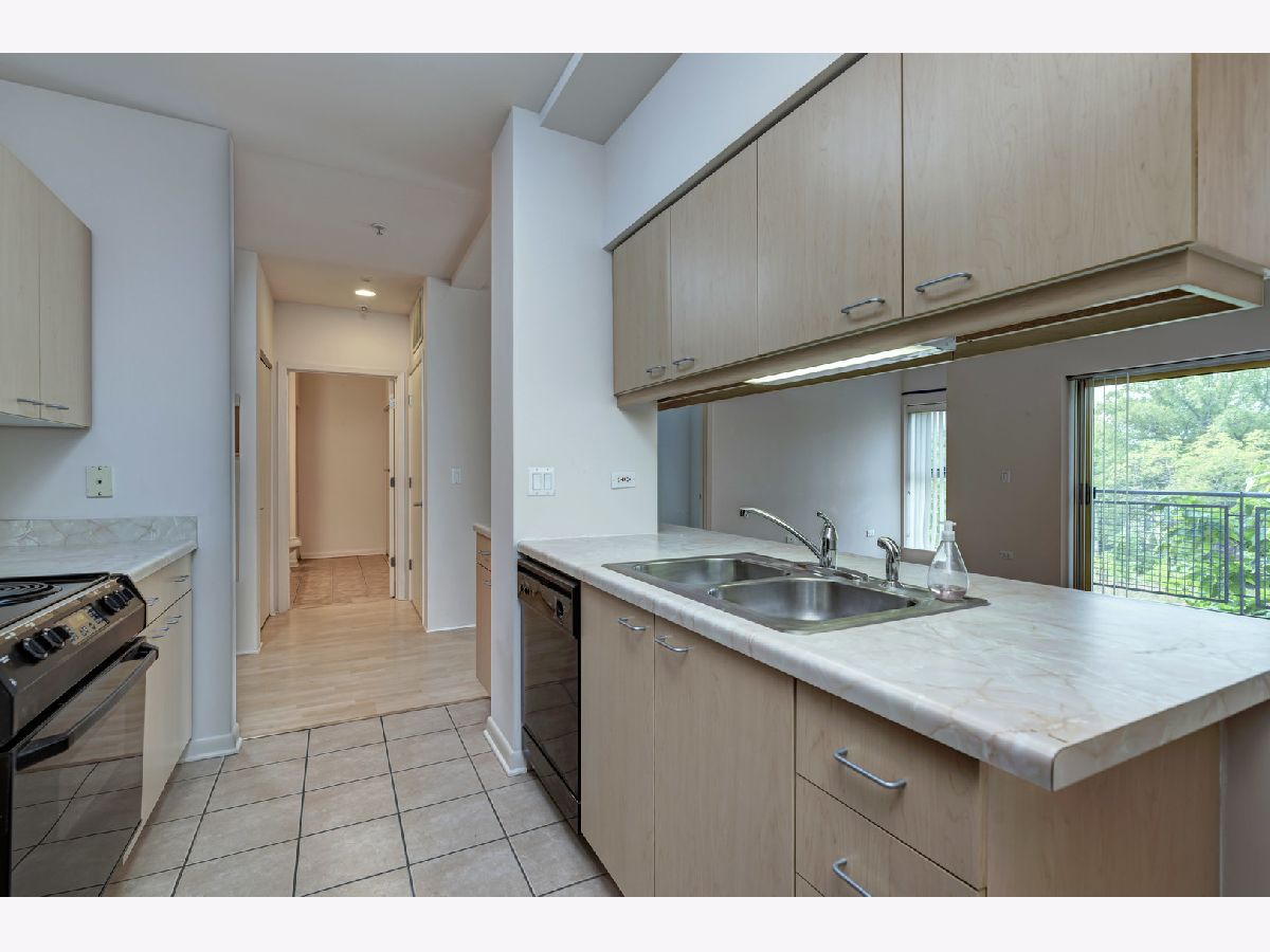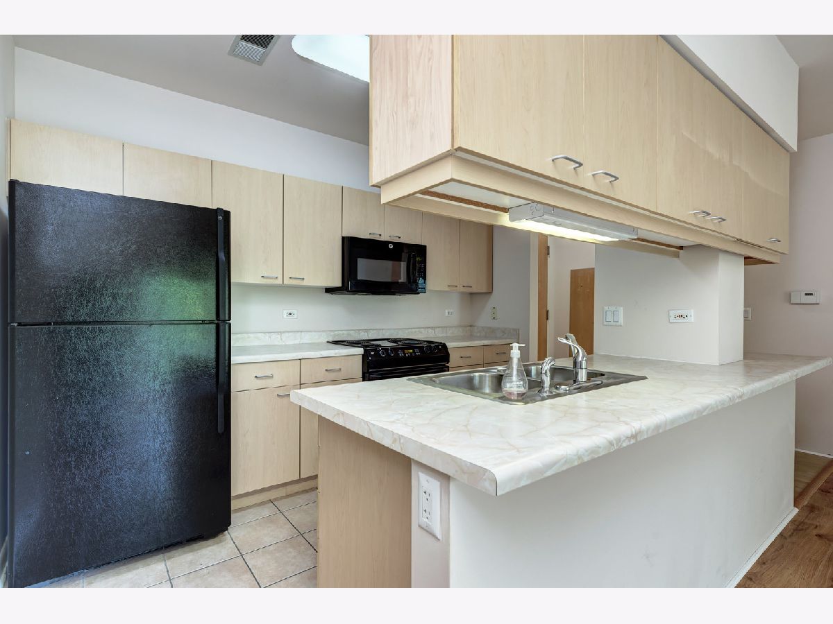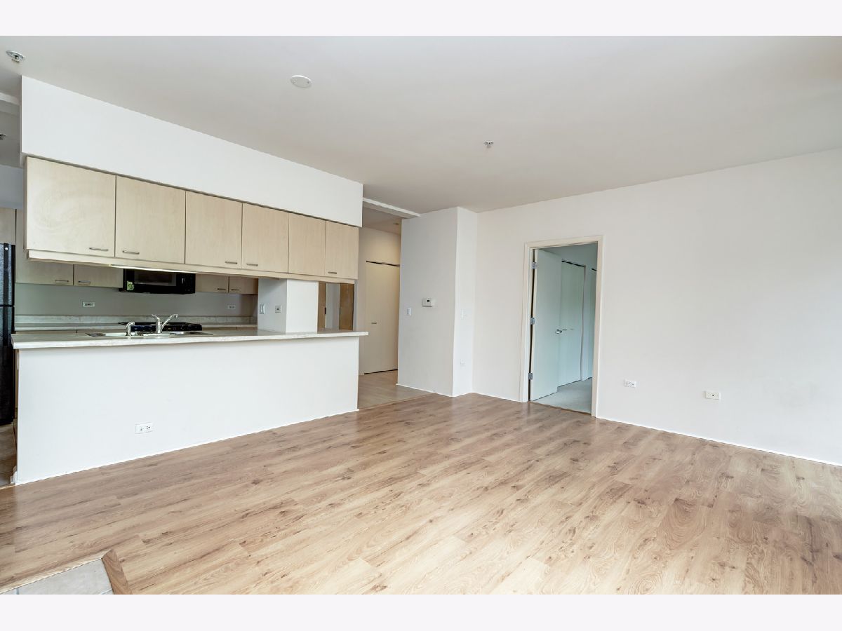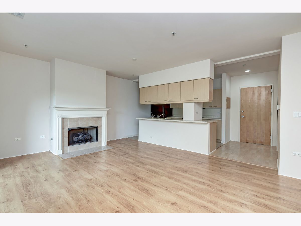 Great location with access to the Metra/CTA train and shopping. Trader Joe's right across the street. Pet friendly building, cats and dogs allowed. The building has elevators, exercise room, storage, party room, sun deck, inside pool, security door locks and a bike room with bike trails in the area. This unit comes with a deeded parking space. The building was built in the early 2000's. Vacant and move-in ready! Public parking also located right next door to the building. Owner has just installed hardwood laminate flooring. MUST SEE!