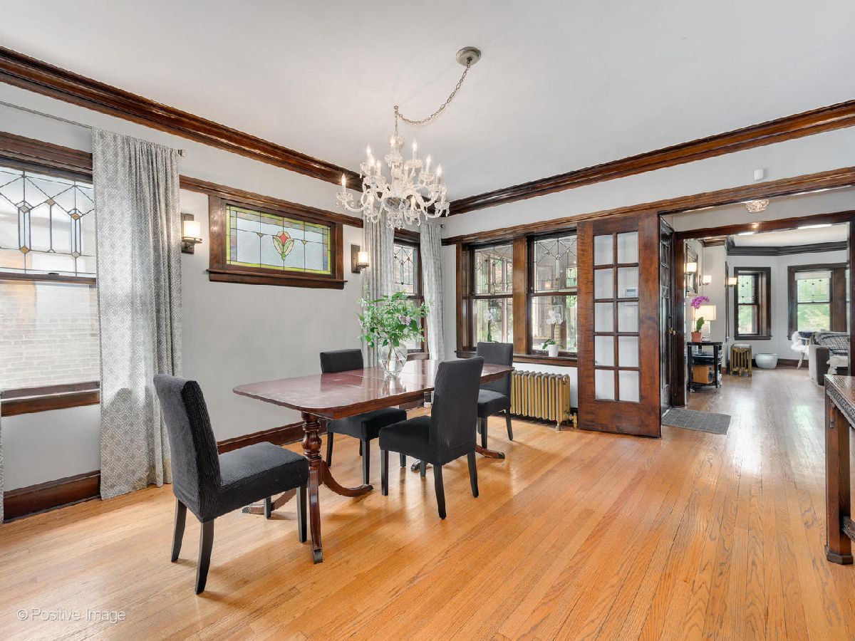 This gorgeous brick bungalow on a cul de sac street in North Oak Park is loaded with character and exquisite vintage details. Beautiful leaded stained glass windows, elegant dark wood trim & millwork, and hardwood floors are just some of the lovely details you will find throughout the entire home. The welcoming enclosed front porch with screened-in, stained glass windows makes a lovely area to greet your guests. Walk in to find a foyer with large coat closet, an oversized living area with decorative fireplace, and French doors leading you into the spacious dining room, where you will find even more detailed moulding, stained glass, and thoughtful lighting. A large, updated kitchen features granite counters + island, a double sink, and stainless steel appliances including Bosch dishwasher and Jenn-Air stove. There is more than enough counter and storage space, as well as a full walk-in pantry and built-in spice closet. Three bedrooms and a full bath with whirlpool tub, rain showerhead & body sprays are on the main floor. The back bedroom is spacious enough to work as a guest room, office, playroom, or could also be opened up to make a lovely family room off the kitchen. Upstairs you will find two more bedrooms, including the primary bedroom, large enough to accommodate multiple sitting areas and closets. A huge attic storage space could be converted into a full bathroom, walk-in closet, and/or primary ensuite. Full walkout basement with good ceiling height currently holds a full sized laundry area, 6th bedroom, second full bath, and massive rec room. Gorgeous landscaping outside has turned every nook and cranny of the outdoor space into quaint seating areas and peaceful oases, as well as multiple spots for outdoor entertainment and play. Two car garage plus parking pad for two more cars. Located on a wonderfully friendly, cul de sac'd block, within walking distance to Taylor Park and Hatch Elementary. This home is completely move-in ready while also providing opportunity for future expansion and ways to add your own touch, not to be missed!!!