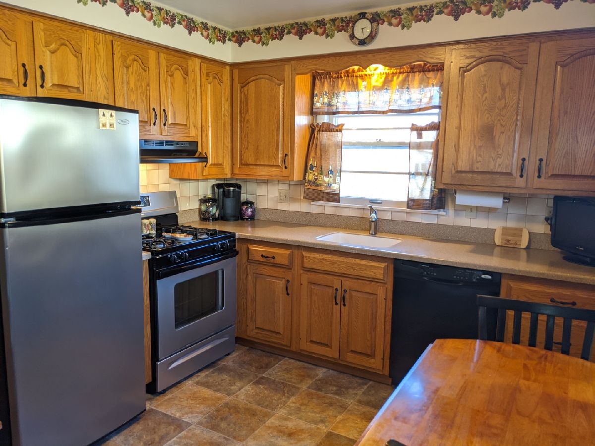 Pride of over 30 years of ownership shows plus Home Warranty included. Lots of light and so much more space than it appears! Conveniently located close to so many parks and Little Cubs Field. Spacious living room with large picture window and hardwood under carpeted floors. Updated bathroom with tile shower and glass block window. Kitchen with stainless steel appliances included. Walk up floored attic would be easy to finish 27' x 18' or more. LL has 26' x 19' finished area currently family room and game/rec area. Laundry room with 8' counter, washer and dryer included, walk out door and exposed daylight window. Large storage room with shelving and exposed daylight window. Exterior is maintenance free vinyl siding. Basement dewatering system installed in 2005 w new sump pump. Bryant HiEff gas forced air furnace and central air. Lots of extras here like pocket doors, built in storage and original hardwood floors. Affordable utilities avg $171/mth (gas, elect, water, sewer & trash).