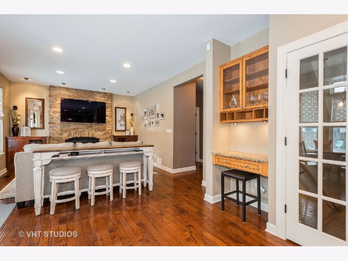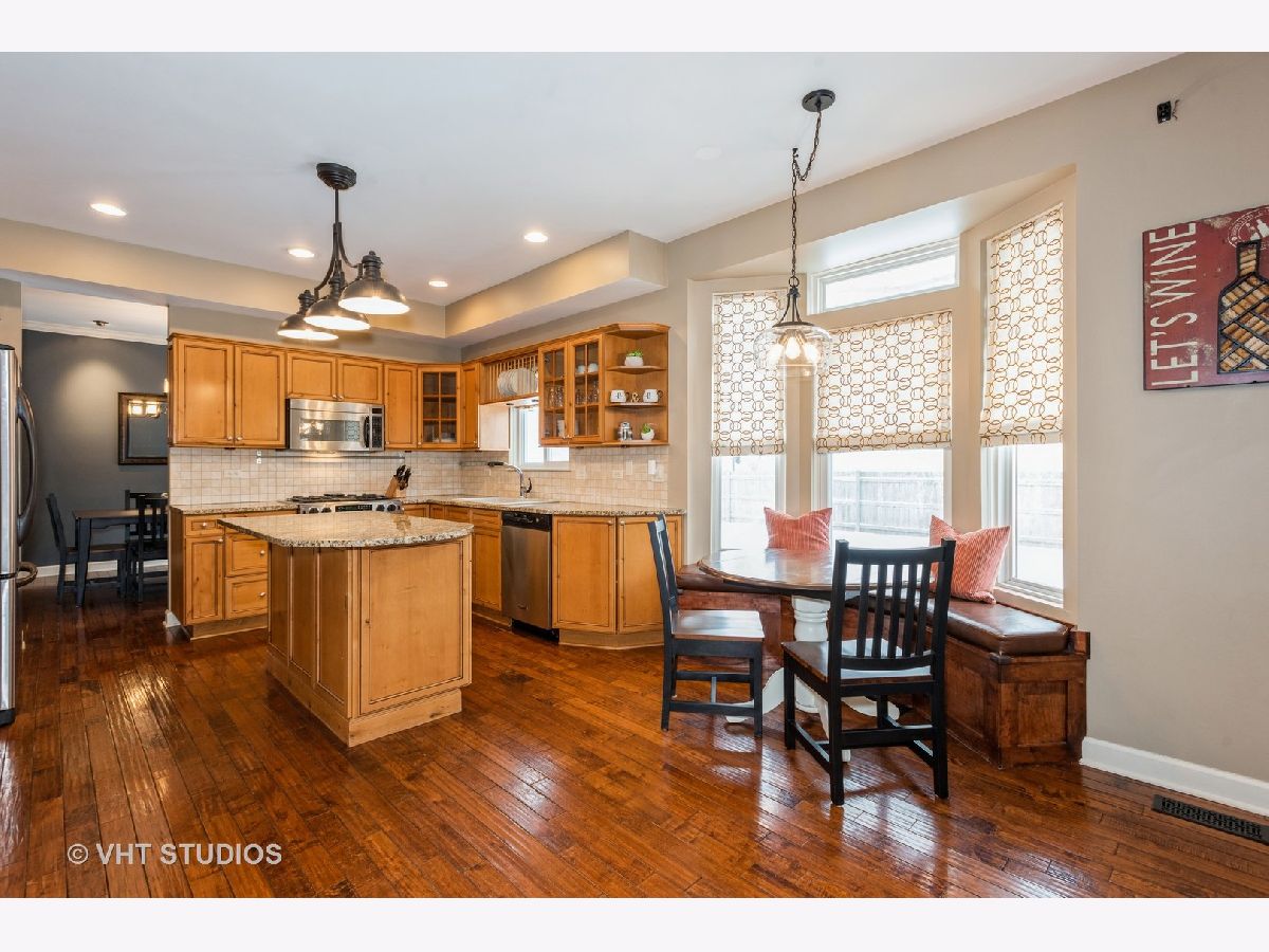 Recently upgraded & well maintained. New siding (2015) gives home great curb appeal. First floor highlighted by 9' ceilings, beautiful hardwood floors & recessed/accent lighting throughout. Beautifully updated kitchen center island, custom cabinetry w/ several decorative glass doors, granite countertops, ceramic backsplash, quality stainless steel appliances, pantry style section of top-to-bottom cabinets w/ pullout shelves, under & over cabinet lighting, cute planning desk & built-in seating bench in bayed eating area. Kitchen and eating area opens to the family rm cozy stone fireplace and built-in cabinets. Beautifully manicured fenced backyard w/ paver brick patio. Upstairs the master bedroom has full bath w/ dual sinks, separate shower & soaking tub plus large walk in closet. 3 more generous sized bedroom. Main floor laundry & powder rms, Finished basement area with Rec room and exercise area. Call to show.