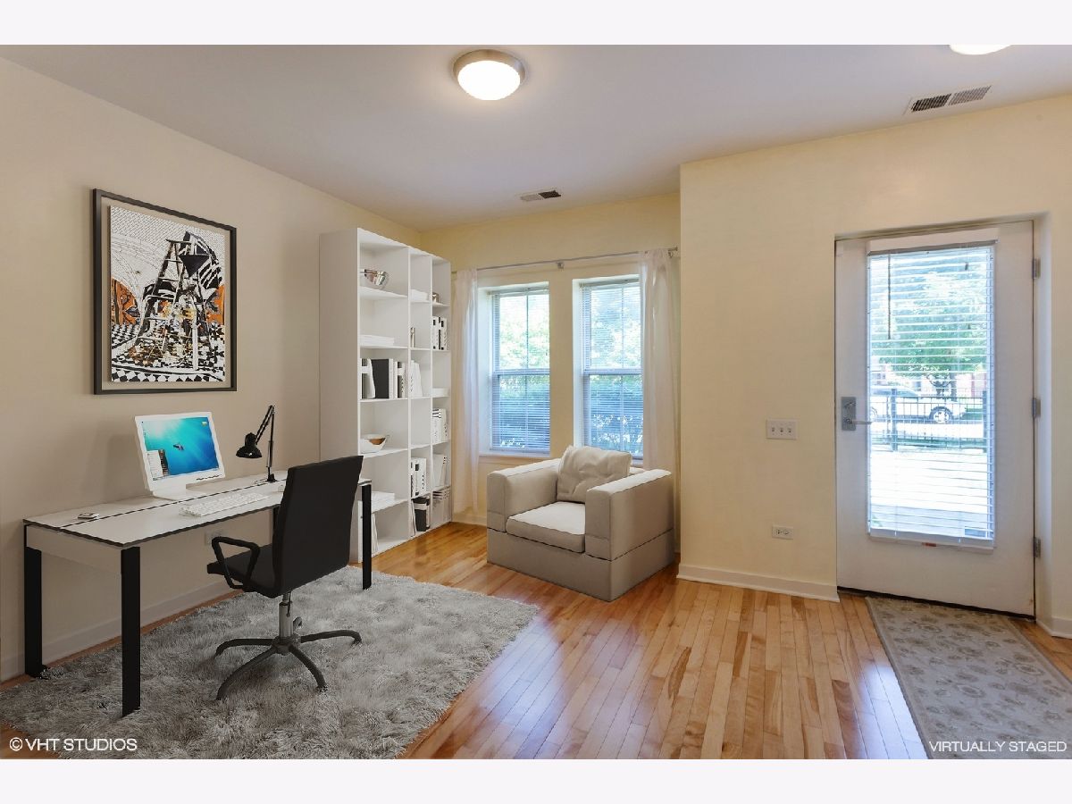 Welcome home to this beautifully appointed townhome in an unbeatable location in University Village / Little Italy! This 2 Bed + (office/den) / 2.5 bath home lives like a single-family with 3 floors of wide-open living space, and a privately dedicated roof deck with amazing views of the Chicago skyline! It doesn't get much better than this. The first floor office/den and half bath, can also be converted into a 3rd bedroom. The second floor has an open concept kitchen leading out to a spacious living room perfect for entertaining, with high ceilings and great light. And and additional balcony just off the kitchen is great for every-day grilling and a bit of fresh air! The kitchen boast maple cabinets, granite counter tops, and stainless steel appliances. Hardwood floors throughout the first two levels and updated carpet in bedrooms on the third level. Huge 1.5 car garage has plenty of additional storage space, and you'll also have an additional tandem space just outside the garage for a 2nd car or that special guest! Location, location, location, with just a quick walk to everything Taylor St has to offer, countless restaurants, the medical district, downtown, 90/94 and 290, the blue line and so much more!