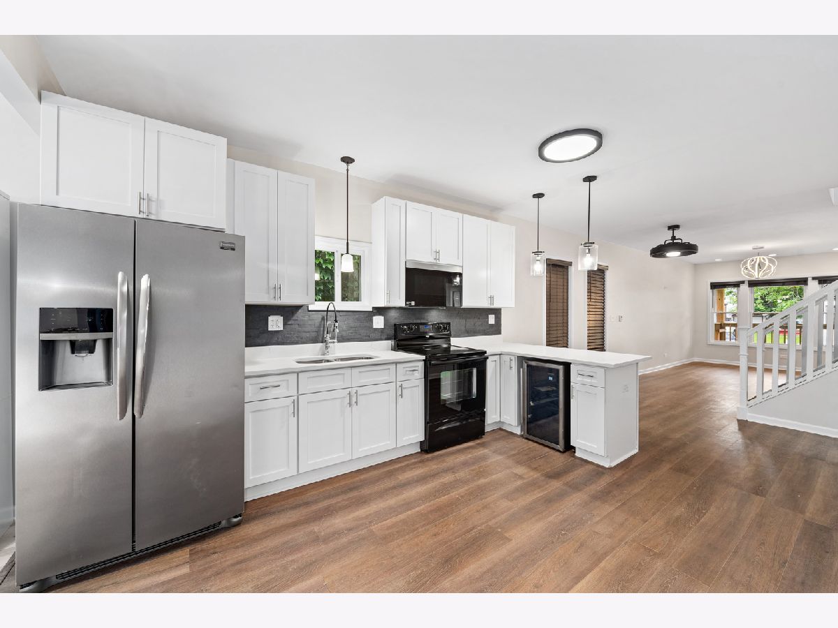 Newly renovated two-story single-family home features 4-bedrooms and 2-full bathrooms. The main level features an open floor plan with a combined living and dining area, creating a spacious and welcoming atmosphere. The brand-new kitchen has top-of-the-line features, including a quartz breakfast bar, custom cabinetry, stainless steel appliances, a wine fridge, backsplash, and an eat-in kitchen area perfect for a breakfast nook. The main level also has two bedrooms and a full bathroom. The second level has two additional bedrooms and another full bathroom. The finished basement features a laundry area with a brand-new washer/dryer and a large open space for a family room/den with carpet. The property also boasts a grassy backyard with a brand-new fence for privacy, making it perfect for outdoor gatherings and activities. Additionally, the property comes equipped with a brand-new roof, all new windows, all new flooring throughout, a new furnace and air conditioner, new electric, new plumbing, new light fixtures, new washer/dryer, and all new kitchen appliances. Overall, this fully remodeled two-story single-family home is a must-see for buyers looking for a move-in ready property with contemporary features and ample space. The seller will provide a one-home warranty from American Home Shield.