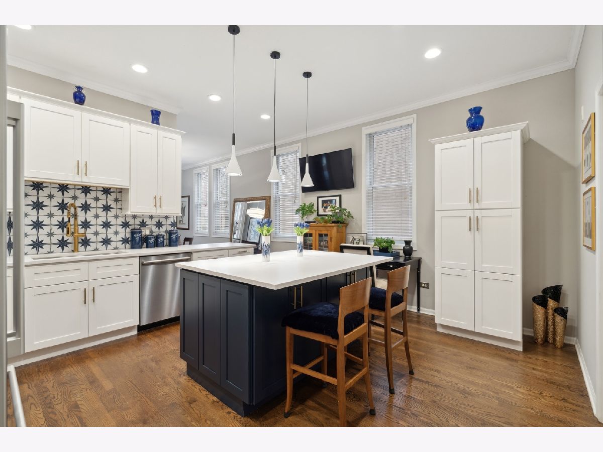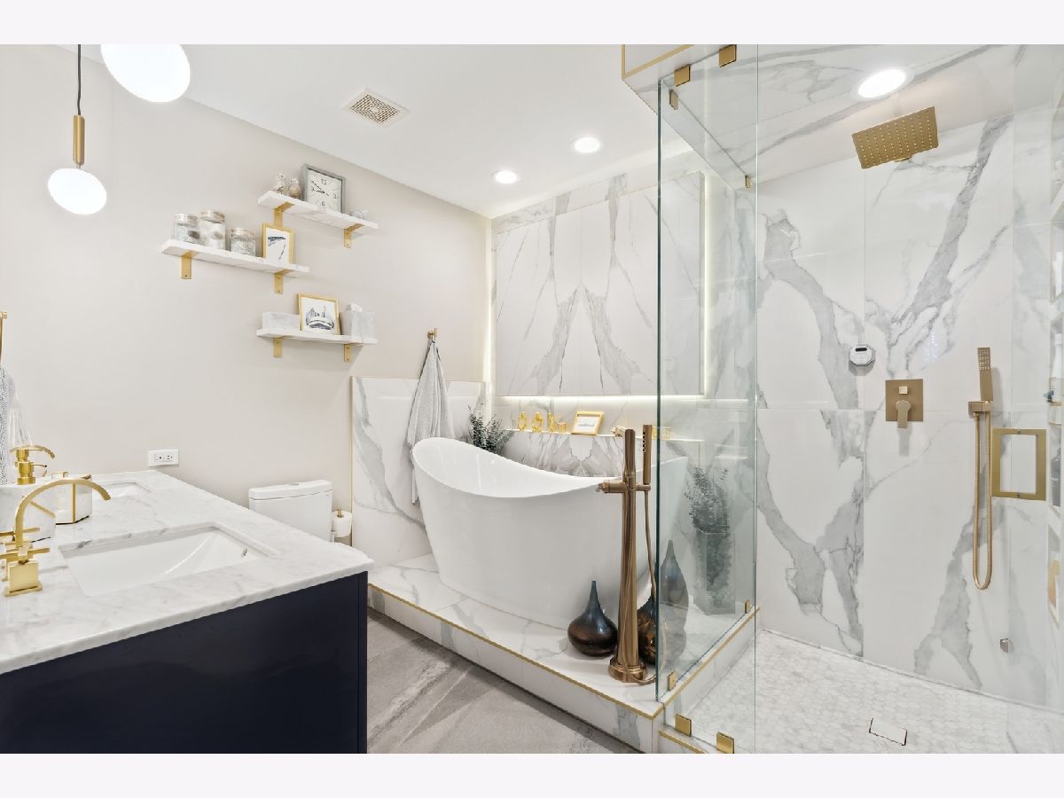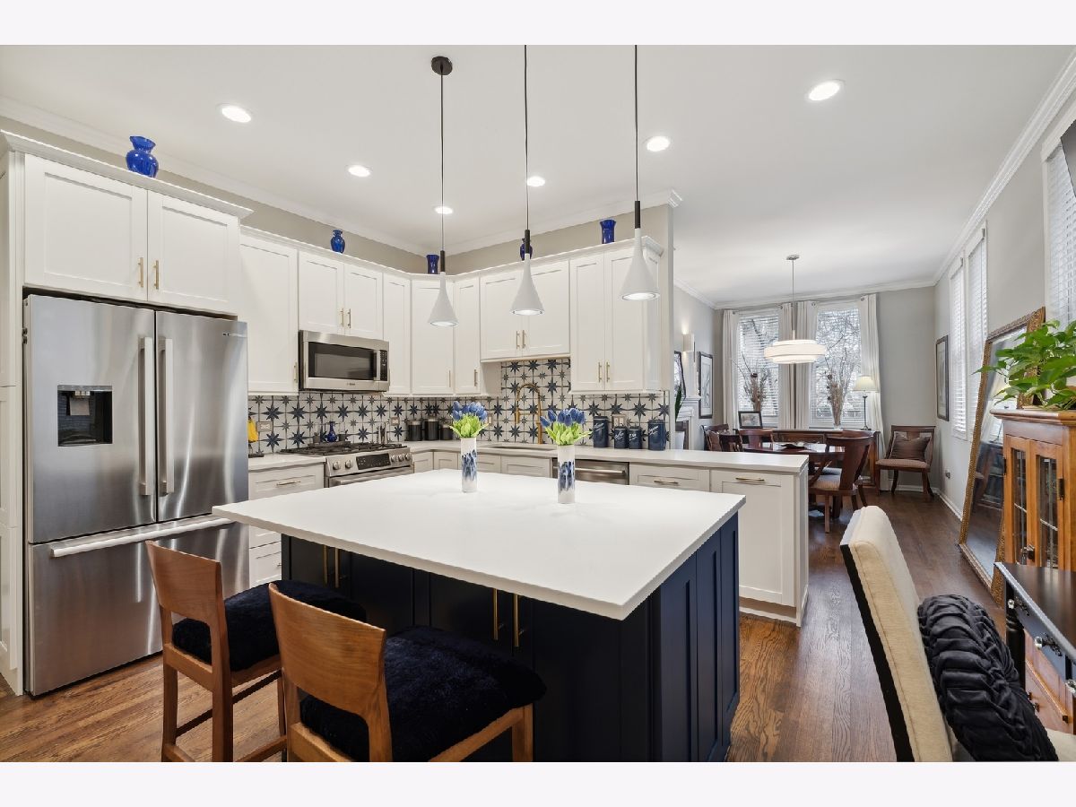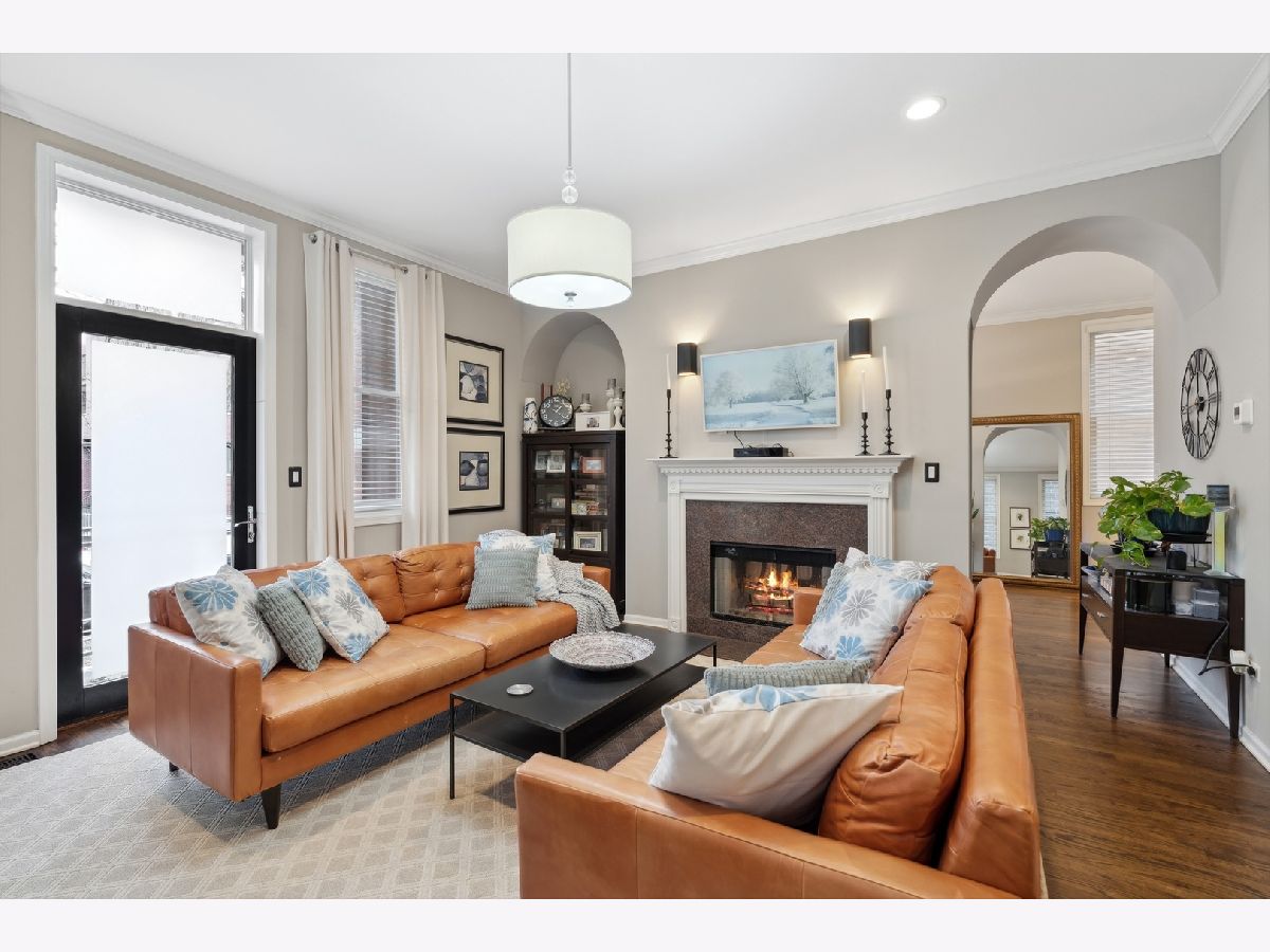Extra-wide Andersonville 3-bedroom, 2.1-bathroom duplex down condo located in an intimate 4-unit building. This unit boasts high 10ft ceilings, elegant archways, and large windows on three sides that allow for unparalleled natural light on both levels. The condo has a single-family home feel to it, with a spacious and completely renovated kitchen featuring new stainless steel appliances, new cabinets, backsplash and countertops, and an oversized island. There is also a separate formal dining room and living room connected by a two-sided fireplace. Hardwood floors throughout the main level add to the luxurious feel of the space. The brand new primary bath features a separate shower with steam, a large soaking tub, and a double vanity. The second bath and half bath have also undergone full renovations as has the separate laundry room with full-size front-loading machines plus a slop sink. All 3 bedrooms are located on the same level. The unit also features two private outdoor areas and it comes with garage parking included. Located within walking distance to the lake, train, Carmen play lot, and the best of Andersonville's shops and restaurants, this unit is the perfect place to call home.