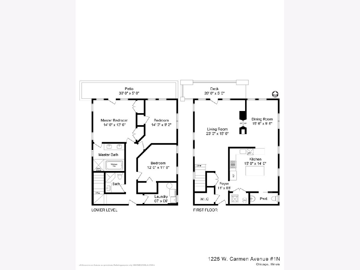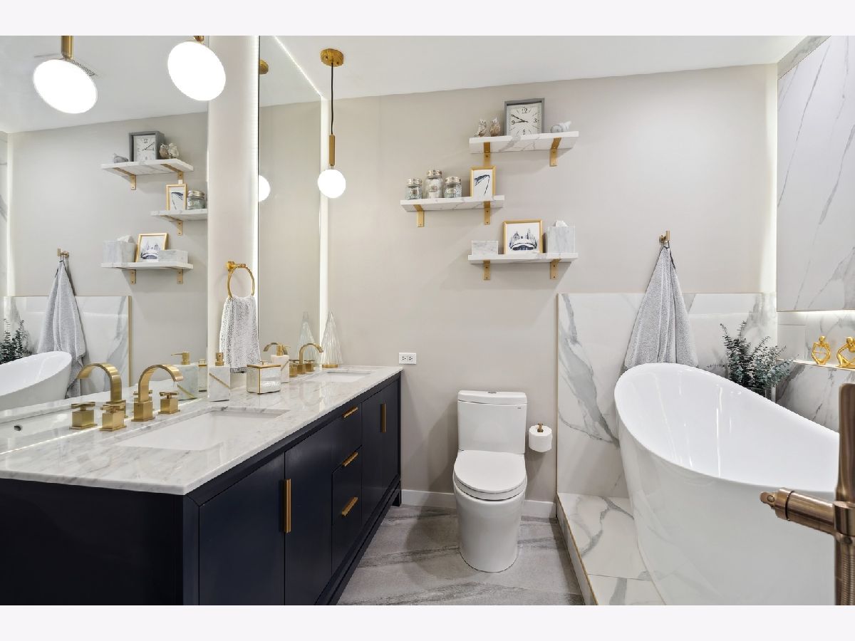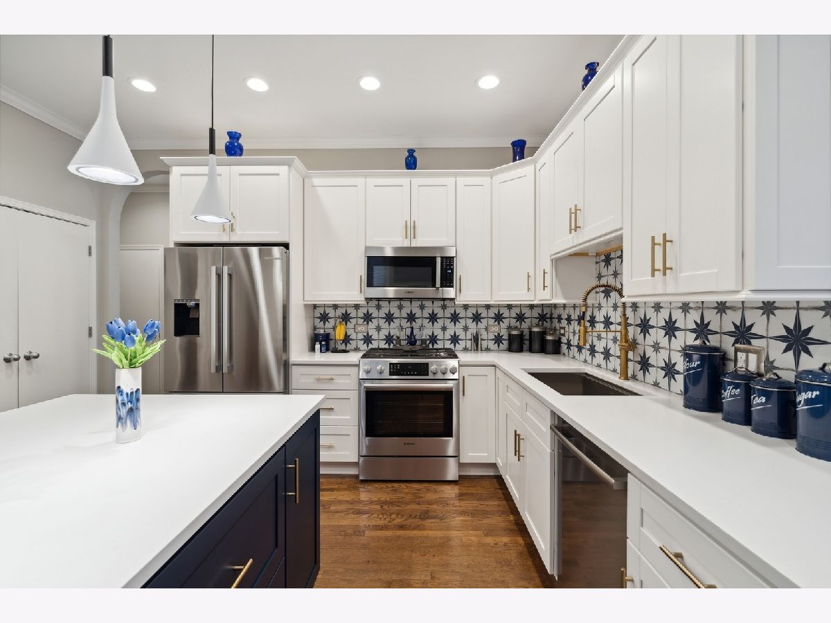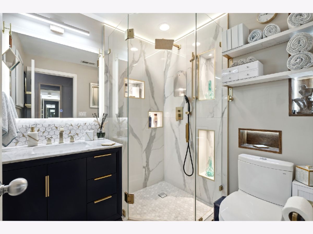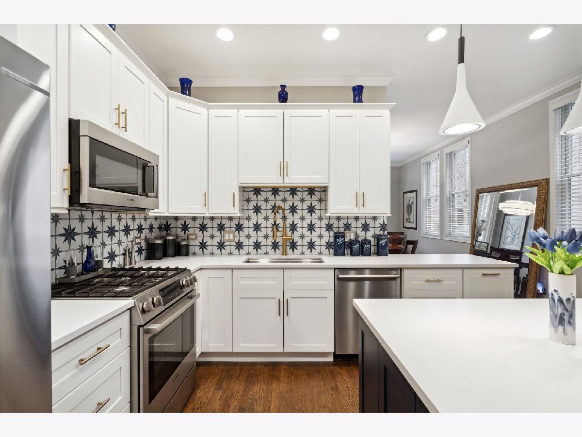 Extra-wide Andersonville 3-bedroom, 2.1-bathroom duplex down condo located in an intimate 4-unit building. This unit boasts high 10ft ceilings, elegant archways, and large windows on three sides that allow for unparalleled natural light on both levels. The condo has a single-family home feel to it, with a spacious and completely renovated kitchen featuring new stainless steel appliances, new cabinets, backsplash and countertops, and an oversized island. There is also a separate formal dining room and living room connected by a two-sided fireplace. Hardwood floors throughout the main level add to the luxurious feel of the space. The brand new primary bath features a separate shower with steam, a large soaking tub, and a double vanity. The second bath and half bath have also undergone full renovations as has the separate laundry room with full-size front-loading machines plus a slop sink. All 3 bedrooms are located on the same level. The unit also features two private outdoor areas and it comes with garage parking included. Located within walking distance to the lake, train, Carmen play lot, and the best of Andersonville's shops and restaurants, this unit is the perfect place to call home.