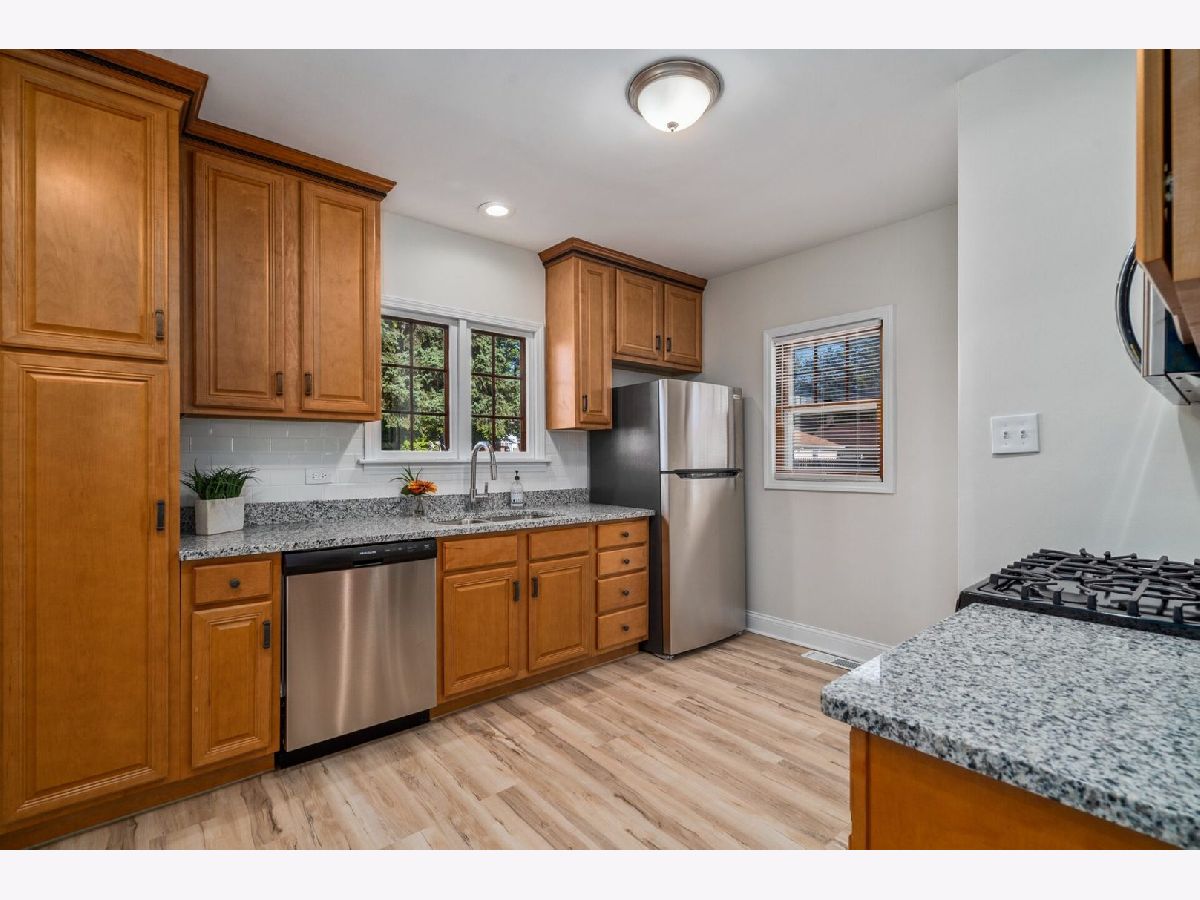 Welcome to this remodeled cape cod located in the heart of Joliet! 3 bedrooms plus 1 bathroom await you in this lovely home! Step into the spacious living room complete with beautifully refinished hardwood flooring. The dining area is located right next to the kitchen making for easy entertaining access! Enjoy prepping and cooking in updated kitchen with an abundance of 42" maple cabinetry with crown molding, gorgeous granite countertops with accenting subway tile backsplash, and NEW stainless steel appliance package. Main level features 2 generously sized bedrooms with ample closet space and hardwood floors, and a fully updated bathroom. Descend to the finished basement that features a cozy family room, 3rd bedroom, laundry room, and plenty of storage!! The space continues outside in the expansive backyard perfect to hangout in the summer. 2 car detached garage awaits you and offers additional storage and built-in workbench. Updates include freshly painted throughout, refinished hardwood flooring, New hot water heater, New furnace, updated kitchen, New stainless appliances. Situated on a quiet street, just a few blocks from all amenities, restaurants, and schools. This home has it all! All you need to do is move right in!