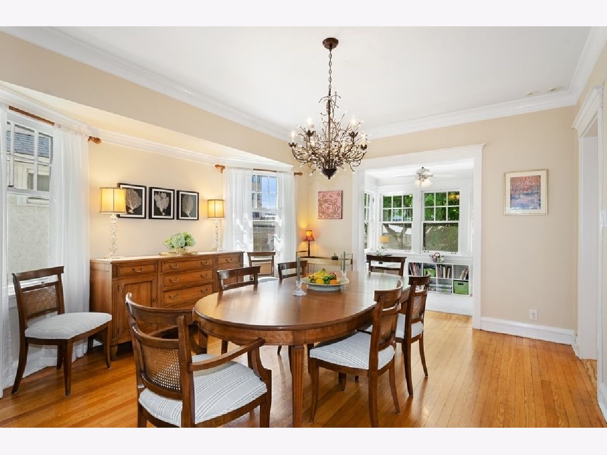Welcome to Edgewater Glen/Peirce district and this amazing updated home on an oversized lot. Upon entry a beautiful vestibule opens to an enormous Living room centered on a fireplace and mantle. A front sunroom overlooks the street. A large formal dining room opens to a rear sunroom, perfect for office space. The remodeled kitchen is huge and gets great light from the southern exposure. Renovated powder room off the kitchen. Upstairs a large primary suite atretches across the front with two more large bedrooms to the rear. The lower level has a finshed laundry area and a rec room plus half bath. The backyard is gorgeous with a large patio, mature magnolia tree and two car garage.
