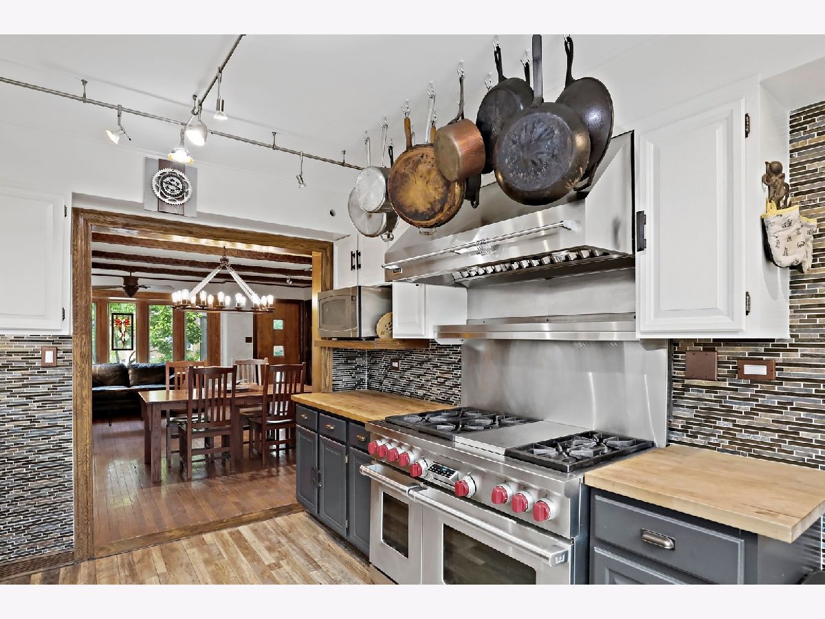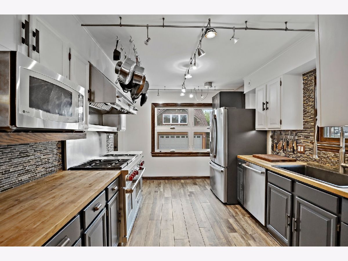 Well loved three bedroom, two full bath home in the 26th Street Woods section of LaGrange Park. Located in Riverside Brookfield High School district 208. Short distance to Brook Park Elementary School district 95. Yena Park is across the street from school! Bike trail is one block away. World Famous Brookfield Zoo is straight west down 31st Street. Updated kitchen is a chef's dream equipped with a SS Wolf commercial stove with warming shelf and Viking commercial vent to the outside. New SS refrigerator. Butcher block counters. Plank vinyl flooring. High end faucet. The rest of the main level has hardwood flooring. Updated ceramic bath has a huge soaking tub and separate shower with Grohe faucets and showerhead. Full basement with Media area, retro wet bar, laundry room and office with adjacent full updated ceramic bath. Radiant heat (ie. under the floors), central air and whole house fan. Two car garage with RARE second story is currently used as a game room and work out room. The space has a heat and A/C unit. Needs your finishing touches to make it your own! Large yard with patio and fire pit area. Must see!