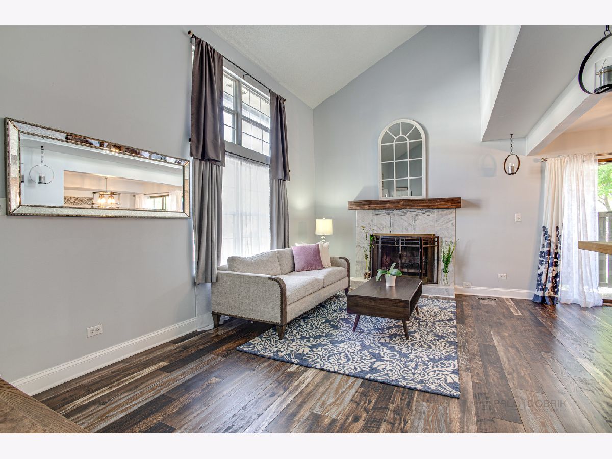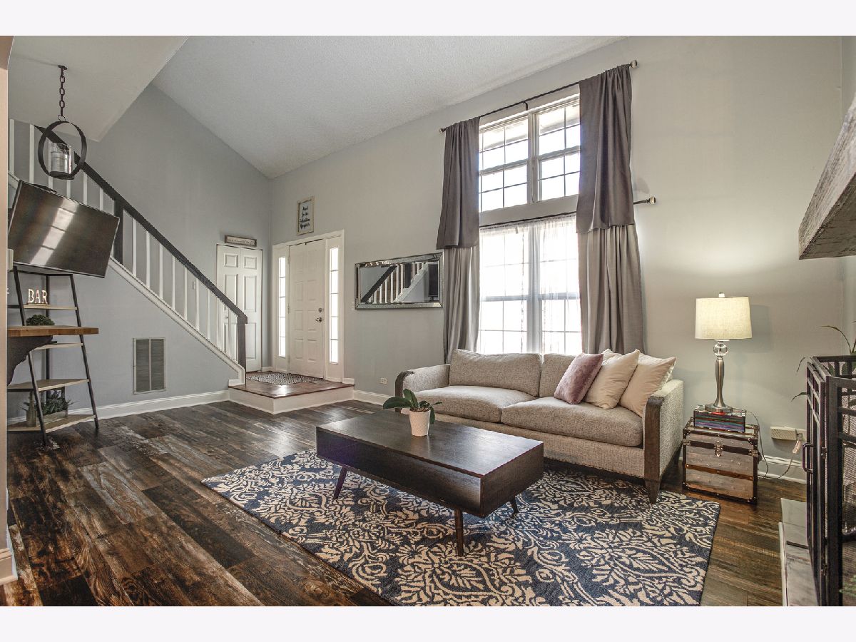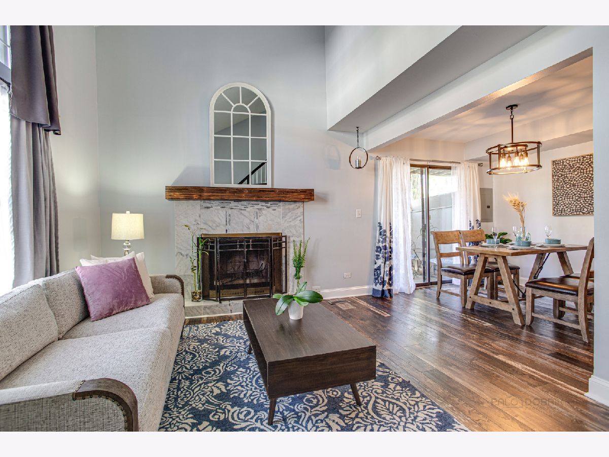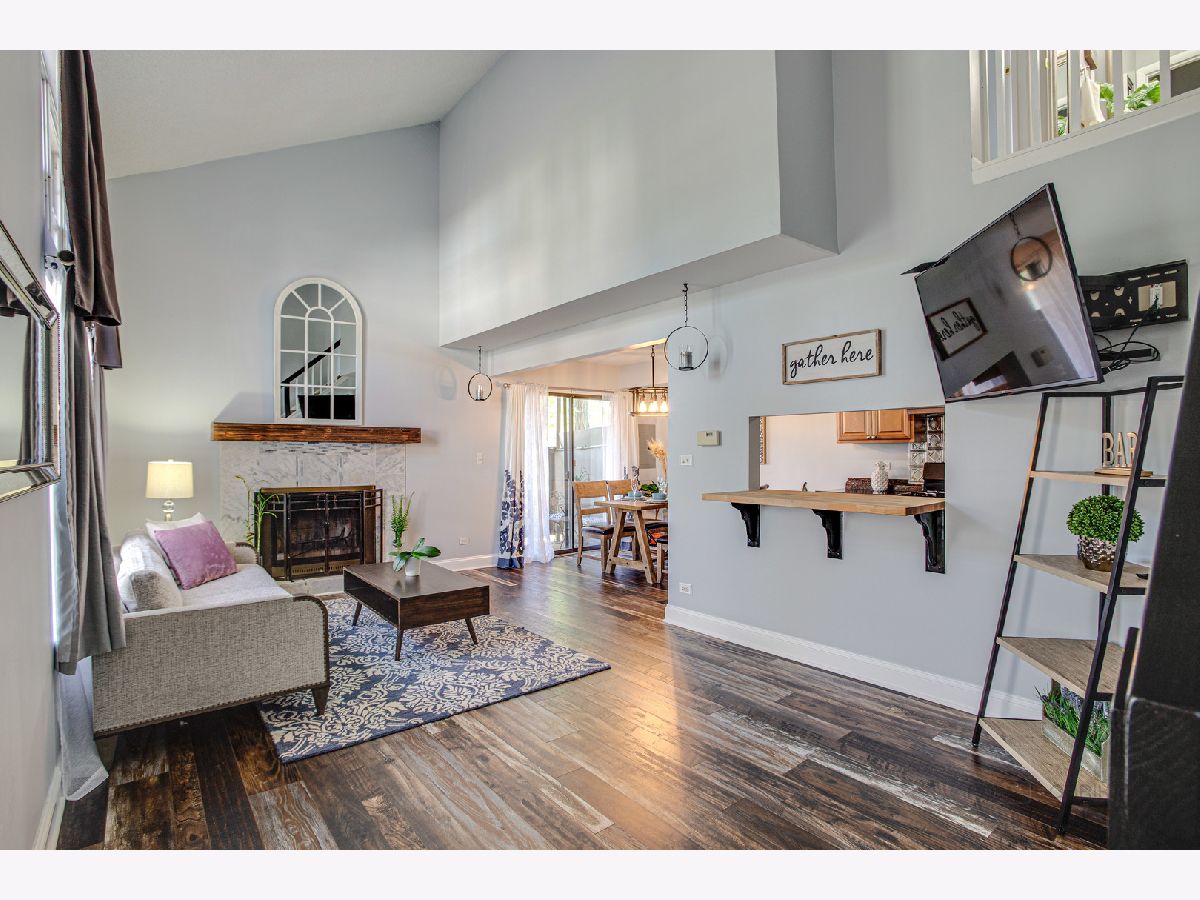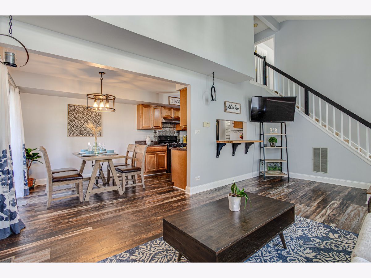 Welcome to this meticulously maintain end unit townhome with private entrance. Enter thru to open floorplan with 2-story living room, gleaming new hardwood floor and wood burning fireplace. Dining room area has sliding door to your own private fenced patio area for summer barbeque. Kitchen is open to living room with pass thru window, has been remodeled with newer cabinets, new backsplash & flooring, newer refrigerator, stove & dishwasher. Second floor has two large bedrooms with Jack-n-Jill bath. One bedroom has sliders to private balcony and master bedroom has lots of space plus large walk-in closet. New paint,new ligt fixtures & neutral decor throughout. Newer hot water heater, newer roof and new hardwood floor. Very close to Poplar Creek Forest Preserve with 10 miles of trails great for walking, running, biking or just enjoying nature. Very easy access to I90, Metra station & abundance of local shopping makes this location very desirable. This home very affordable with LOW monthly assessments. This home won't last long!