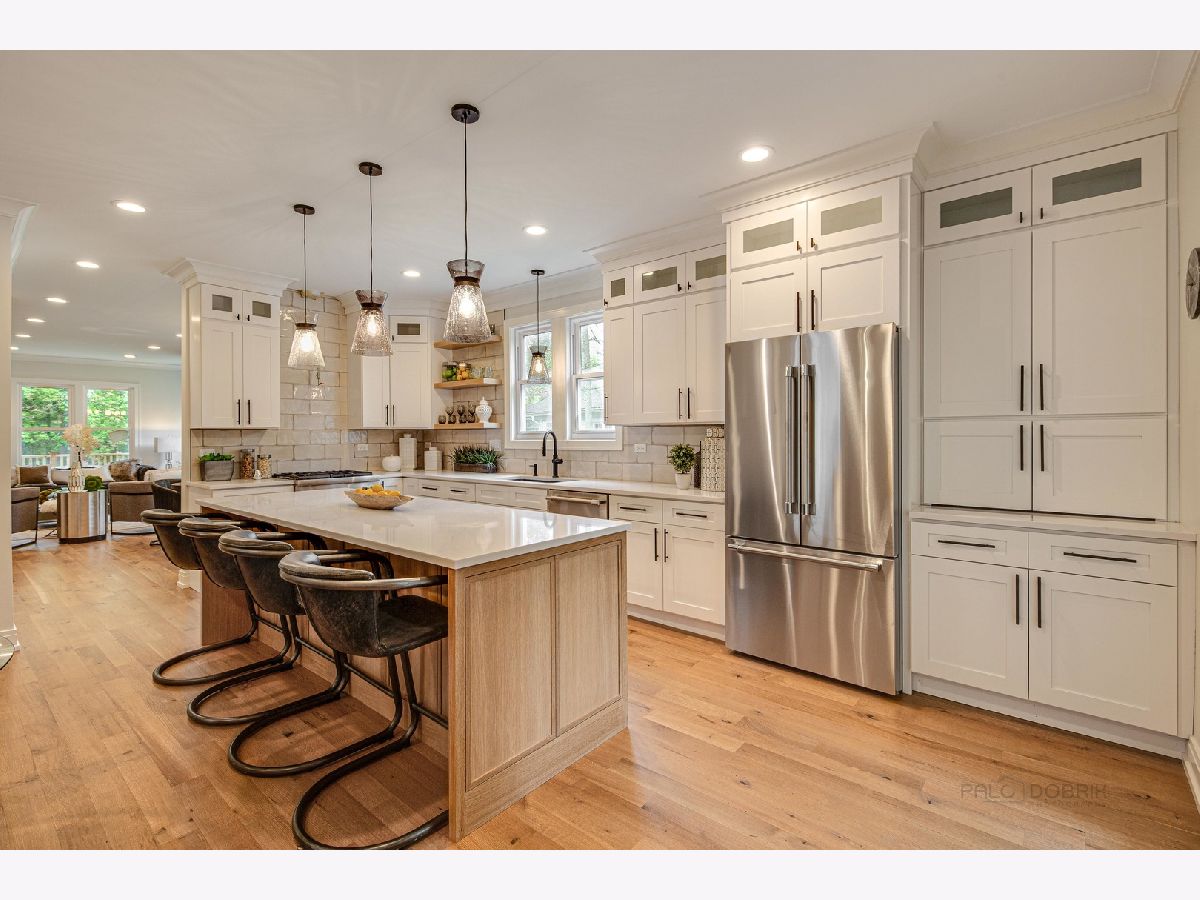 FULLY REMODELED THROUGHOUT! OVER $500K IN UPDATES! Brand new from top to bottom including roof and siding. Gorgeous 5 bedroom, 3.1 bathroom 3-story home with finished basement nestled on one of the most beautiful tree-lined streets in Lake Forest. Relax on your oversized front porch that leads to your voluminious layout. Foyer welcomes you into your combined living and dining room with cozy fireplace. Brand new kitchen boasts stainless steel appliances, massive island with breakfast bar, abundance of cabinet space, stunning tile backsplash and over looks your family room - open layout is ideal for entertaining. Half bathroom, large walk-in pantry and mud room complete the main level. Escape to your master bedroom with walk-in closet, fireplace and luxurious ensuite with heated floors, two sink vanity, soaking tub and separate shower. Three additional bedrooms, one full bathroom and laundry room with brand new washer and dryer adorn the second level. Third level is perfect for a play room, home office, workout room and so much more - the possibilites are endless. Entertain in style in your finished basment presenting 5th bedroom, full bathroom, recreationr room with dry-bar and plenty of storage space. This home is truly one-of-a-kind and no detail was overlooked. **Landscaping will be completed by owner** Furnace and AC are a couple of years old, but unused until now, and all ductwork is brand new.
