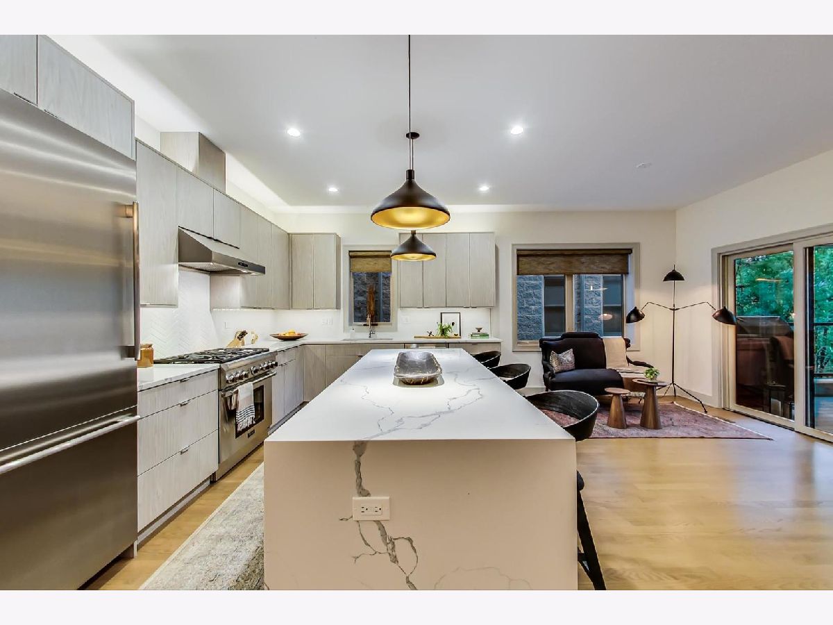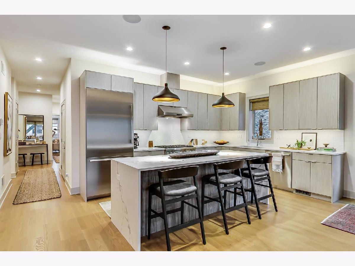Stunning Andersonville 3 bedroom/2 bathroom 2050 sq ft simplex on a EXTRA WIDE LOT. The building is approximately 2 years old. This highly upgraded and interior designed home will impress you like no other home. At 30' wide this home is wider than most city lots. Creating a spacious open floor plan where every detail has been thought of and white oak flooring throughout. The oversized kitchen features Thermador appliances, including a 6 burner range, wine fridge, custom cabinetry with above and below cabinet lighting, quartz countertops and an island that is over 8' long with waterfall edge counters that seats 4 people. The open living room and dining room are warm and spacious with great natural light from all directions and feature custom built in cabinetry, vented gas fireplace with marble surround, ceiling speakers, upgraded lighting with dimmers throughout. A large private deck with gas and electric compliment this unbelievable space. The Primary suite is an inviting sanctuary with a gorgeous custom outfitted walk-in closet, ceiling speakers and a en-suite bathroom with heated flooring, large custom built steam shower and double vanity. The other bedrooms are also large with incredible custom outfitted closets. The separate laundry room has full size GE side by side washer and dryer and oversized cabinetry, WiFi enabled thermostat and security system. A 680 sq ft shared garage roof deck, garage parking, beautifully landscaped exterior and low assessments round out this incredible home. Walking distance to the L, Andersonville restaurants, shopping and Uptown's entertainment district. Make this your new home today.