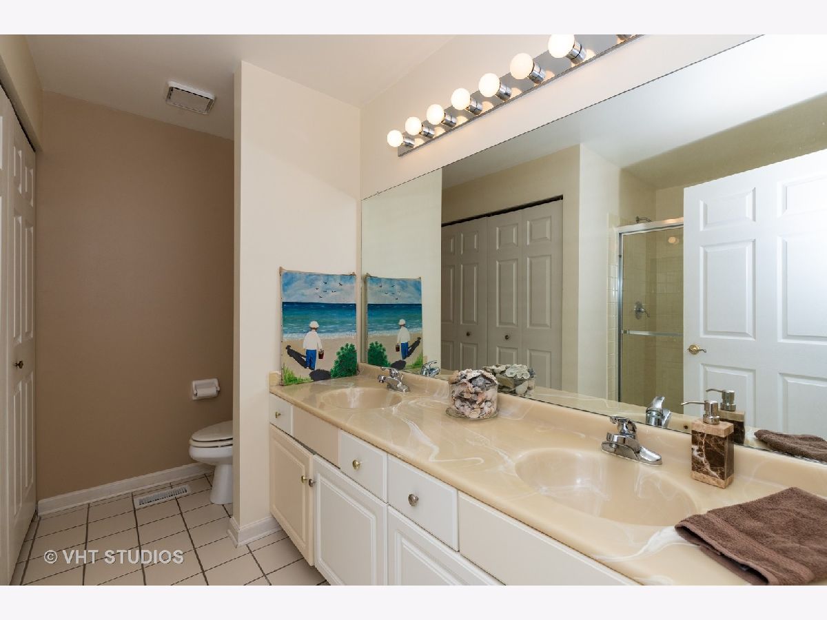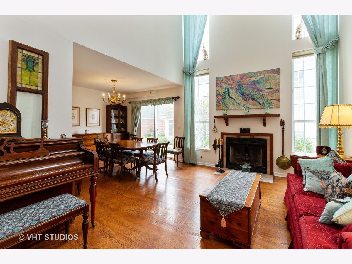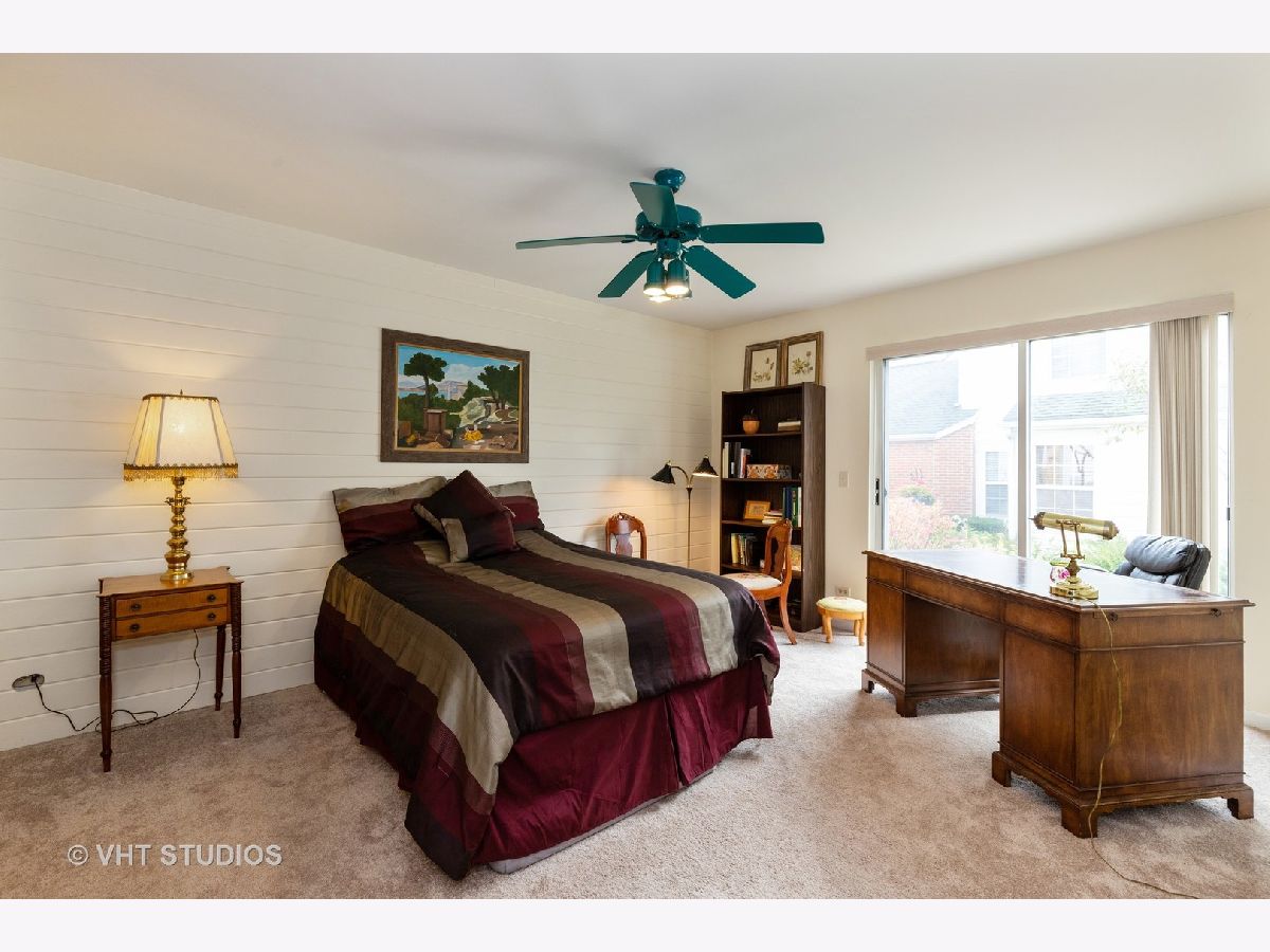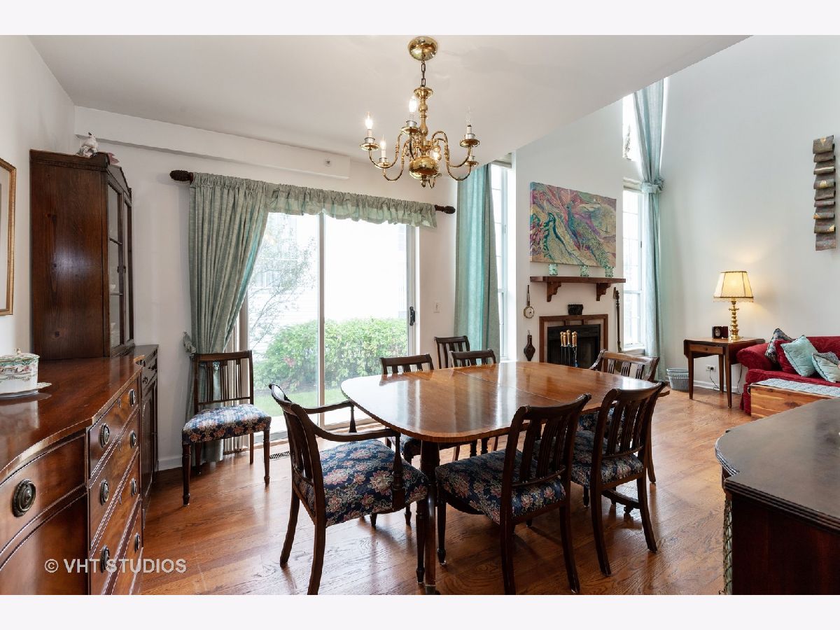 Rare find, Huntington, the largest model with a master suite on the first floor and a basement in the desirable Hamptons! Private entrance invites you to dramatic two-story living room featuring a gas fireplace and bursting with light from floor to ceiling windows and skylights. Formal dining room with sliding door gives you access to the oversized patio with a view of pond and fountain. White kitchen with plenty of cabinets entices you to cook tasty meals and serve them at the breakfast bar or at the nook by the bay window. Enjoy your retreat in your first-floor master suite offering a bath with a double vanity, shower, two closets and a private patio. Upper level features spacious bedroom, full bath and partially closed loft currently used as an office, but easily convertible into a third bedroom. You will also find a powder room and laundry on the first floor. Hardwood floor in the kitchen and living area; newer carpeting in the bedrooms; partially finished basement with huge rec room, ample storage in unfinished part, and 2 car garage complete this offering. Enjoy mature trees, professional landscaping and excellent community. Libertyville schools! Convenient location close to Abbott/AbbVie Park, shopping, parks and transportation. Maintenance free living at its best! Buyers pays $5 per $1000 North Chicago transfer tax.