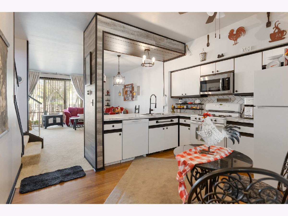 Move in ready! Nicely painted and new carpet on first floor and stairway! 9ft ceilings in living room with sliding glass doors to the patio! Bright kitchen with tiled backsplash, new dishwasher and look thru to the dining area! New light fixtures throughout. Spacious primary bedroom with vaulted ceiling, plant shelf, double closets and direct access to bathroom with oversized vanity and tile flooring! Good size 2nd floor laundry room! Finished basement with rec room and hobby room! Roughed in plumbing downstairs for bathroom. Close to the Randall Rd corridor and shopping!