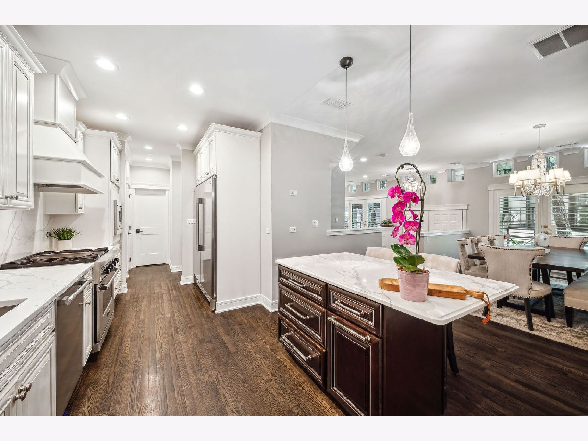 Welcome to the Oak Club, an exclusive gated enclave nestled in the prestigious Gold Coast. Completely gutted and reimagined with premium finishes, this extra wide town-home exudes luxury and lives like a single family home. Step into the thoughtfully designed open kitchen, a culinary haven adorned with high-end custom cabinetry, gleaming quartz countertops, stunning Carrera white quartz backsplash and top-of-the-line Viking appliances, including a gas cooktop, hood, oven, dishwasher, microwave, and a double size Frigidaire refrigerator. The spacious living room, perfect for entertaining, features a new stone ventless fireplace, formal sitting area, and adjoins a dining area highlighted by a dramatic Corbett ten-light chandelier. The expansive primary suite is a private retreat, offering a serene bedroom with a custom-built walk-in closet. The en-suite bathroom is a masterpiece of design, boasting a steam shower, marble tile, a soaking tub, and a generous dual vanity. An additional stone fireplace enhances the suite's cozy atmosphere. The second floor also provides a versatile space perfect for a family room or play area, while the third floor is flooded with sunlight from a skylight, housing two additional bedrooms, a full bath, and access to a generous 31x20 south-facing rooftop terrace equipped with a built-in gas line. The home's flexible floor plan includes two indoor attached parking spots and a 7x7 storage room for your convenience. High-end Corbett crystal lighting fixtures are featured throughout, and every closet is outfitted with custom storage solutions. Beautifully refinished hardwood floors add a touch of timeless elegance to this remarkable home. Discover the epitome of luxury living at Oak Club, where every detail has been meticulously crafted to offer unparalleled comfort and convenience.Walk straight out to Washington Park (Dog friendly), steps to the heart of shopping (Michigan Ave, Oak St.), endless restaurants, Oak Street beach & the Magnificent Mile! Easy access to CTA, El train, just a few blocks to 90/94 & 290 expressways. Just steps to highly rated OGDEN School! Walk to the new Whole Foods & LifeTime Fitness!