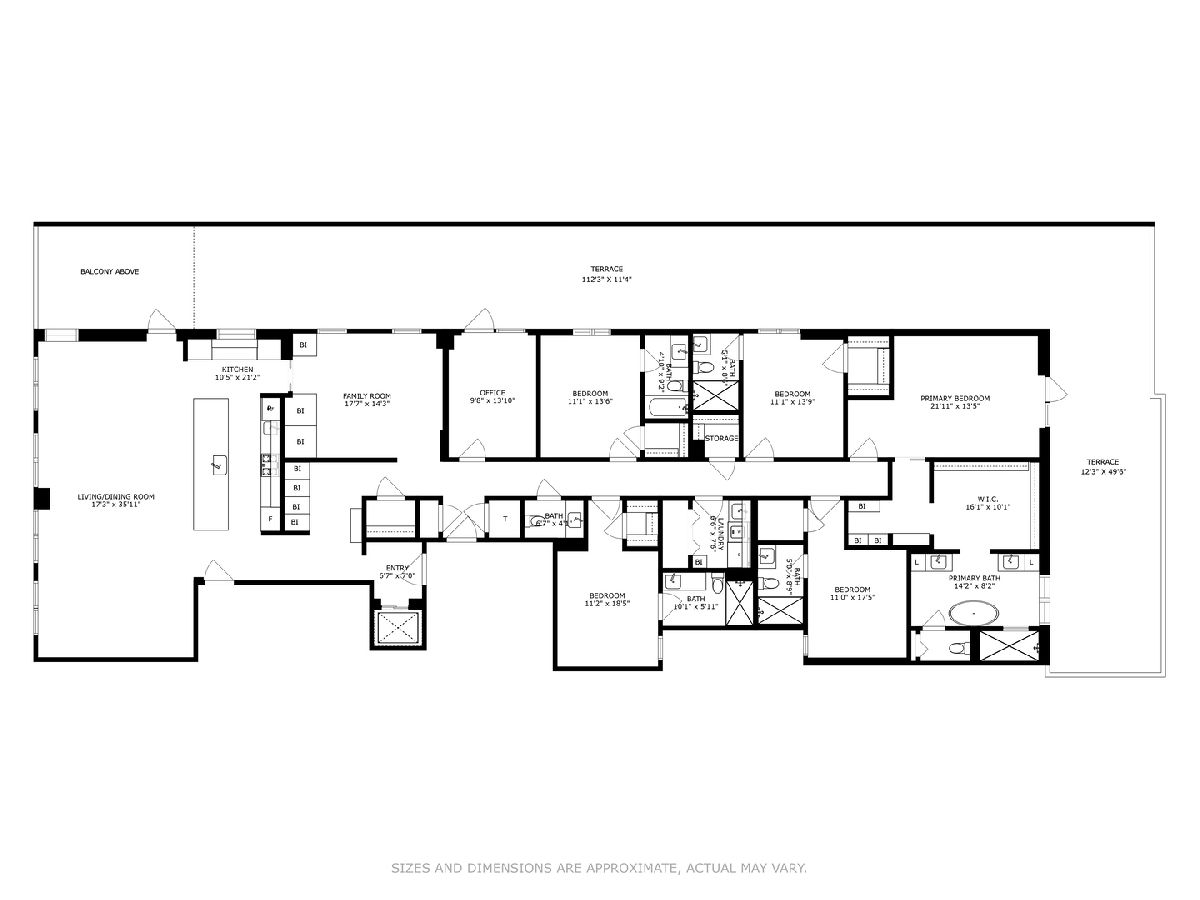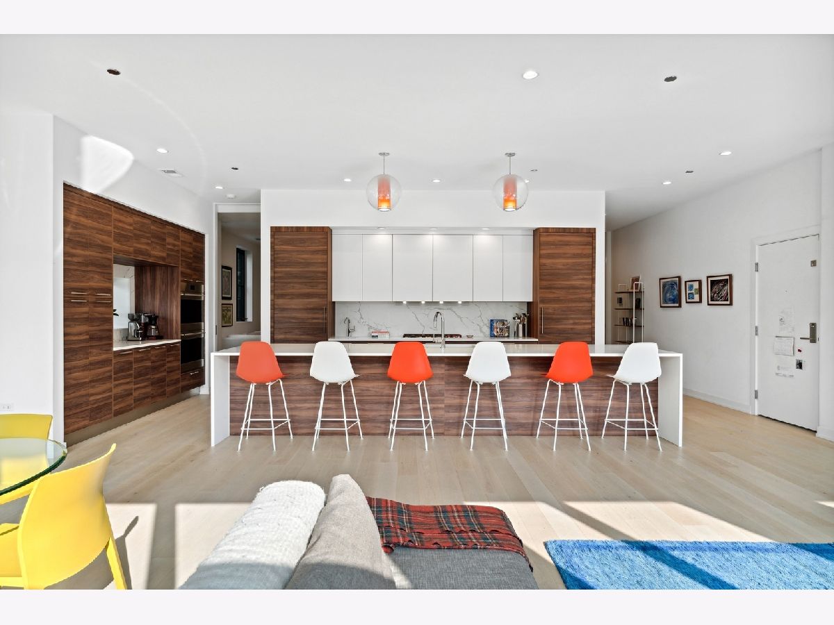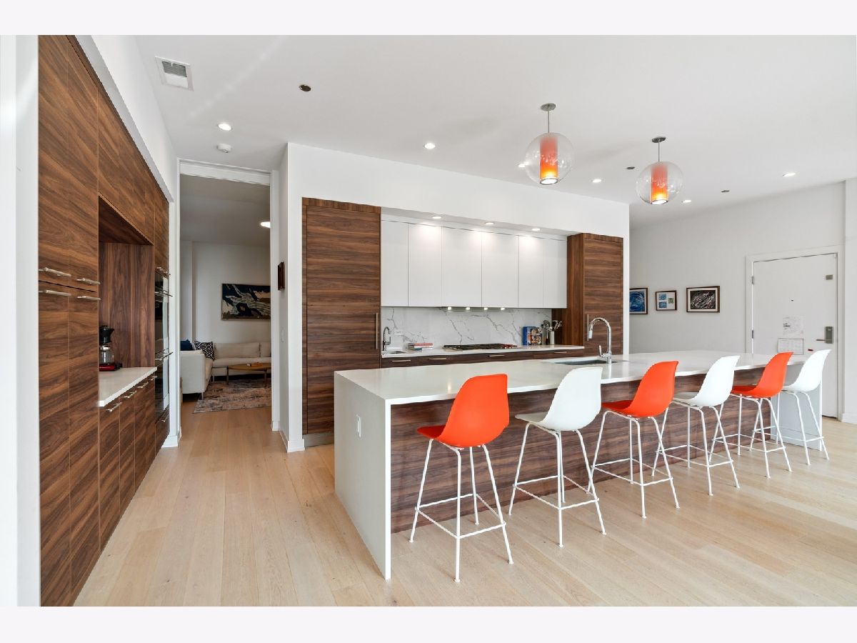 Park Home 2 is a one-of-a-kind home with 5700 sqft of indoor/outdoor living all on one level (3859 Interior & 1842 Exterior)! With 5 Suites, 5.1 Baths, separate Office, Family Room, and an incredible Living/Dining/Kitchen, the home has the room count of a 4-story, double-lot, single-family home, but the openness, gracious room scale and efficiency that only a single-floor residence can provide. The home is surrounded by the LARGEST private outdoor space in the WEST LOOP on 2 sides-giving overflow space to almost every room. The walkout terrace and private outdoor living room is fully-hardscaped with concrete pavers throughout, finished brick parapet walls, and electrical, gas, and water hookups for outdoor cooking, entertaining and landscaping. This scale of an outdoor space at the main living level leads to fundamentally more every-day enjoyment than climbing to a rooftop or garage deck. Sophisticated custom built-ins past the Private Elevator Entry give a great sense of arrival, complemented by the wall of glass overlooking the park beyond. The kitchen features Italian Cabinetry from Archisesto, Wolf/Sub-Zero column appliances, a huge waterfall island, and side pantry/prep wall. The enormous Living/Dining Room overlooking the park has space for a 10-12 person table set daily, a comfortable Living Room grouping, and prime location for a piano, plus a doorway to the covered portion of the Outdoor Terrace. The private Owner Suite has a fully-built out 9'x16' Dressing Room with makeup table, large double vanity bath with freestanding tub and separate shower and water closet-plus a door to an open-air section of the Outdoor Terrace for quiet morning coffee, private evening fires or outdoor movies. The large Family Room has fantastic built-ins with beverage refrigerator and tons of storage. The "office" is currently being used as a wellness/workout room featuring a recovery sauna and direct access to the open-air terrace for outdoor wellness. All of the secondary bedrooms fit queen-sized and feature walk-in closets with custom organizers/storage. The home also features a custom-built Laundry Room, in-unit waste chute, storage closet, and two secured, heated garage parking spaces. Located across the street from the Farmer's Market, tot lot, dog park, and walking distance to the award-winning Skinner West Elementary School-this home is exactly where EVERYONE in the home wants to be. You have to see this space to believe it exists in the West Loop.