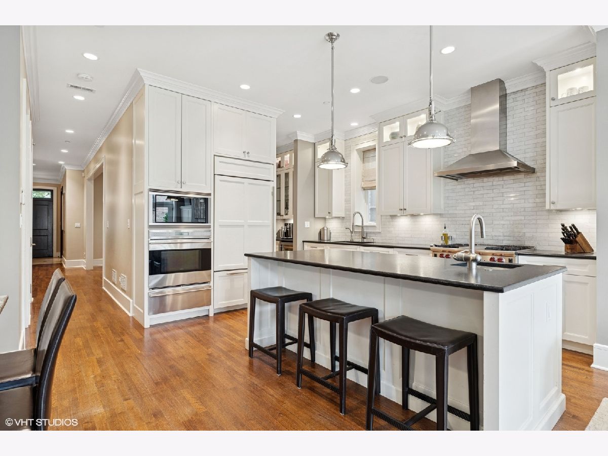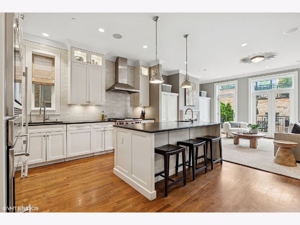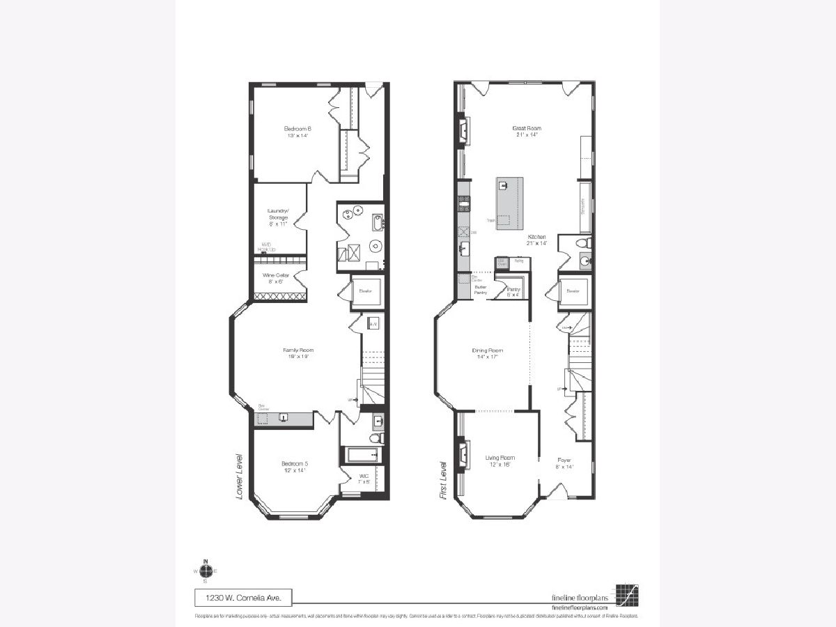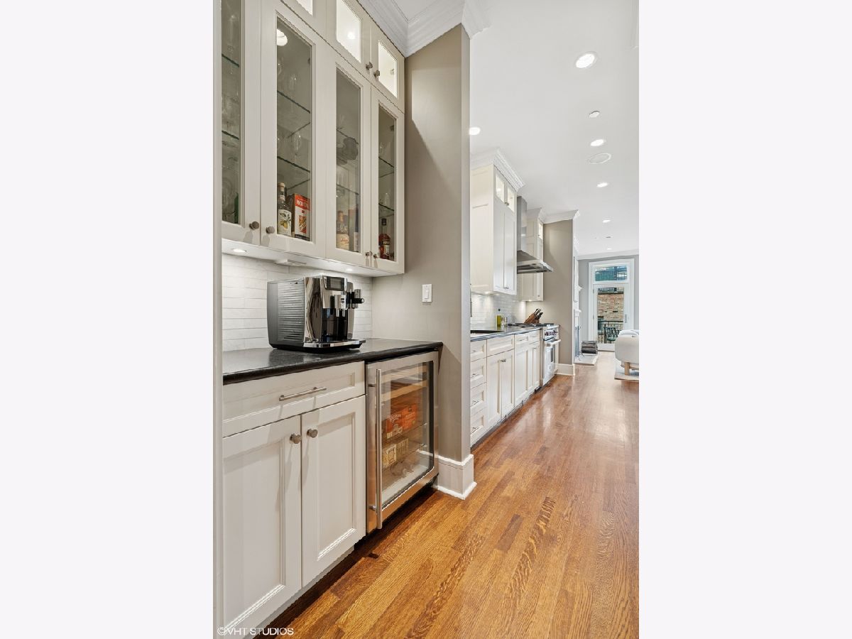 Architecturally handsome, and completely custom six bedroom, five-and-a-half bath greystone on an extra-wide thirty foot lot, with a paneled elevator opening onto each level, located on picturesque Cornelia Street in coveted Blaine School District. Attention to every detail has been given to this extraordinary home spanning 5600 square feet featuring quarter sawn oak flooring, detailed millwork and built-ins throughout, soaring ceilings, five private outdoor areas and geothermal heating and cooling system. The welcoming entrance leads to an open floor plan with gorgeous paneled living room offering a beautiful fireplace, stunning windows and opening to the separate dining area located just steps from the well designed kitchen; with high quality appliances including Wolf and Subzero, stone countertops, oversized island, two sinks, an abundance of storage, butler's pantry and built-in breakfast nook. The kitchen flows into a natural light filled family room with floor-to-ceiling windows and doors, fireplace, built-in desk area and access to the beautiful back outdoor areas. Located on the second level are three spacious en-suite bedrooms, including the tranquil primarily suite with fireplace, walk-in closet, custom built-ins, lovely terrace and spa-like stone bath; with double sinks, soaking tub and large walk-in shower. Rounding out this high quality home on the top-floor is an en-suite bedroom, two beautiful outdoor terraces offering a fireplace and hot tub, and well designed home office. Other home features include a lower level with high ceilings, en-suite bedroom, large family room with bar, spacious temperature controlled wine cellar, an additional bedroom currently used as a gym and mudroom area. Located over the three car garage is an ideal roof top deck with pergola, landscaping and access to additional outdoor areas. High quality masonry home, with attention given to every detail. Located close to public and private schools, and just steps from Wrigley Field, numerous parks, shopping and restaurants on Southport and public transportation.
