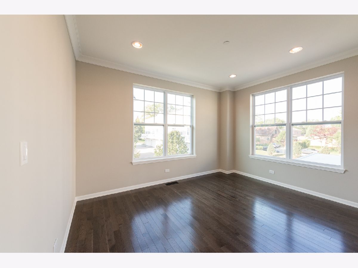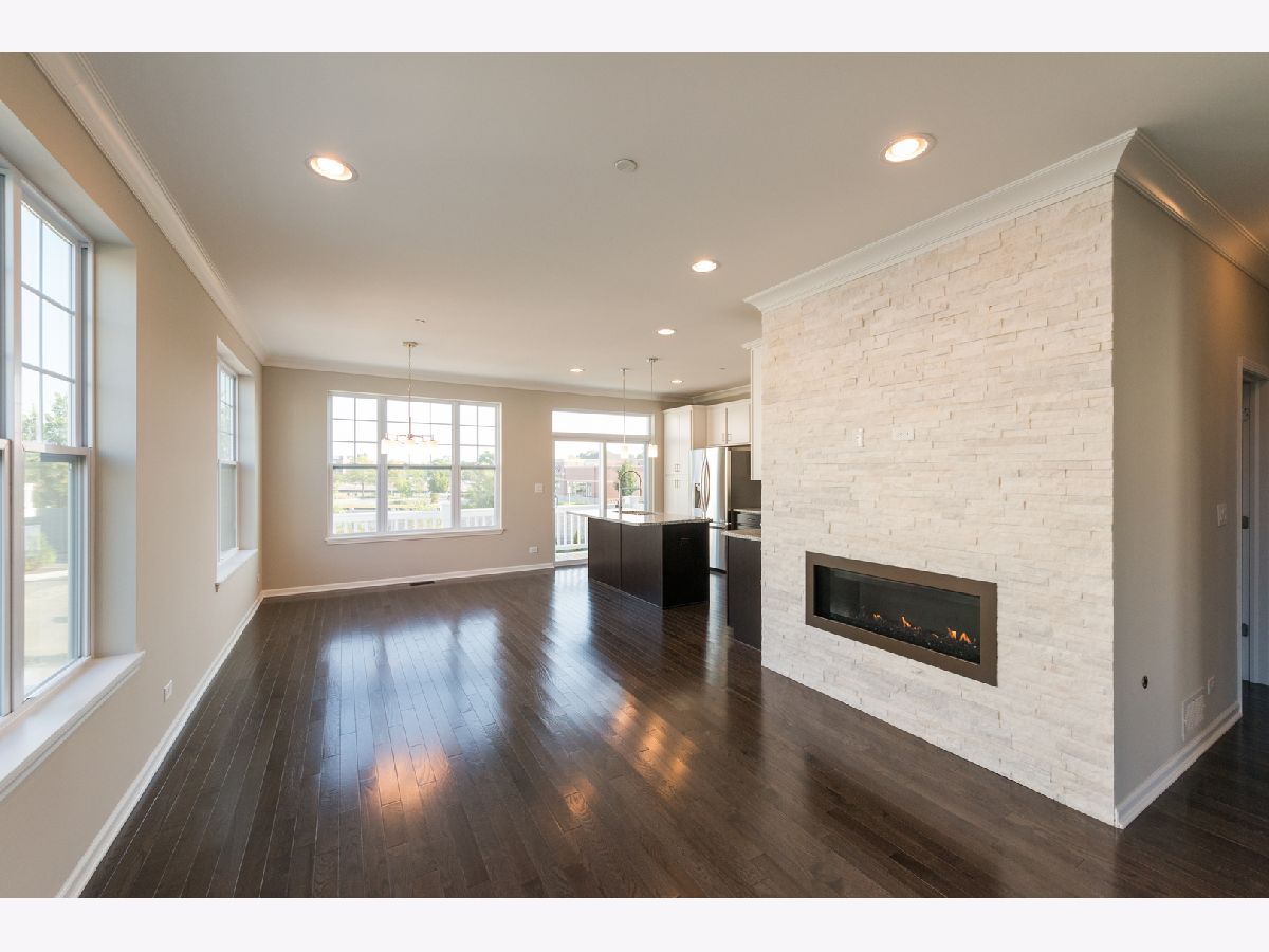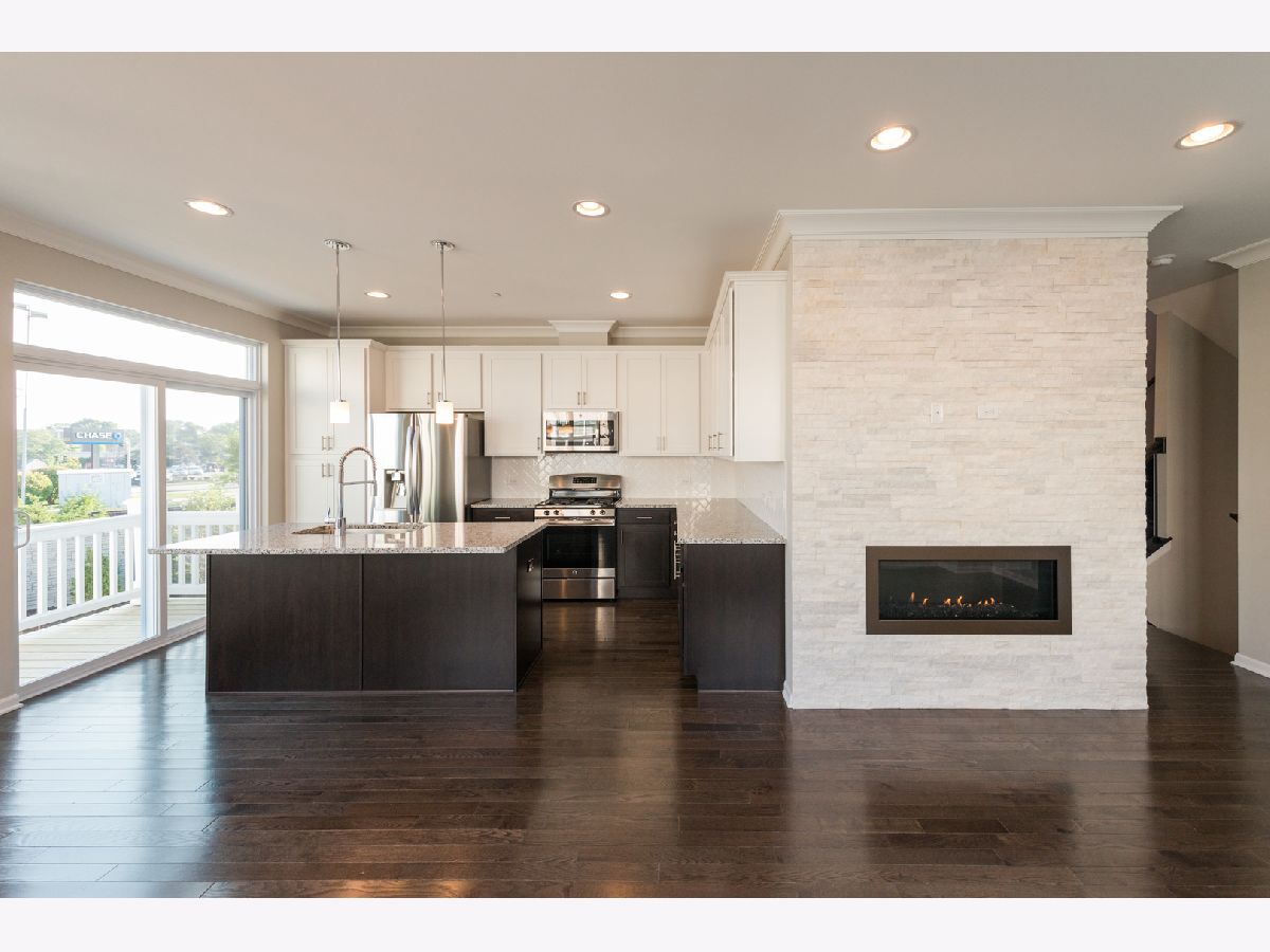 Within this private gated community, welcome to the only end-unit townhome that is interior of the community without a backyard neighbor. Located walking distance from all that Uptown Park Ridge has to offer, this 2017 new construction townhome has it all! Main floor with 9' ceilings features a stunning kitchen with herringbone backsplash, shaker cabinets with crown molding, granite countertops, and huge breakfast island. Light filled living room showcases a gorgeous gas fireplace! Den off the family room can be a great main floor office, kid's play room or extended dining area. Walk out to your own private balcony, perfect for grilling and entertaining. Upper level with hardwood floors in all bedrooms offers a king-size suite with custom designed walk-in closet, vaulted ceiling and ensuite bathroom with double sinks, marble counters and extra deep soaking tub. Two additional bedrooms, another full bath, laundry and two linen closets round out the second floor. The lower level is a versatile space-perfect for a home theater, play area, or a home gym! Two-car attached garage with additional custom storage is super convenient. Other highlights include custom top down bottom up shades on the main and upper levels, crown molding throughout first floor and upgraded handrails. Impeccably maintained landscaping throughout and just steps from schools, parks, Uptown shops and restaurants, the Metra, highways and so much more. This 3-story open concept townhouse with three exposures is a must see!